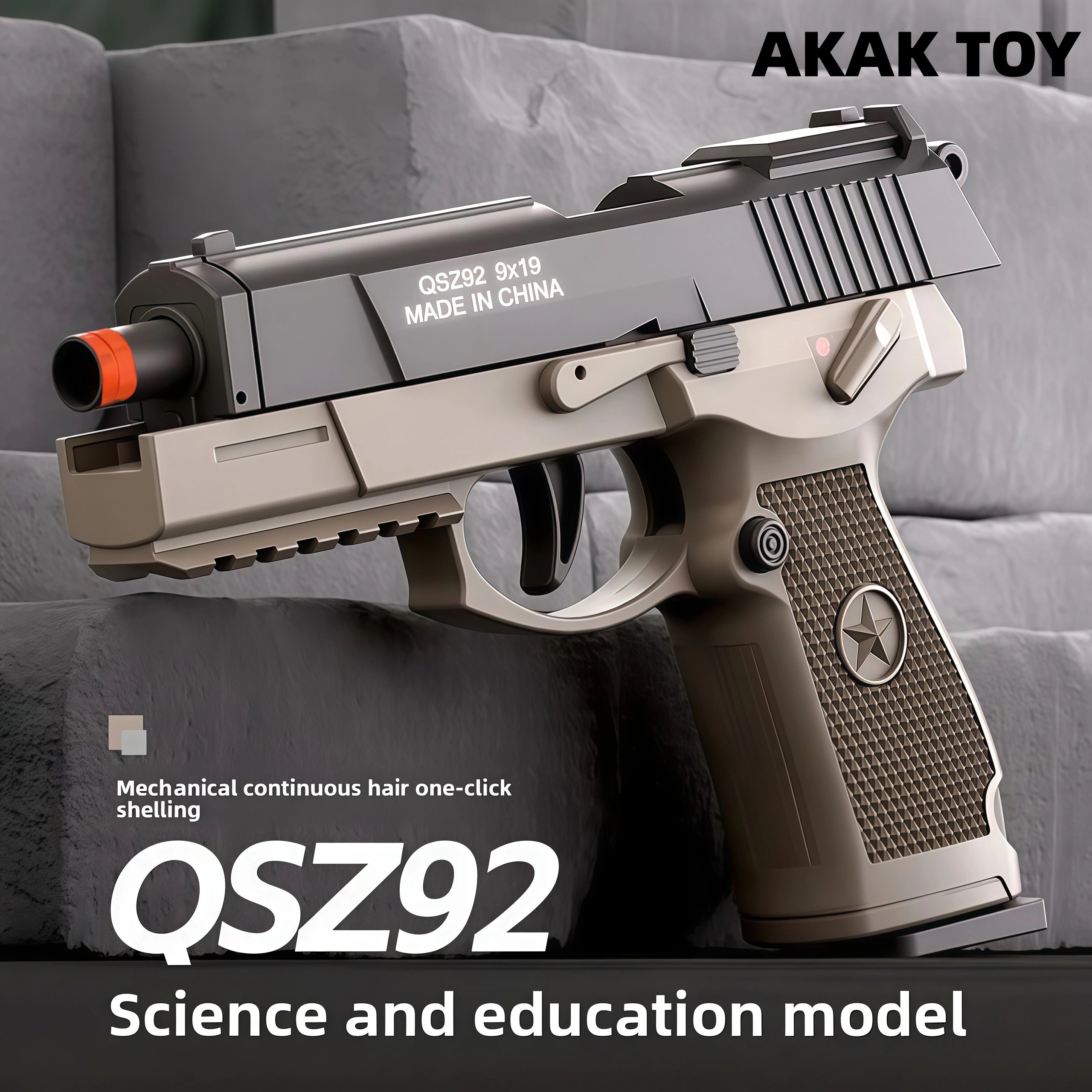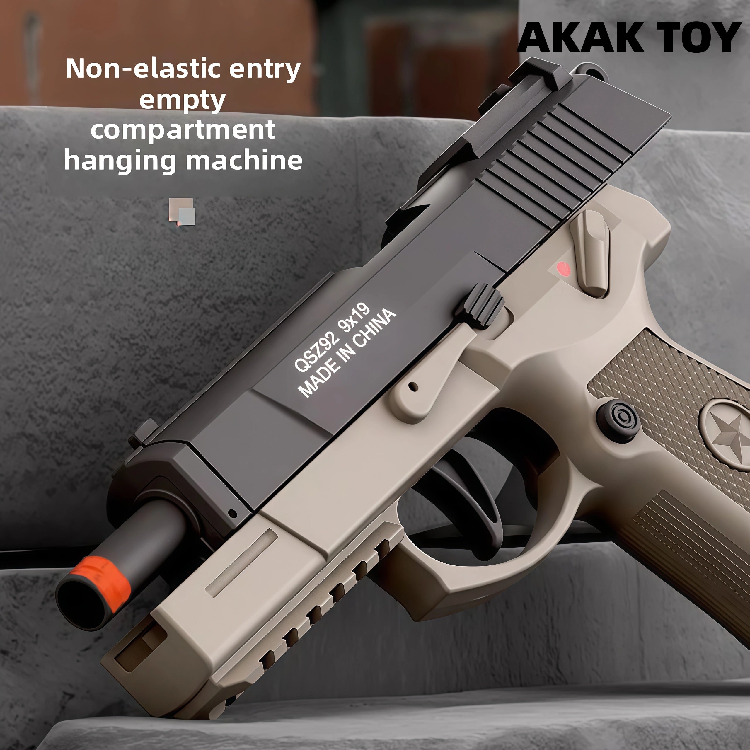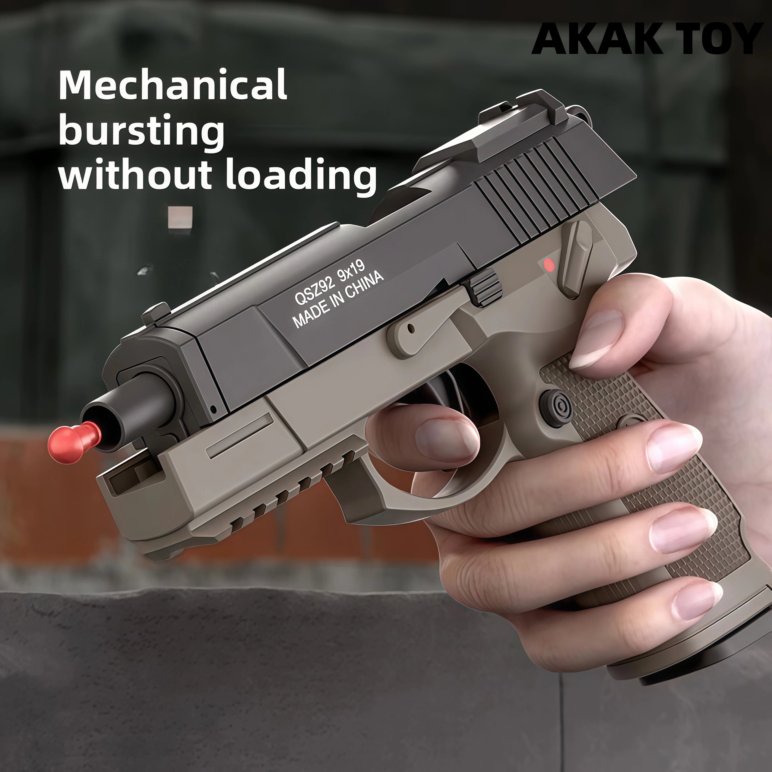 Mechanical burst fire: No need to reload the chamber, just pull the trigger to fire. One-touch ejection: Just pull the trigger to eject. Empty chamber lock: Enters empty chamber lock mode when the magazine is empty. Down-feed clip: Smooth feeding without jamming, holds 6 bullets. Long-range shooting: Up to 15 meters for precise targeting. Equipped with a tactical rail for easy assembly with various accessories. Features:1. Removable accessories, down-feed clip, empty chamber lock2. Shooting mode: Manual3. Range: 10-15 meters4. Dimensions: 19*4*14cm Packing List:1*QSZ92 Dart Gun1* Magazine1* Infrared Sight1* Red Dot Sight6* Shells20* Bullets