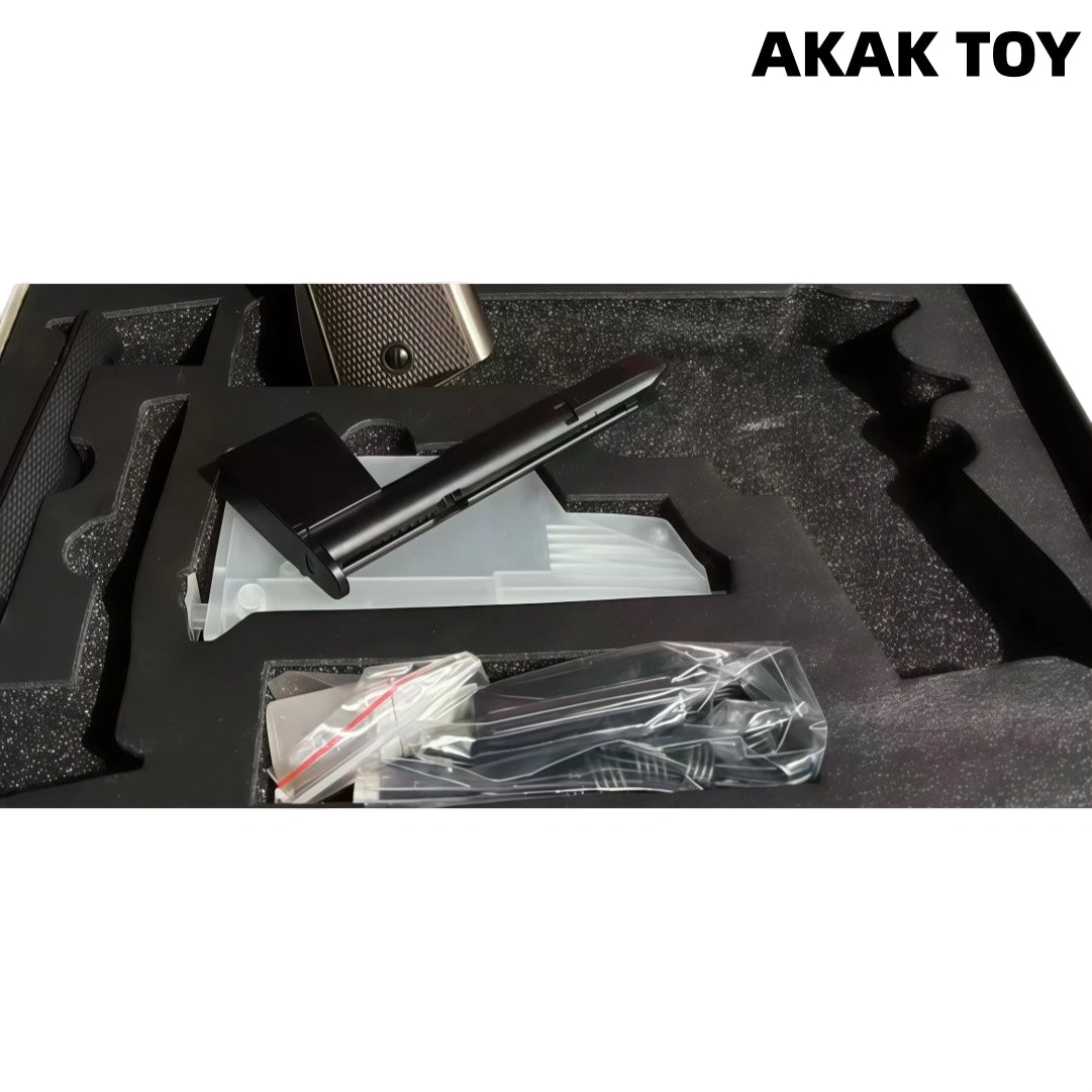This toy gun features a combination of metal and nylon for durability and a realistic feel. It supports electric continuous fire and features a one-touch quick-release mechanism for quick assembly and disassembly and maintenance. It features an empty chamber lock function, simulating a realistic operating experience, and a linked hammer design for high-resolution detail reproduction. Built-in 11.1V high-performance battery for long-lasting battery life and powerful power, delivering exhilarating shooting pleasure. Features:1. One-touch quick-release, empty chamber lock2. Ejectable3. Material: Metal+Nylon4.Firing Mode: Electric5.Range: 18-20 meters6.Fire Rate: 220 FPS7.Ammunition Type: 7mm Gel Balls8. Dimensions: 22 * 15 cm Packing List:1 * 1911 A1 Gel Gun1 * 11.1V Battery Magazine1 * Reload Device1 * USB Charging Cable1 * Gel Balls (10,000 pieces)