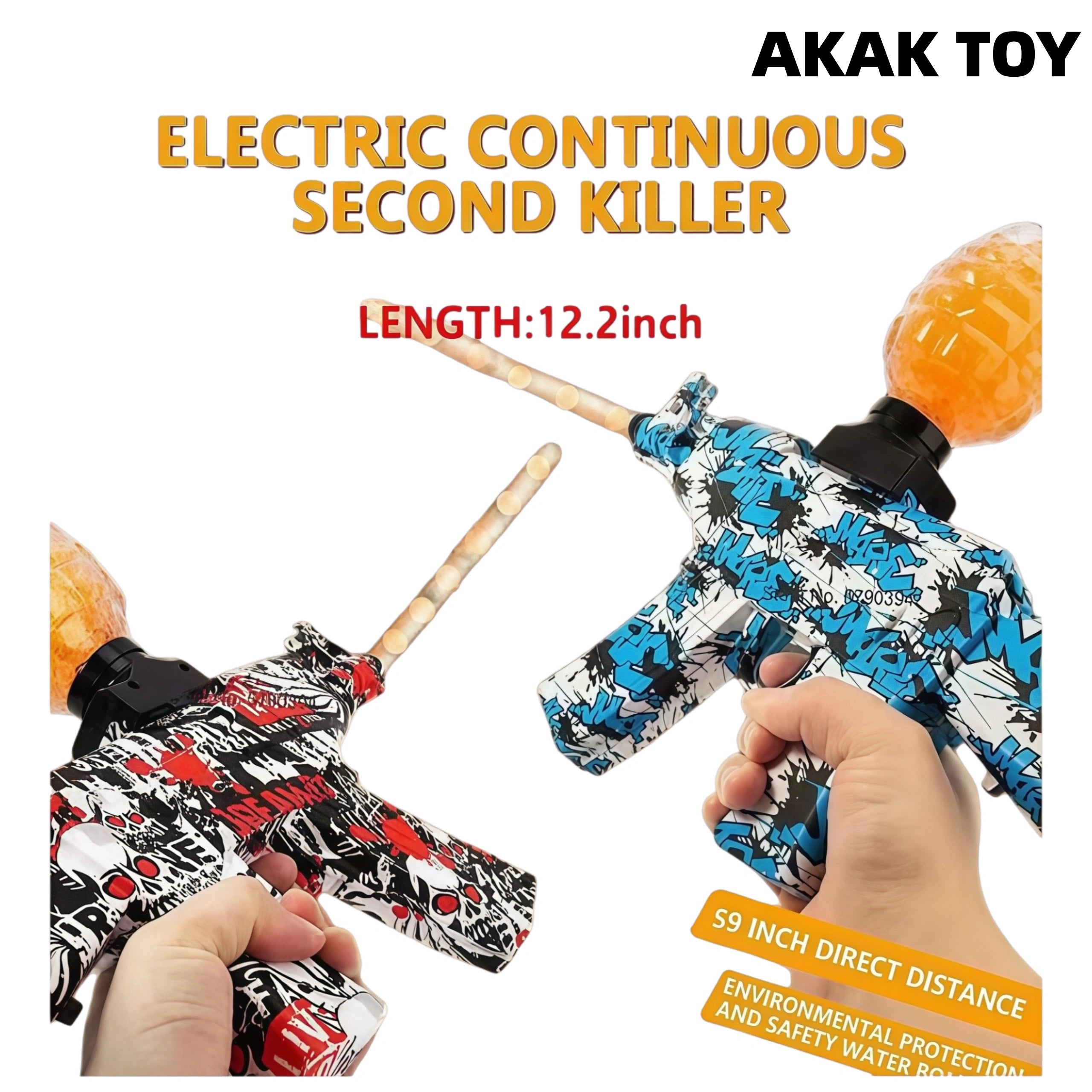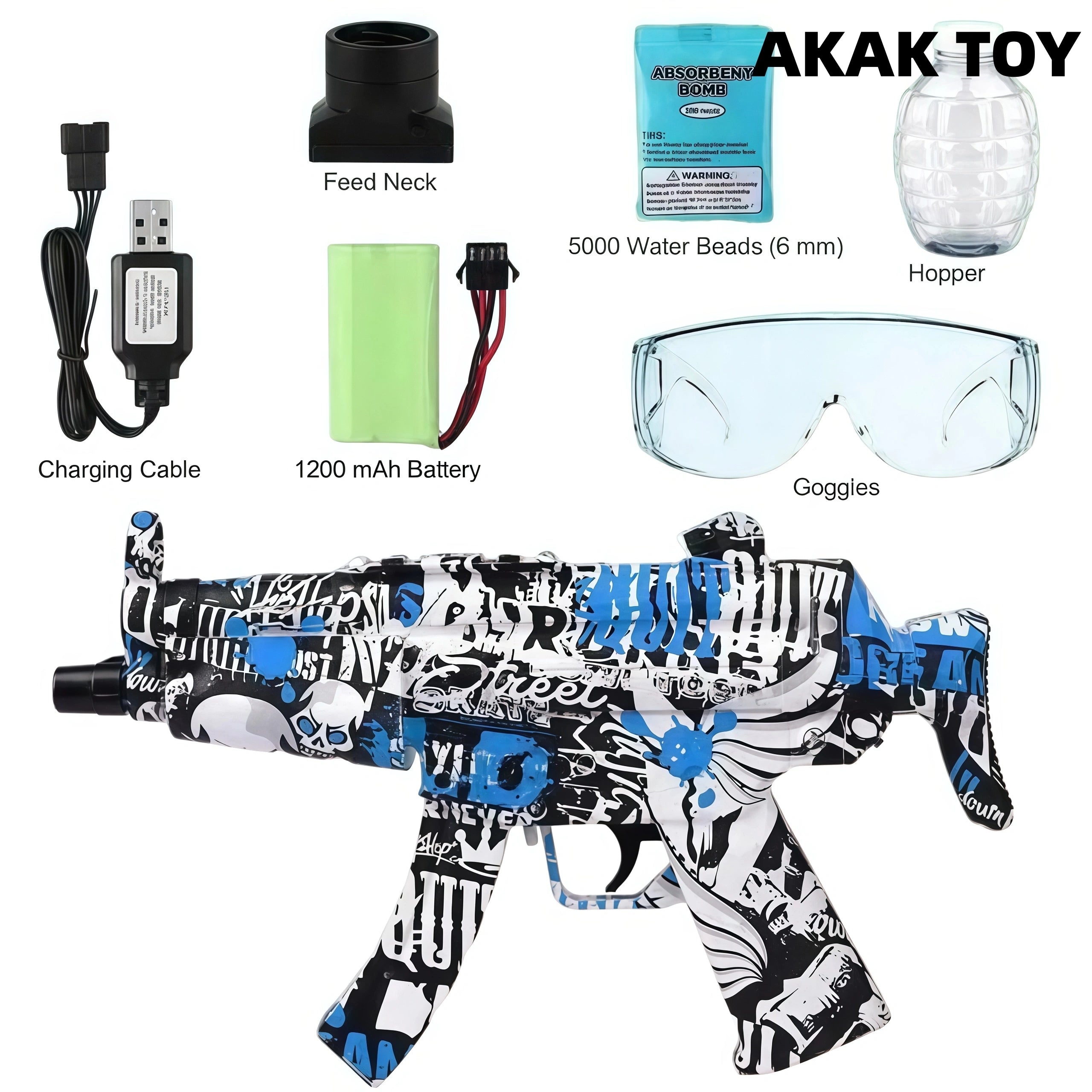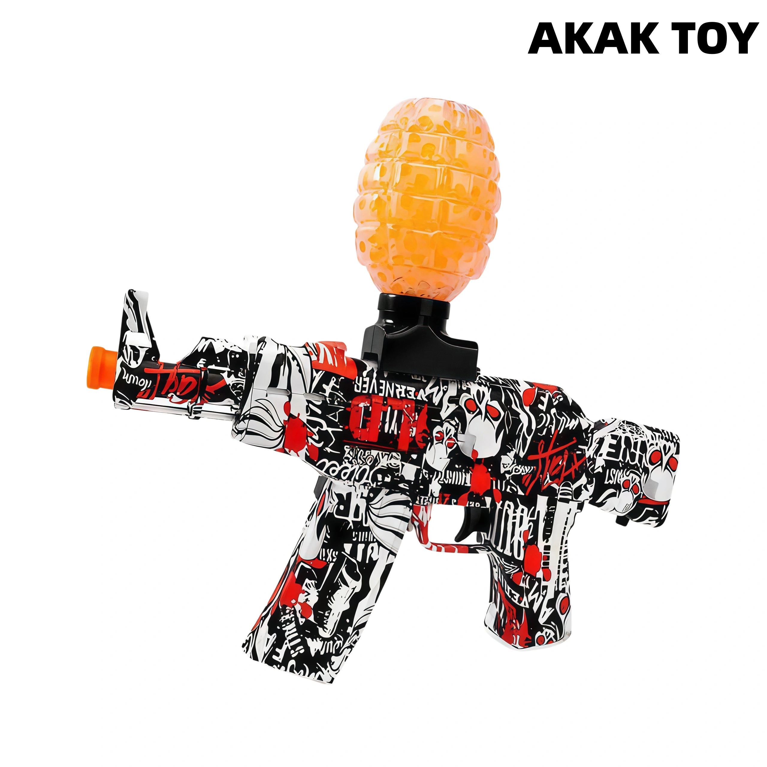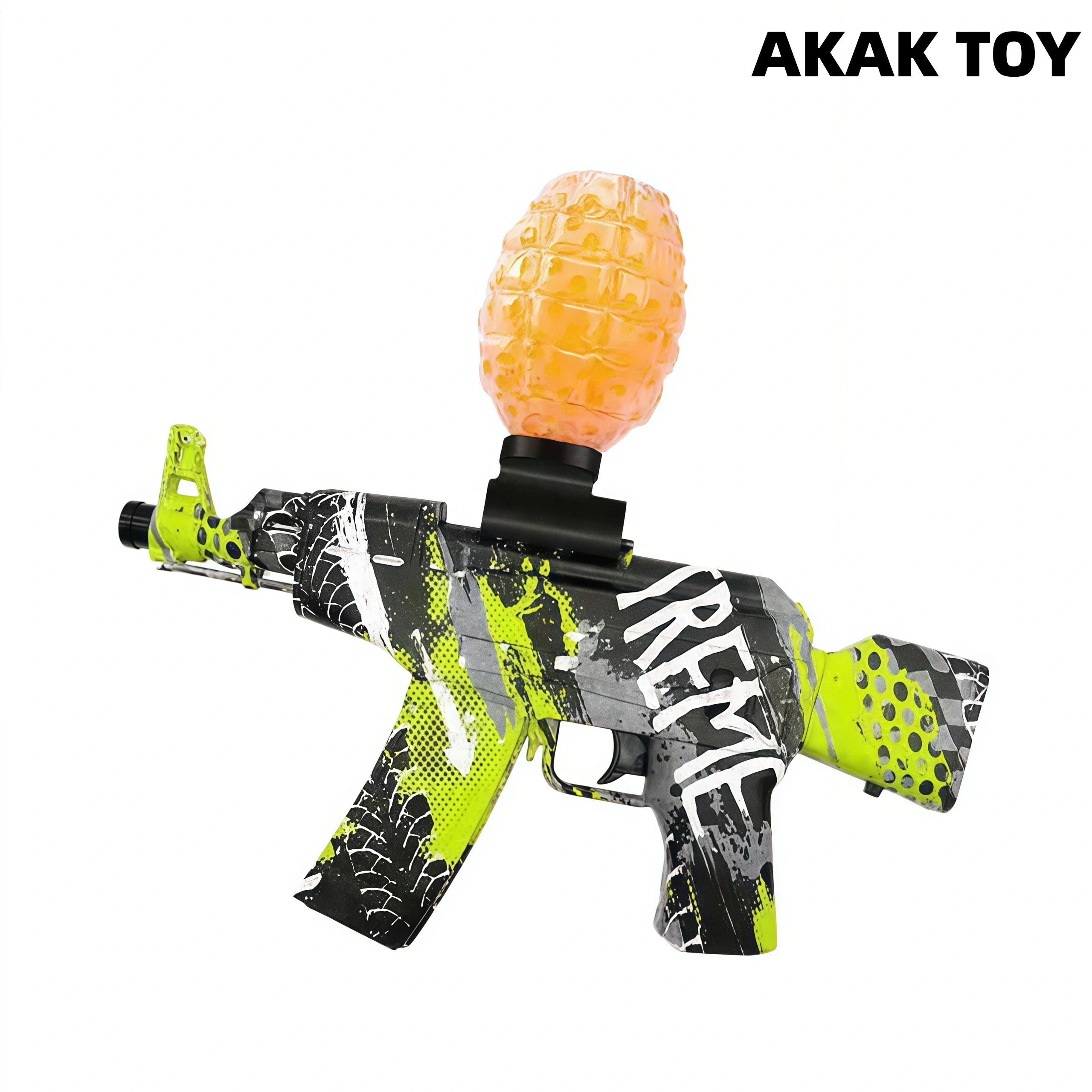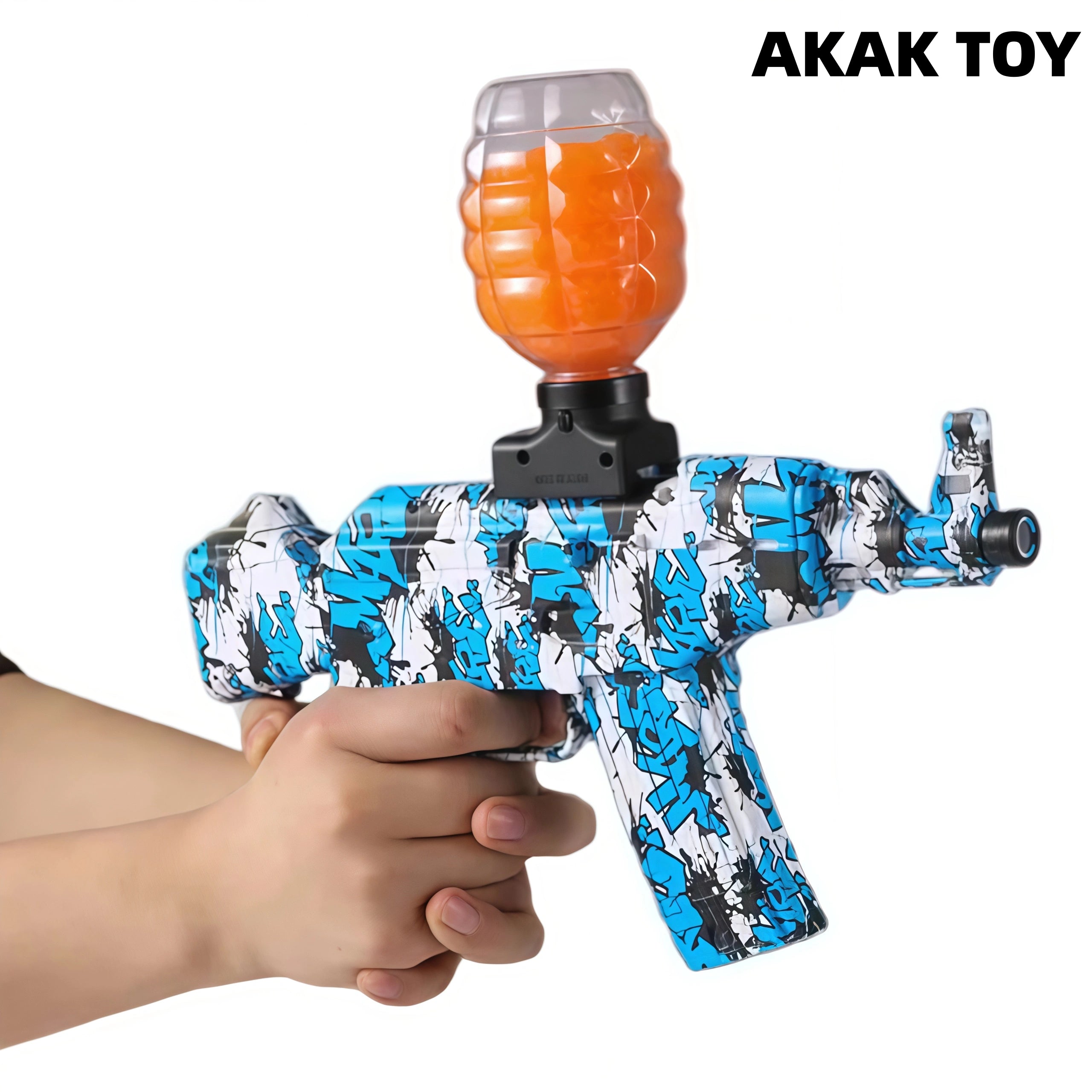 Features:1. Electric burst, high-energy continuous shooting2. Material: ABS3. Ammunition type: 7mm gel pellets4. Size: 30 cm5. Shooting range: 18 meters+ Packing list:1*AK47 gel blaster1*goggles1*bottle1*connector1*rechargeable battery1*USB charging cable1*gel balls (10,000 pcs)