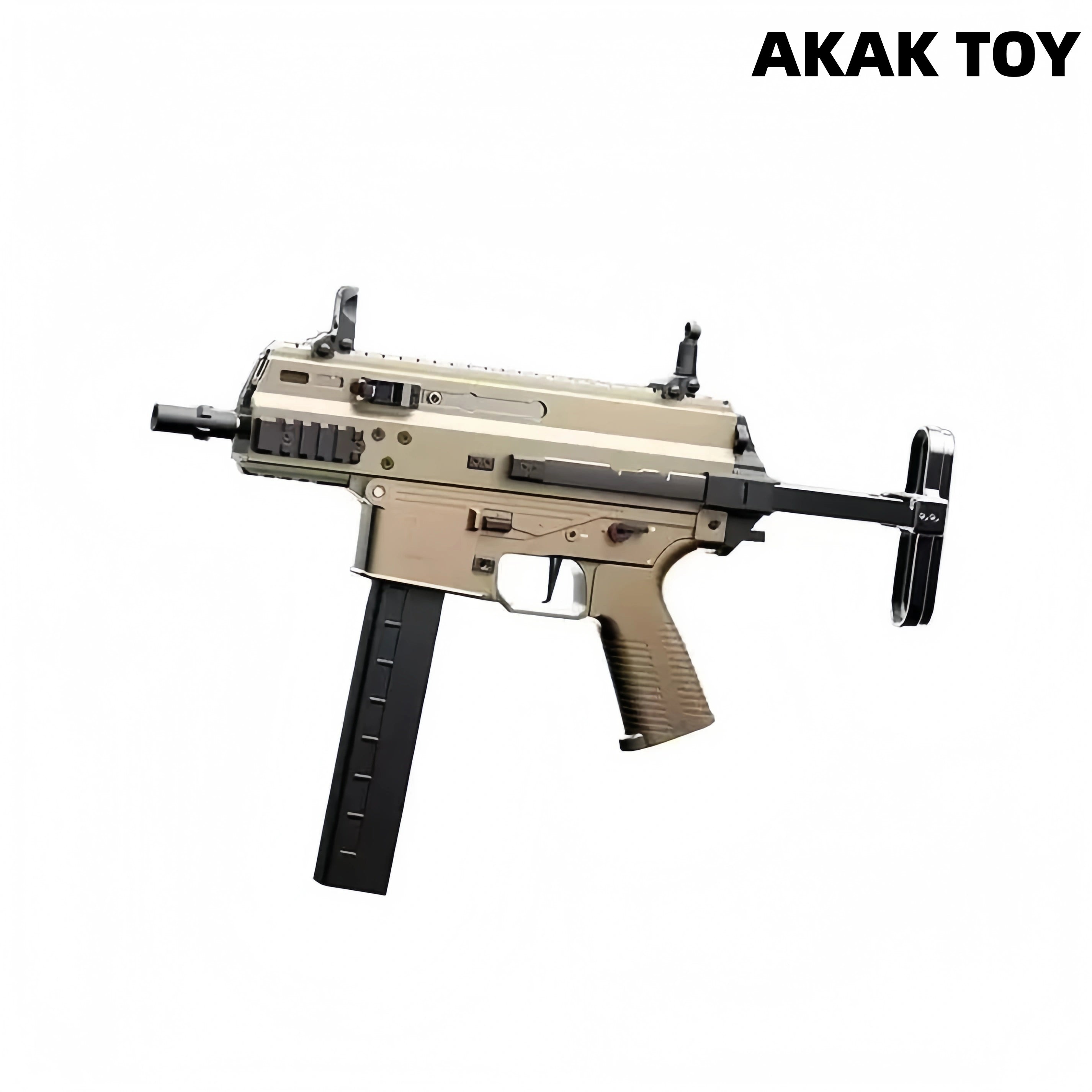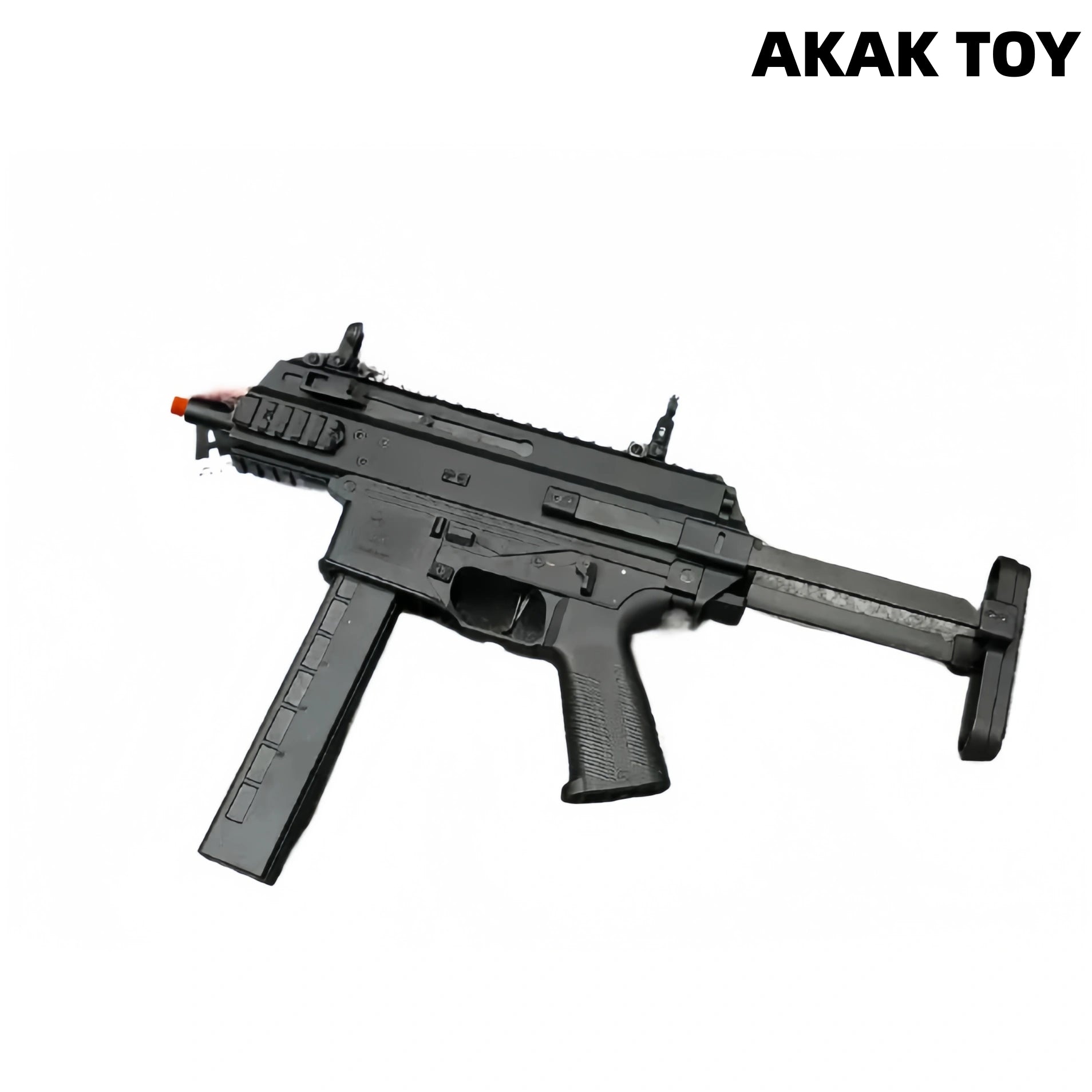 This short-barreled submachine gun features a brand-new electric system design, supporting single-shot and burst mode switching, and is equipped with a safety fuse for more realistic and reliable operation. The all-nylon frame is lightweight, durable, and comfortable to hold. It also features a telescopic stock, allowing for flexible adjustment to suit various usage scenarios. Extensive metal components are incorporated into the details: a metal magazine release, metal bolt, metal retaining plate, metal trigger, and metal mode switch, enhancing overall durability and quality. Equipped with a 480 high-speed motor, it delivers even more powerful firepower, enabling long-range shooting up to 25 meters and an impressive continuous firing rate. Features:1. Pull-action pre-feed, retractable stock2. Removable accessories, lower magazine3. Material: Metal + Nylon4. Shooting Mode: Electric single-shot/burst5. Range: 20-25 meters6. Fire rate: 240 FPS7. Ammunition type: 7-8mm gel pellets8. Dimensions: 53 * 30 cm Packing List:1 * APC-9Kgel blaster1 * magazine1 * flash hider2 * iron sights1 * XT 7.4V rechargeable battery1 * USB charging cable1 * gel pellets (10,000 pieces)