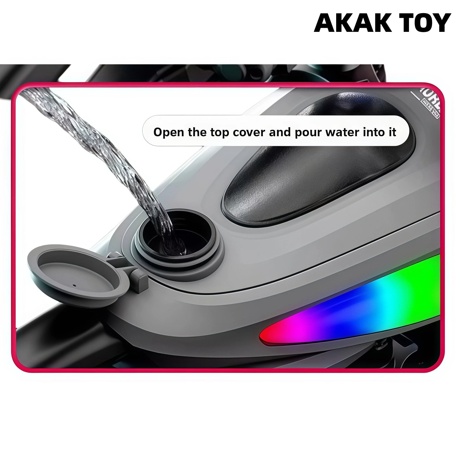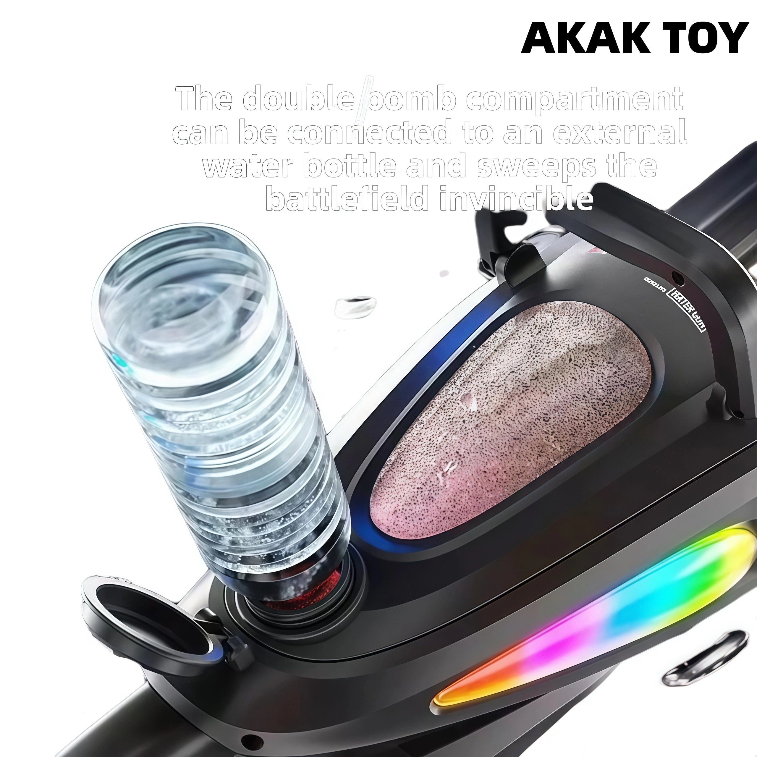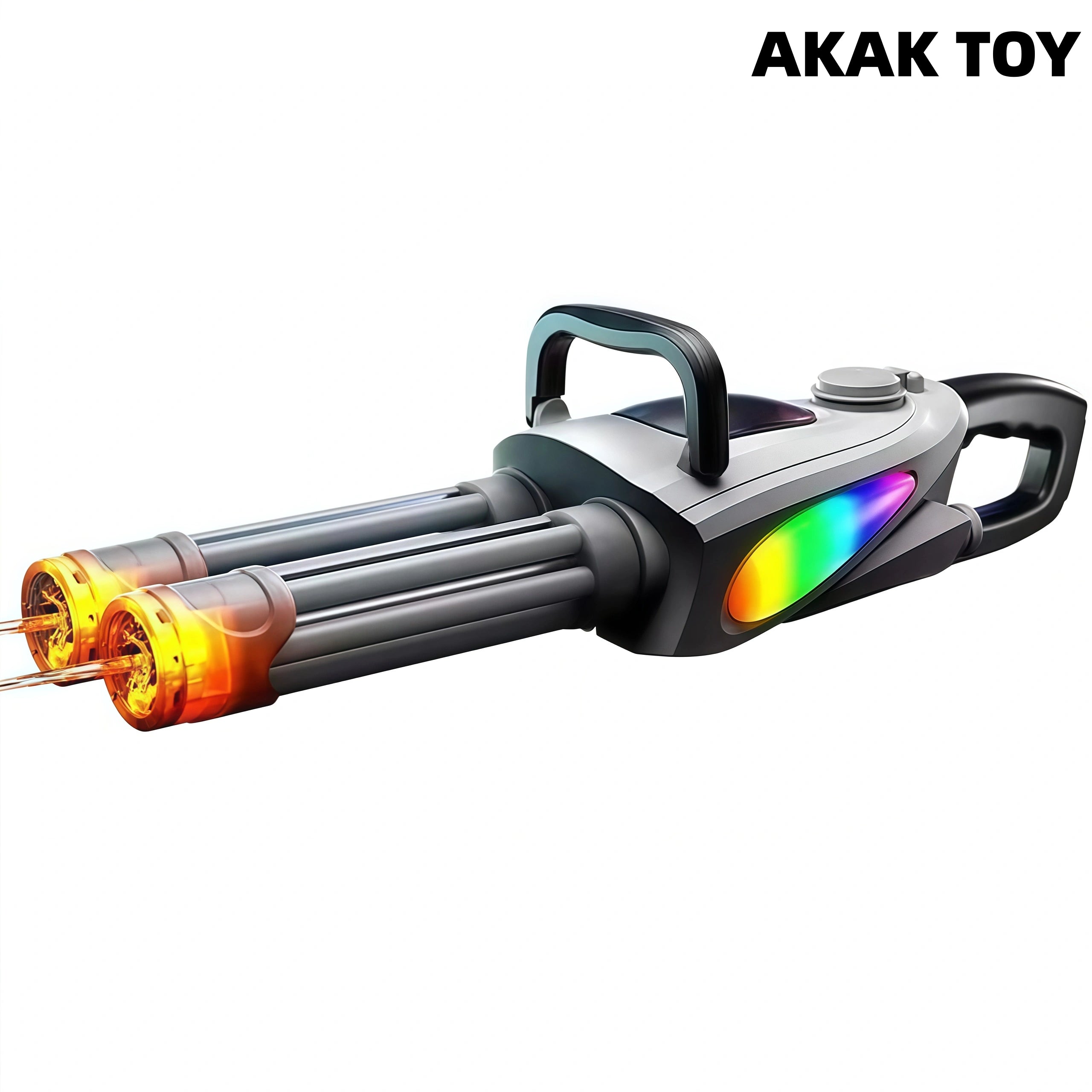 The new double-barreled Gatling electric water gun has the functions of automatic high-speed continuous firing, double-barreled firing, and cool flashing lights when spraying. Built-in large-capacity water storage device and powerful motor, support long-term endurance, worry-free play. Press to shoot, easy to operate, it is a must-have cool play weapon for children and "big kids" in water battles! Rotating double barrel, electric high burst, ballistic launch out of water, muzzle induction emits colorful flash, gun body colorful light blessing, rechargeable modular battery, long-lasting battery life, plug and play, strong battery life. Features:1. Can be connected to an external water bottle to increase the capacity of the water tank2. Long-range shooting3. Long-term endurance4. Flashing light head5. Material: ABS plastic6. Shooting mode: electric7. Shooting range: 15 -20 meters8. Size: 57*15*14CM Packing list:1*Gatling water gun1*Modular battery1*Dual-barreled launch head1*Handle2*Charging cable