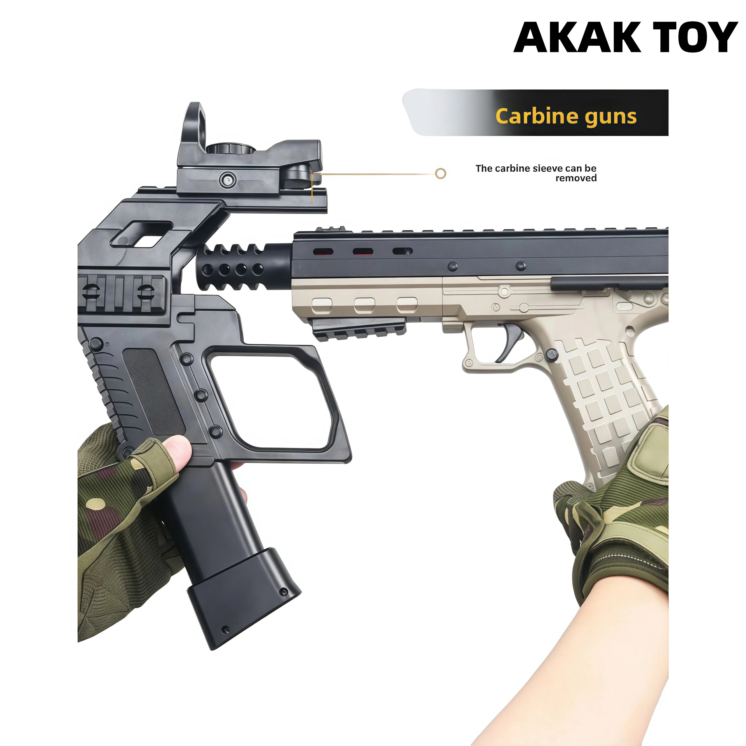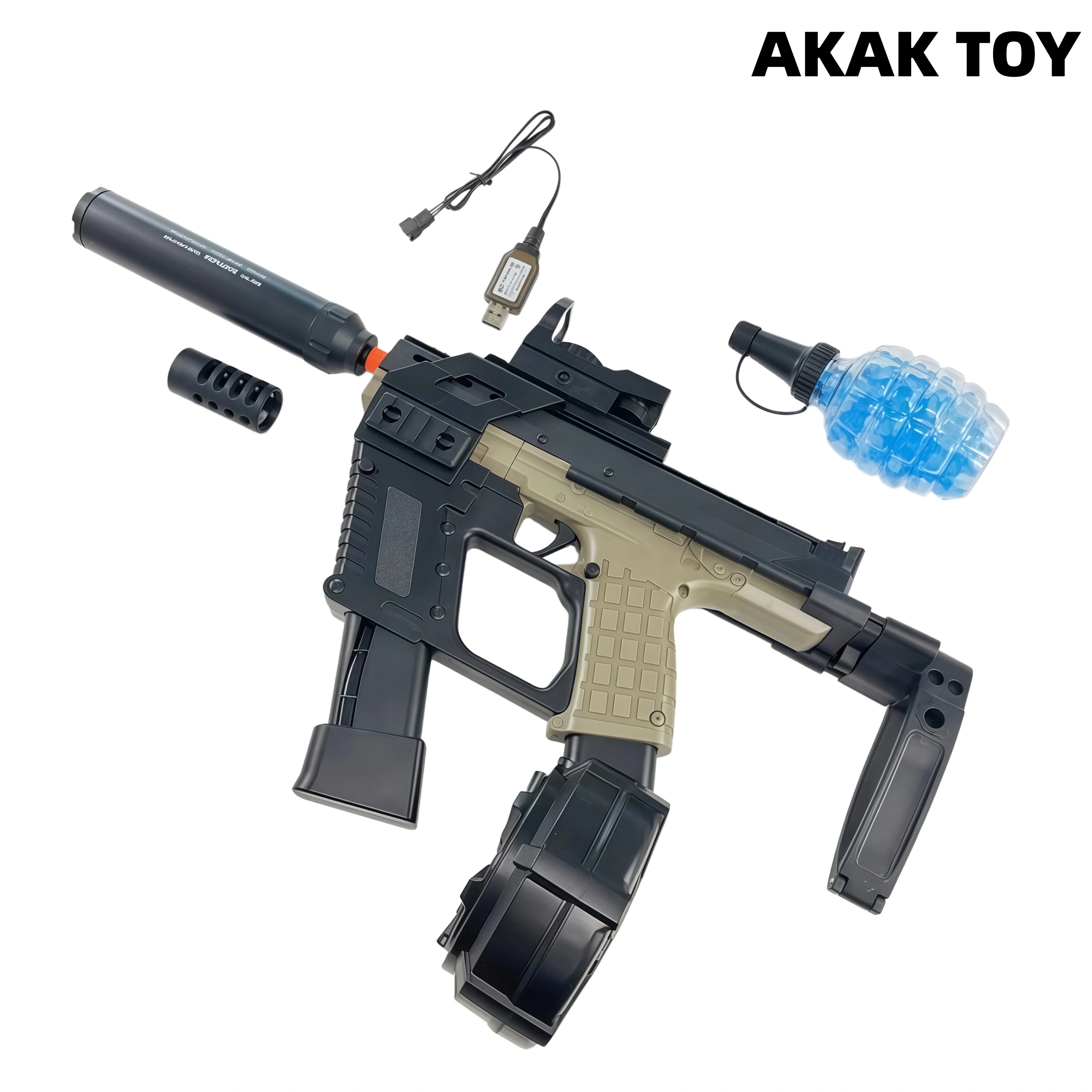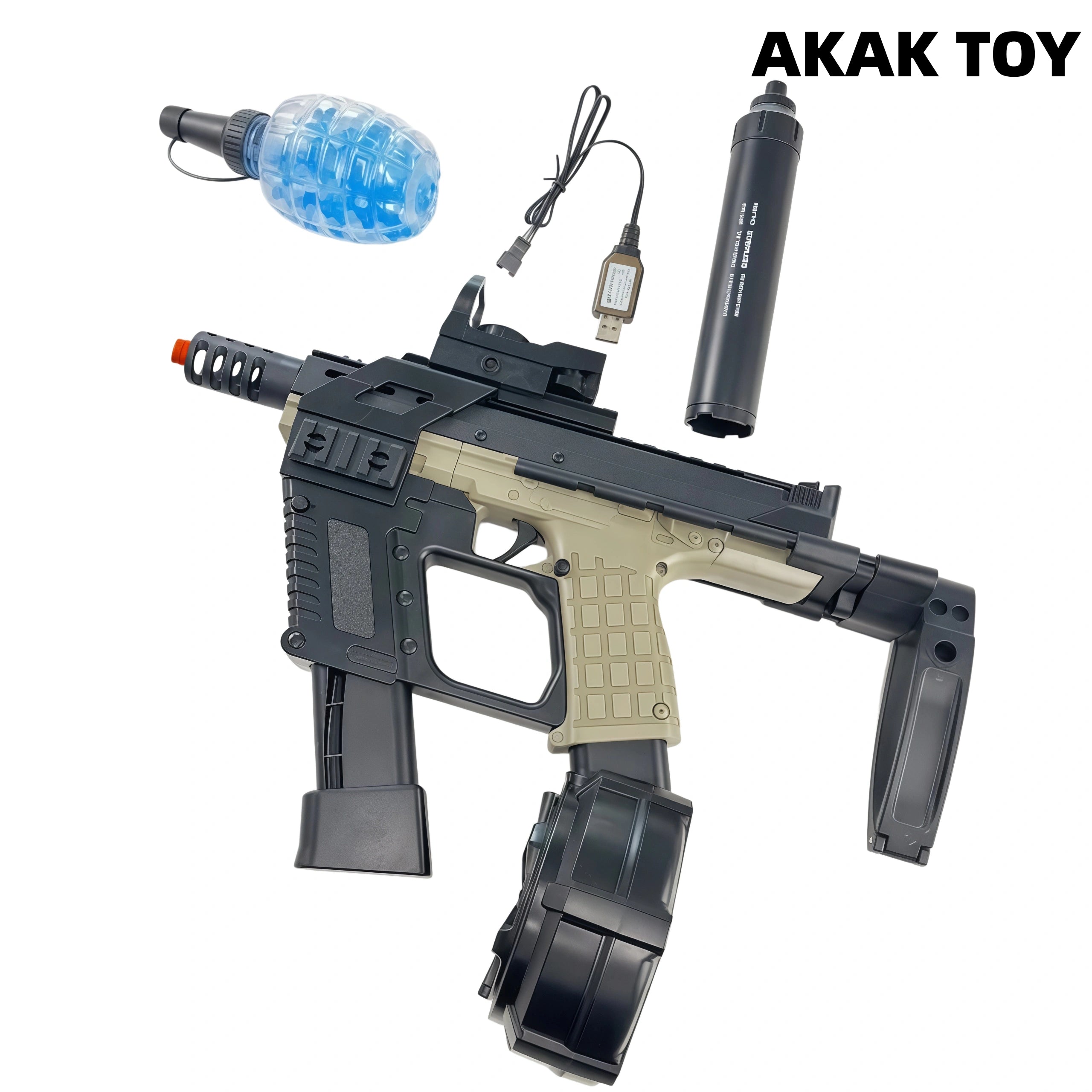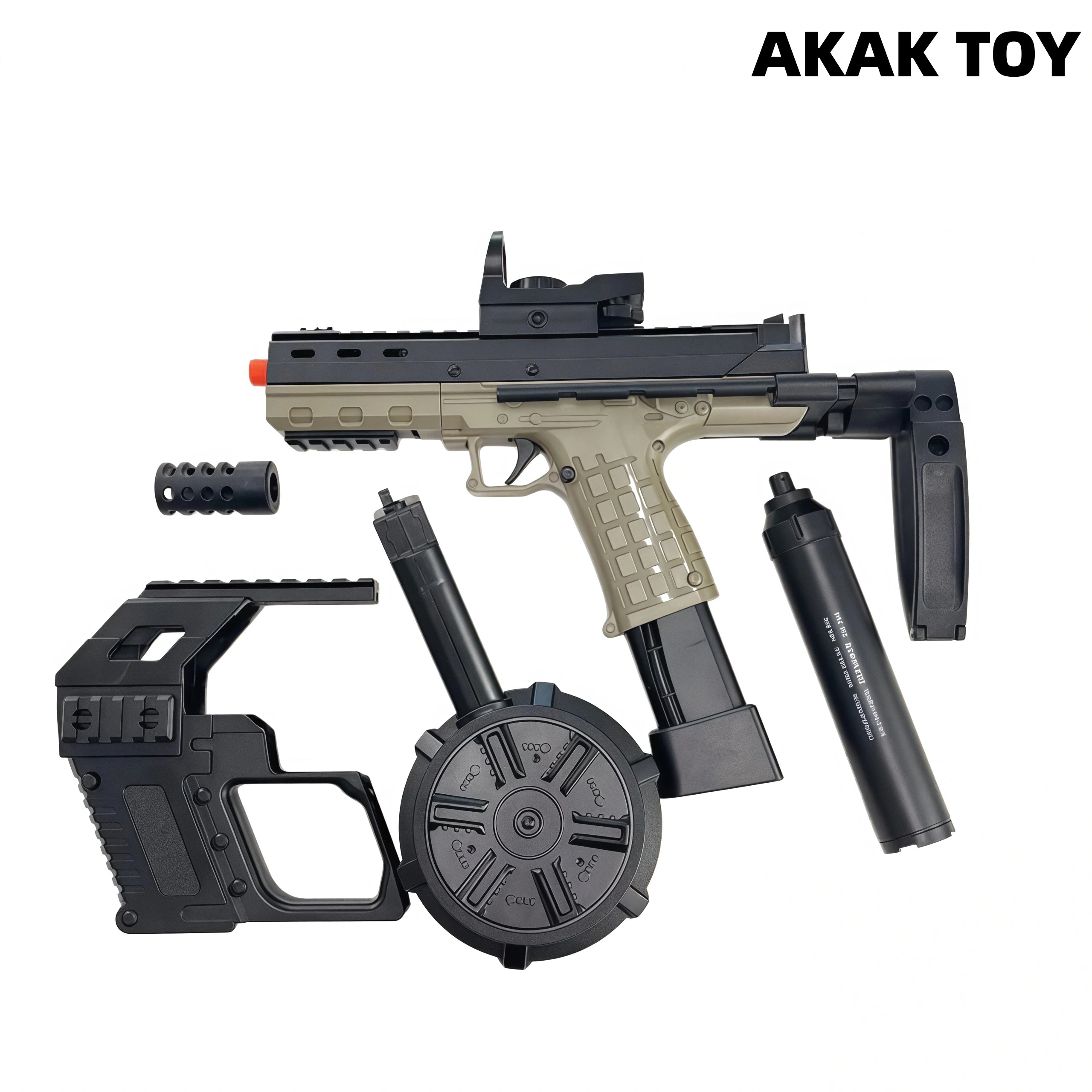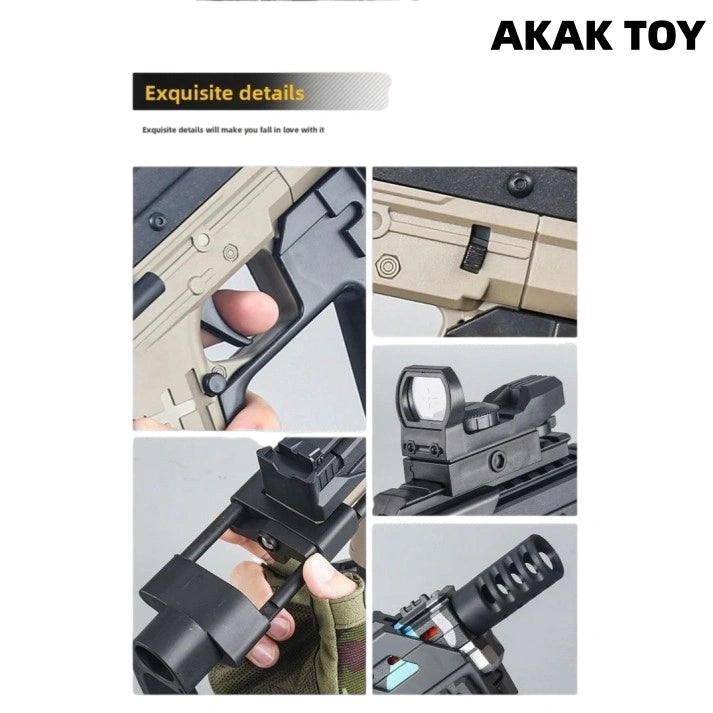Our CP33 gel blaster adopts an innovative dual-rail structure, with a large ammunition capacity and longer endurance. CP33 gel guns are equipped with high-speed motor drive, rapid firing rate, precise strikes, smooth operation and no jamming. Performance and appearance coexist, come and unlock your exclusive combat weapon! Features:1. Shooting mode: manual/full-automatic2. Shooting range: 20 meters3. FPS: 180+4. Ammunition type: gel ball5. Size: 58 cm6. Magazine feeding7. Removable accessories Package Contents:1* CP33 Gel Gun1* Muzzle1* Magazine1* Drum1* Holographic Sight1* Silencer1* Gel Ball (10000pcs)1* USB Charging Cable1* Rechargeable Battery1* Expansion Kit