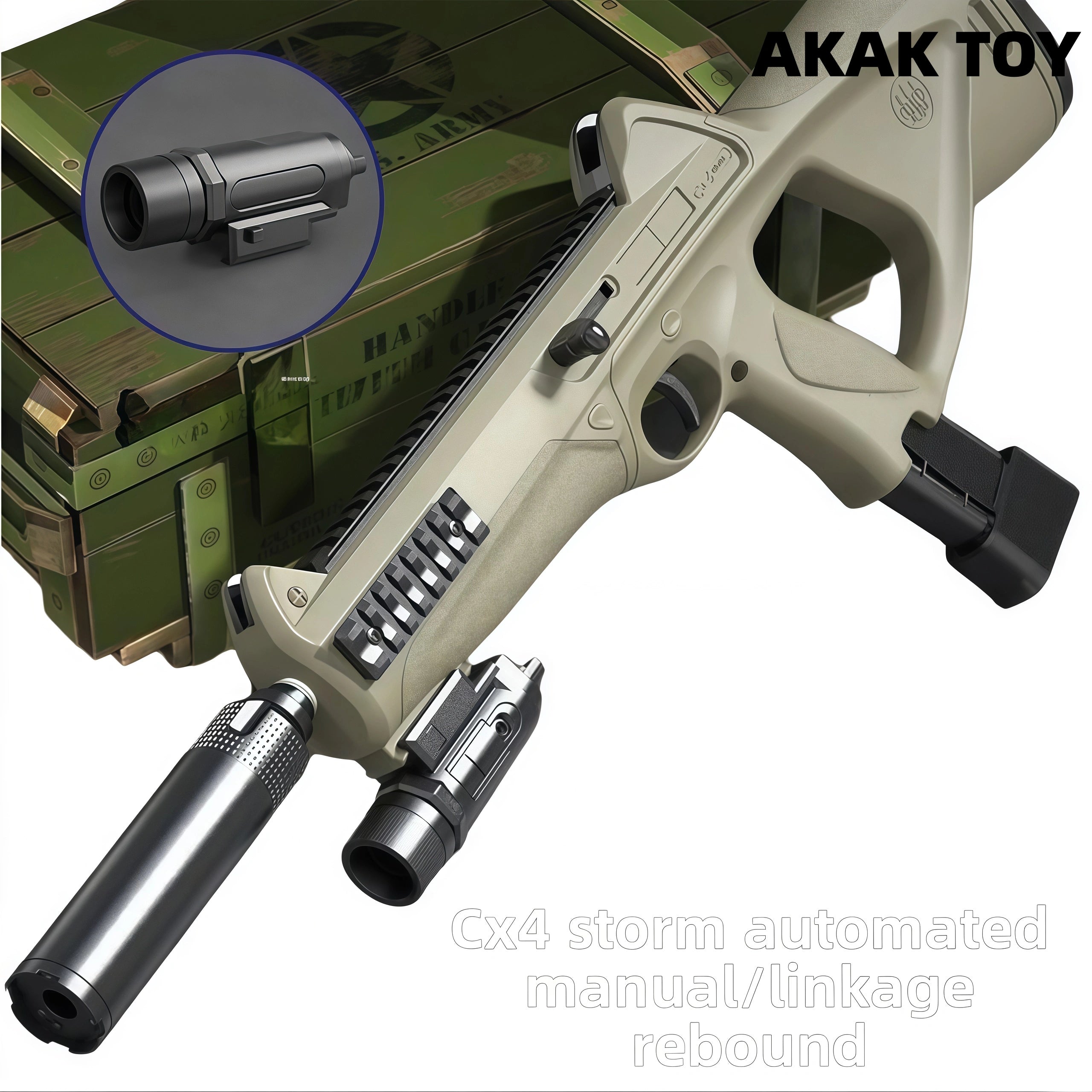 -This gun adopts a recoil design, and can choose full-automatic or manual shooting mode, equipped with a drum, magazine and tracer device to ensure uninterrupted shooting fun. -High rate of fire, range up to 20 meters. Manual loading and shooting, immersive gaming experience. -Equipped with rechargeable batteries, large capacity, non-stop fun. Features:1. High rate of fire, manual loading2. Shooting mode: manual/full-automatic3. Shooting range: 20-25 meters4. Firepower: up to 170 rounds/second5. Ammunition type: 7-8mm gel ball6. Material: ABS plastic7. Size: 66 cm Packing list:1* CX4 gel gun1* flashlight1* silencer1* fire suppressor head1* magazine1* drum1* rechargeable battery1* USB charging cable1* gel ball (10000 pcs)