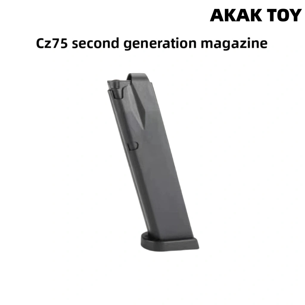 Description:1. One-button ejection safety design: When there are no spent casings in the magazine, simply press the ejection button to eject the cartridge, providing a realistic ejection experience. 2. The bolt remains open after the last bullet is fired. Of course, you can also remove the magazine for continuous firing. 3.The muzzle is made of metal and features a built-in safety laser, resulting in a longer and straighter ejection distance. It can also be used in conjunction with a target sensor. Please note: This laser gun requires the use of R290 refrigerant. Features:1.Material: Nylon+Metal2.Maximum Laser Range: 200+ meters3.Firing Mode: Semi-automatic4.Recognition Range: 50 meters5.Size: 23cm Package List:1*CZ75 Laser Gun¡ꡧmetal mag¡ê?10*Plastic Casings