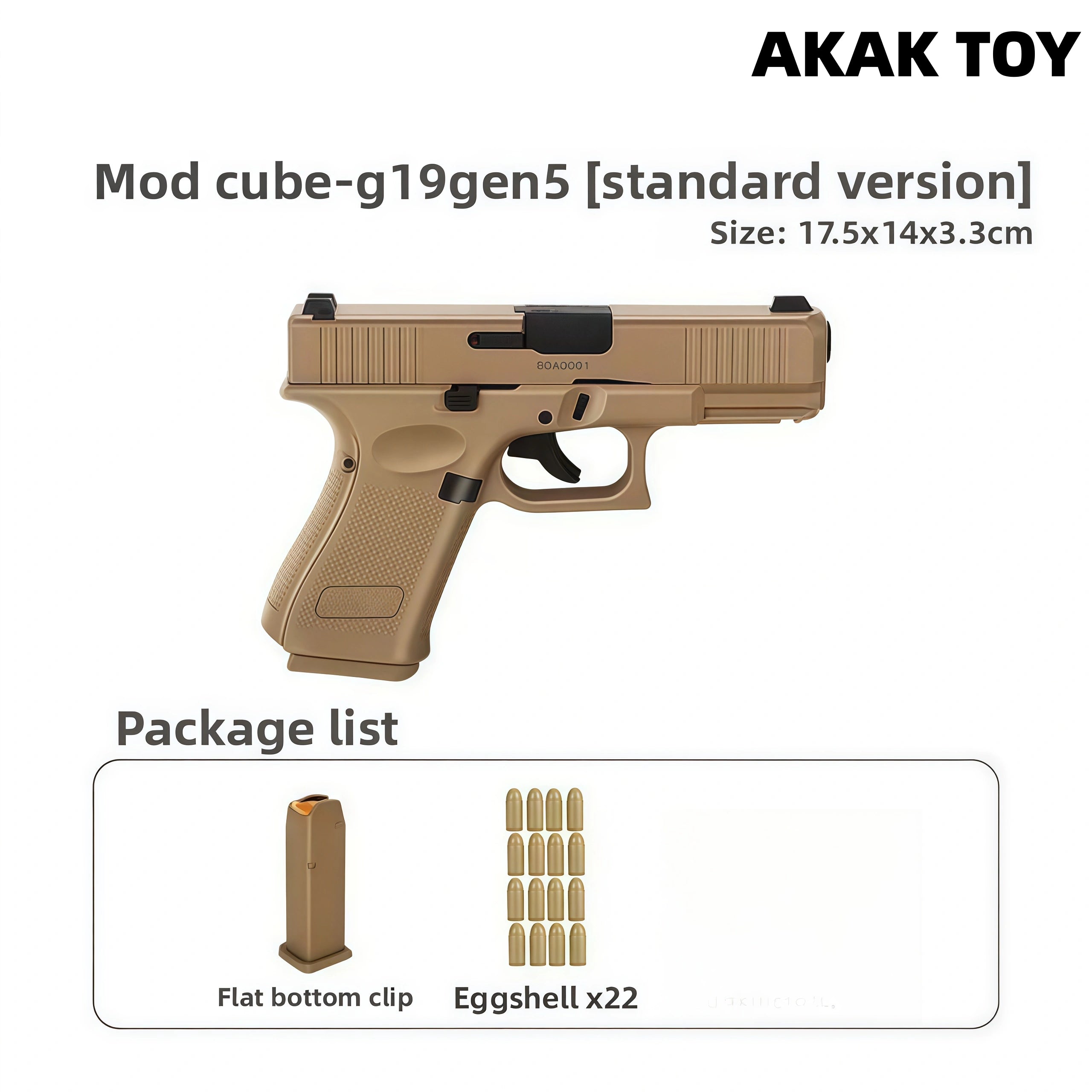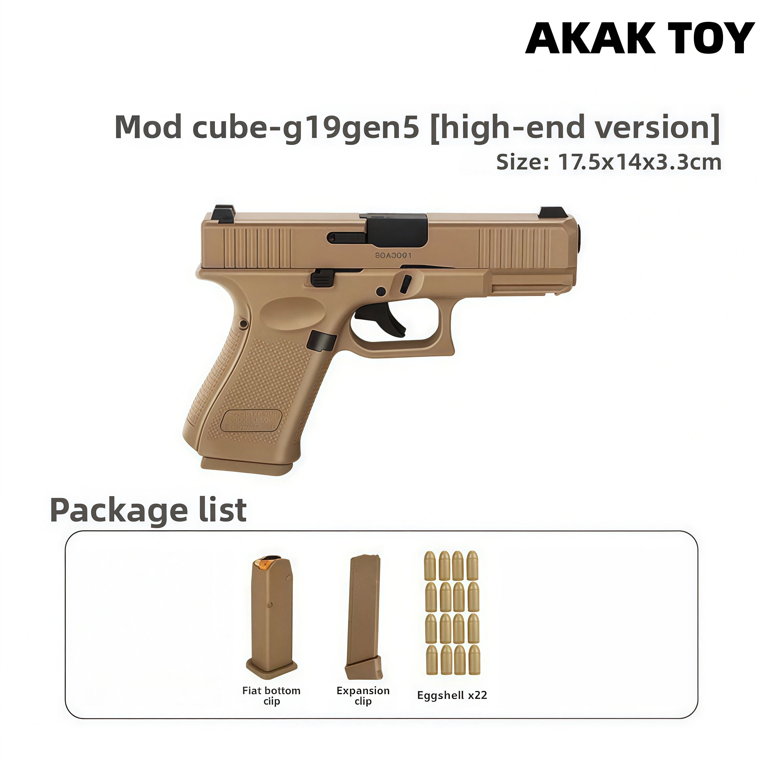 Description:This toy pistol features a double-stack, realistic magazine with increased capacity and quick disassembly and assembly, allowing players to experience the thrill of authentic assembly and disassembly beyond just shooting. Functionally, it supports blowback and laser ejection, delivering a stunning visual and operational experience with every shot. It also features an empty chamber lock function, making the overall operation more realistic than a real firearm, enhancing interactivity and immersion. Features:1. Blowback, empty chamber lock2. Shooting Mode: Electric3. Laser Range: 200 meters4. Material: Nylon5. Size: 20 cm Packing List:Standard Configuration: 1 G19 Laser Gun + 1 Flat-Bottom Magazine + 22 Plastic ShellsDual Magazine Advanced Configuration: 1 G19 Laser Gun + 22 Plastic Shells + 1 Flat-Bottom Magazine + 1 Extended Magazine