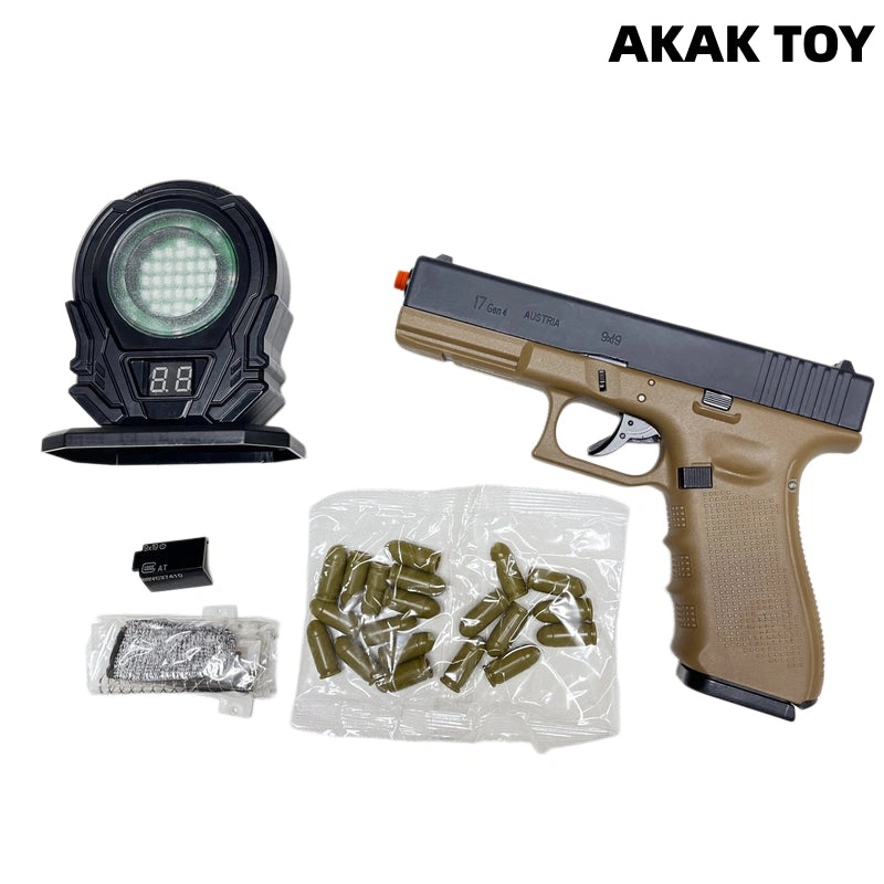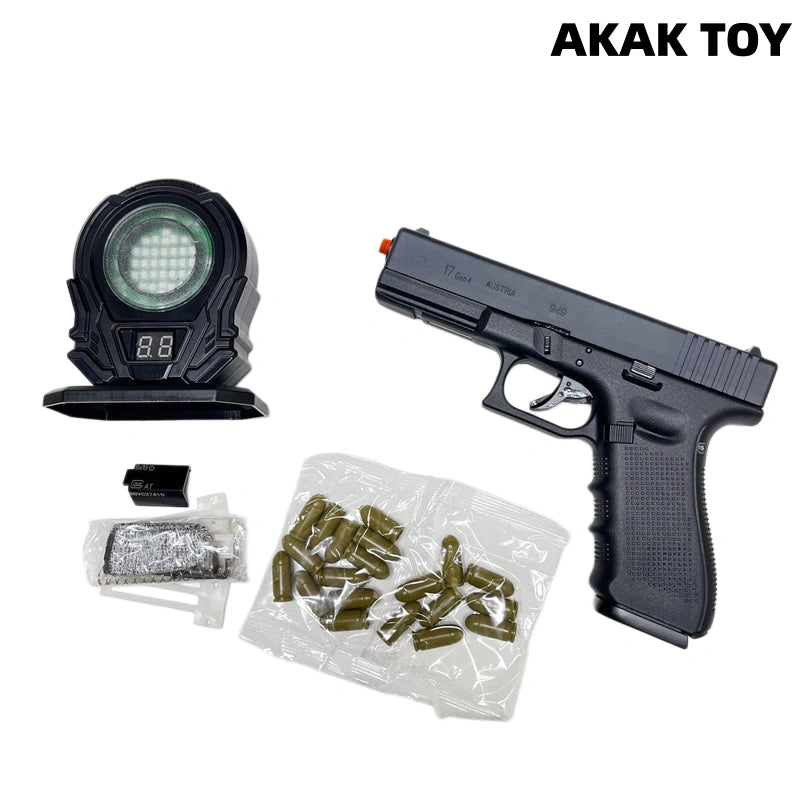 Description:Carrier Laser: The carrier laser is free of ripples and can be adjusted to zero. Laser Blowback: Version 3.0 laser mode. A switch on the barrel allows for firing with or without a case loaded. Double-Stack Single-Feed: A realistic magazine allows for quick disassembly and installation, creating a fun experience. Drop Lock: A new generation laser trigger system with active dip offset lock throughout the entire stroke. Reinforced Components: The blowback power assembly has been reinforced, and the entire system is made of metal for increased strength. Second-Generation Ejection: A unique two-stage trigger safety effectively prevents accidental engagement. Empty Chamber Hold: When the magazine is empty, the gun can enter empty chamber hold mode. Features:1. Drop lock, double-stack, single-feed2. Laser blowback, empty chamber lock3. Material: Metal + Nylon4. Shooting Mode: Manual5. Laser Range: Up to 200 meters6. Identifiable Range: 50 meters7. Dimensions: 19*14*3 cm Packing List:1*G17 Laser Gun1* Magazine20* Plastic Cases