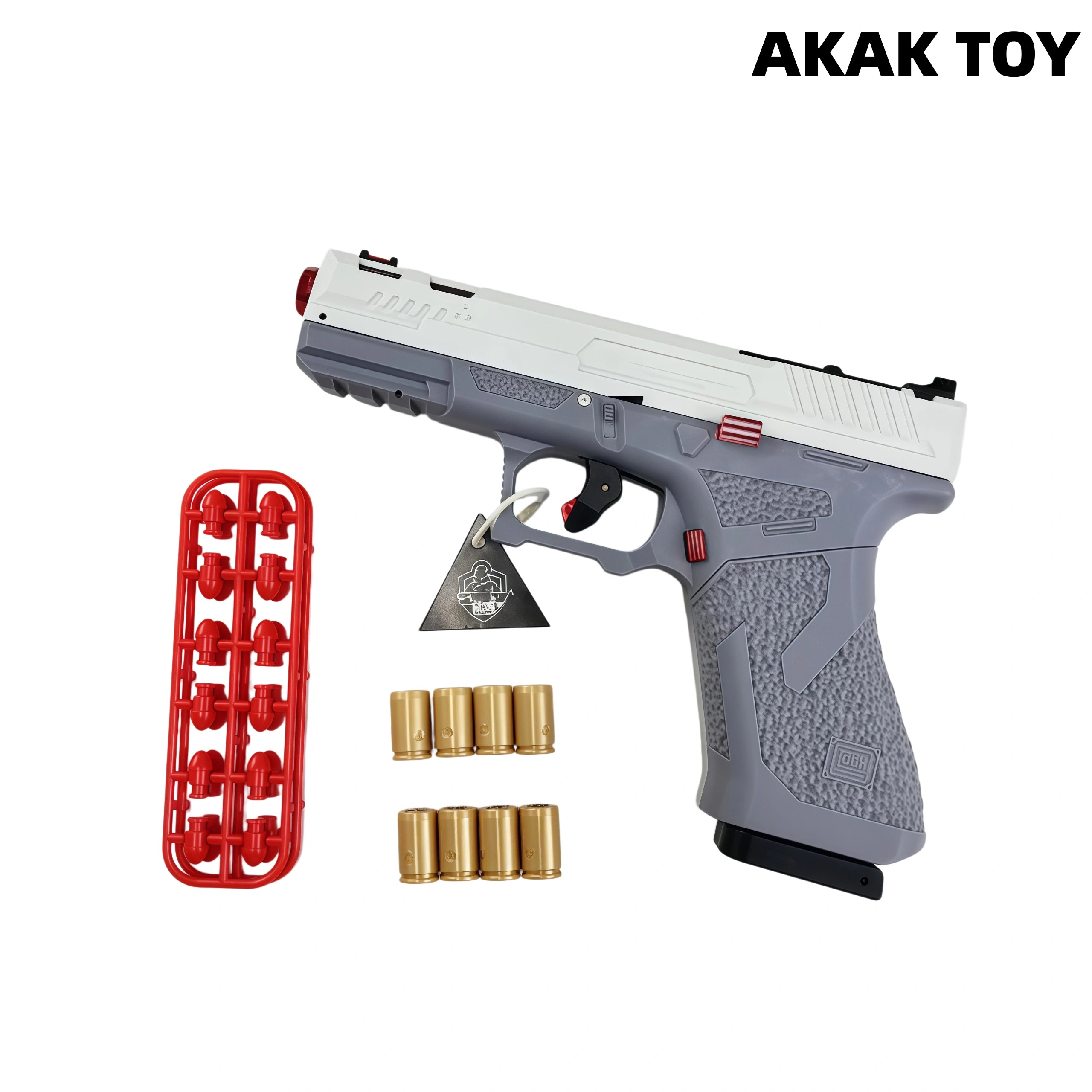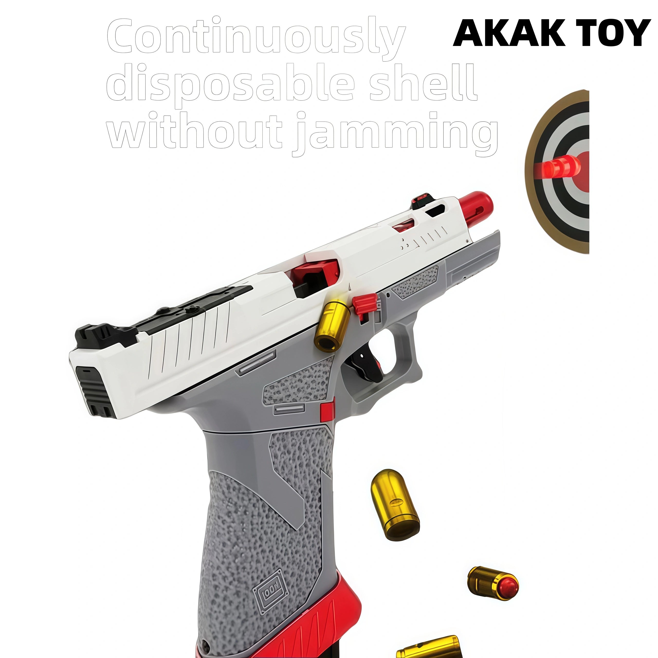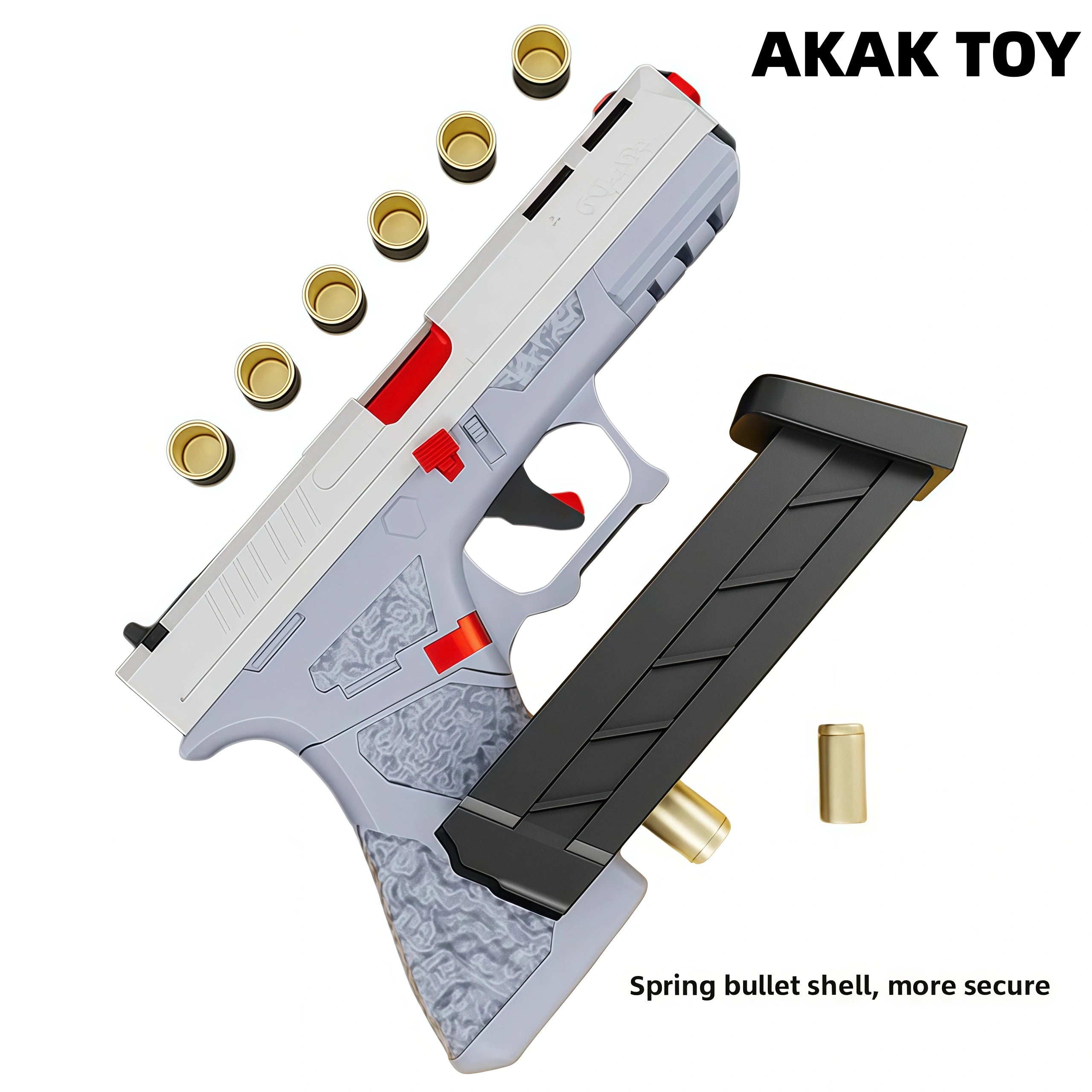 The G17 ejector has realistic recoil and ejection effects, bringing an immersive shooting experience. With the design of automatic rebound and empty chamber suspension, you can feel the different feeling of mechanical bursts without batteries. Features:1. Empty chamber lock2. Removable accessories3. Shell ejection4. Lower magazine5. Material: Material: Nylon + Alloy6. Shooting mode: Manual7. Shooting range: 15-20 meters8. Firepower: up to 110 fps9. Size: 19cm Packing list:1* G17 ejector1* Magazine24* bullets8* Shells1*Black suitcase
