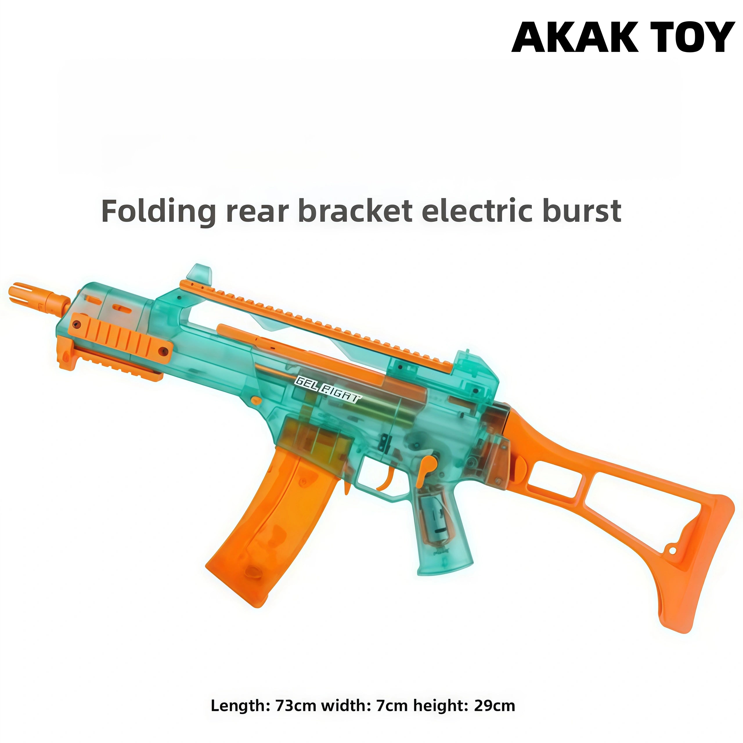 This G36C gel blaster has a frame rate below 200FPS, a solid construction and an eighth-generation gearbox, which is very easy to upgrade Also has a cool transparent shell and a foldable stock for easy carrying Top and side rails for connecting accessories Upgradeable to a high-performance gen8 gearbox Features:1. Removable accessories, lower feed clip2. Foldable stock3. Material: Metal + Nylon4. Shooting mode: Manual / Electric5. Battery type: 7.4V FPS:200+6. Range: more than 25 meters7. Ammunition type: 7-8mm gel ball8. Size: 73*7*29cm Packing list:1*G36c gel gun1*magazine1*flash hider1*goggles1*7.4 v rechargeable battery1*USB charging cable1*gel ball (10000 pcs)