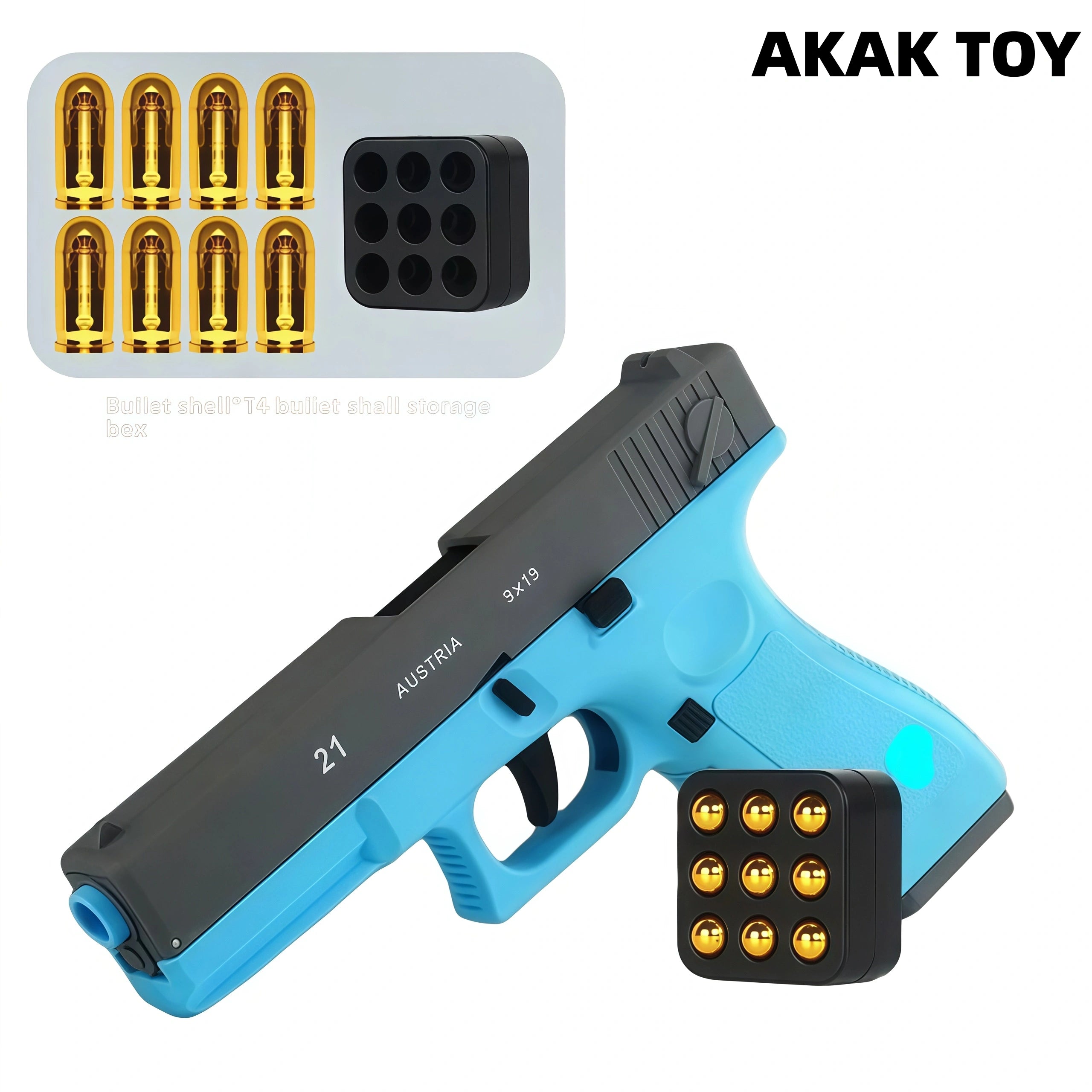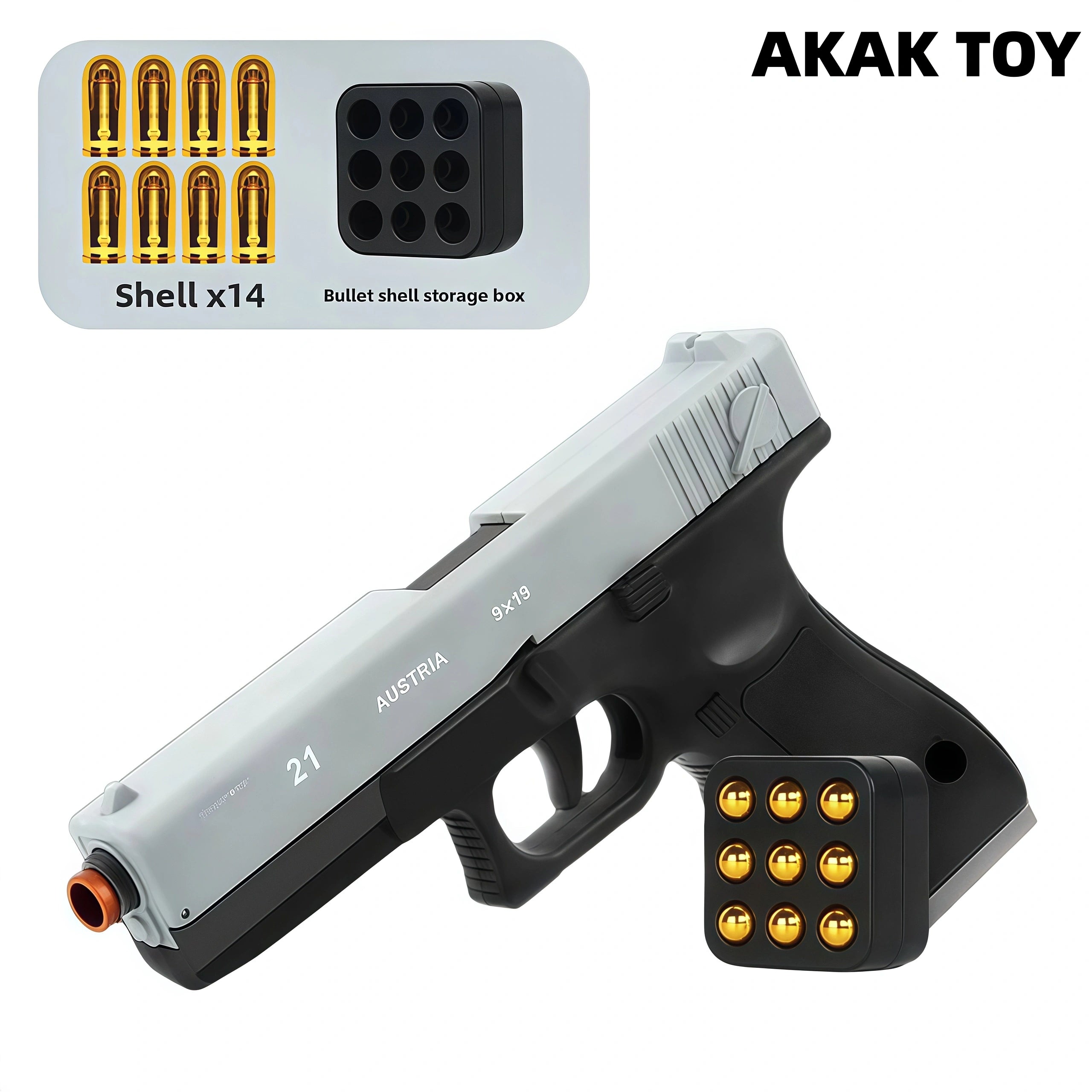 This soft bullet gun restores the classic shape of G21 equipped with a manual lower feeding system, supports one round per chamber + automatic rewind + continuous shell ejection mechanism, and the firing process is more realistic. It has an empty chamber hang-up function, and the bolt is automatically locked after the last round, with full details. Features:1.The automatic shell ejection toy is a recoil-operated pistol¡ê?The slide moves backward when the trigger is pressed2.When there is no bullet, press the trigger to lock the slide, and the last round of the bolt remains open3.Size: 23cm4.This toy supports ejection, but does not shoot bullets5.Perfectly restores the shell ejection process when the pistol is fired Packing list:1* G21 pistol1* magazine14* shells