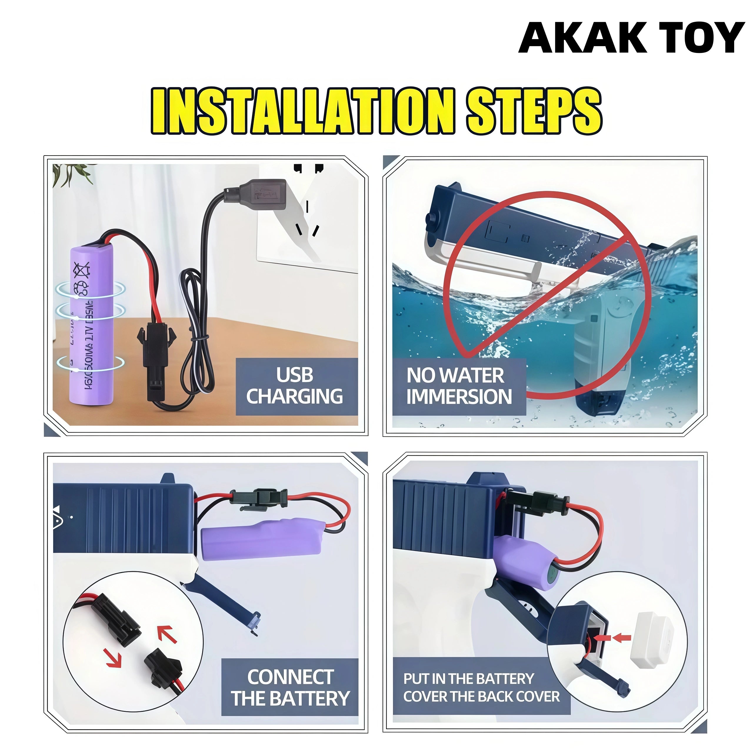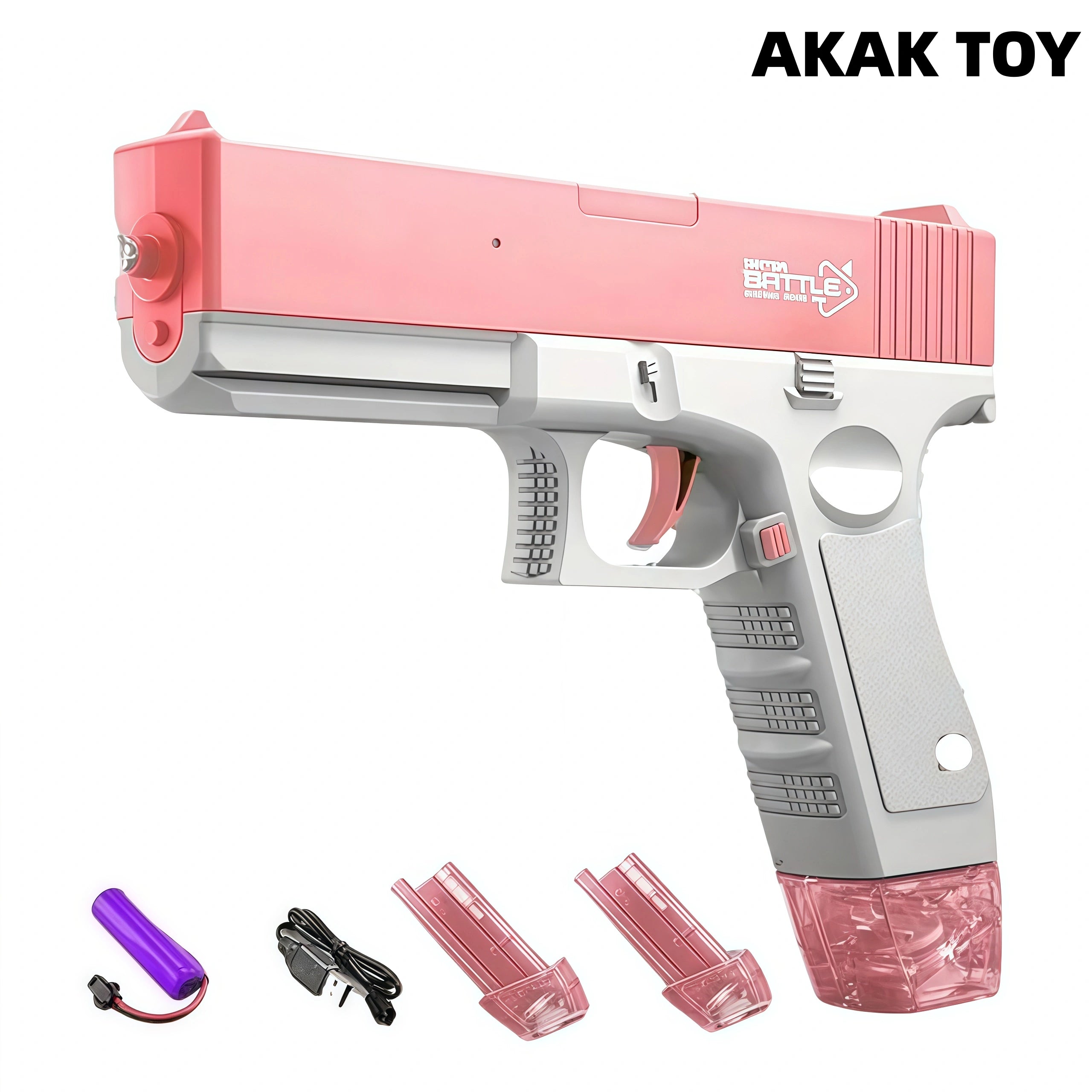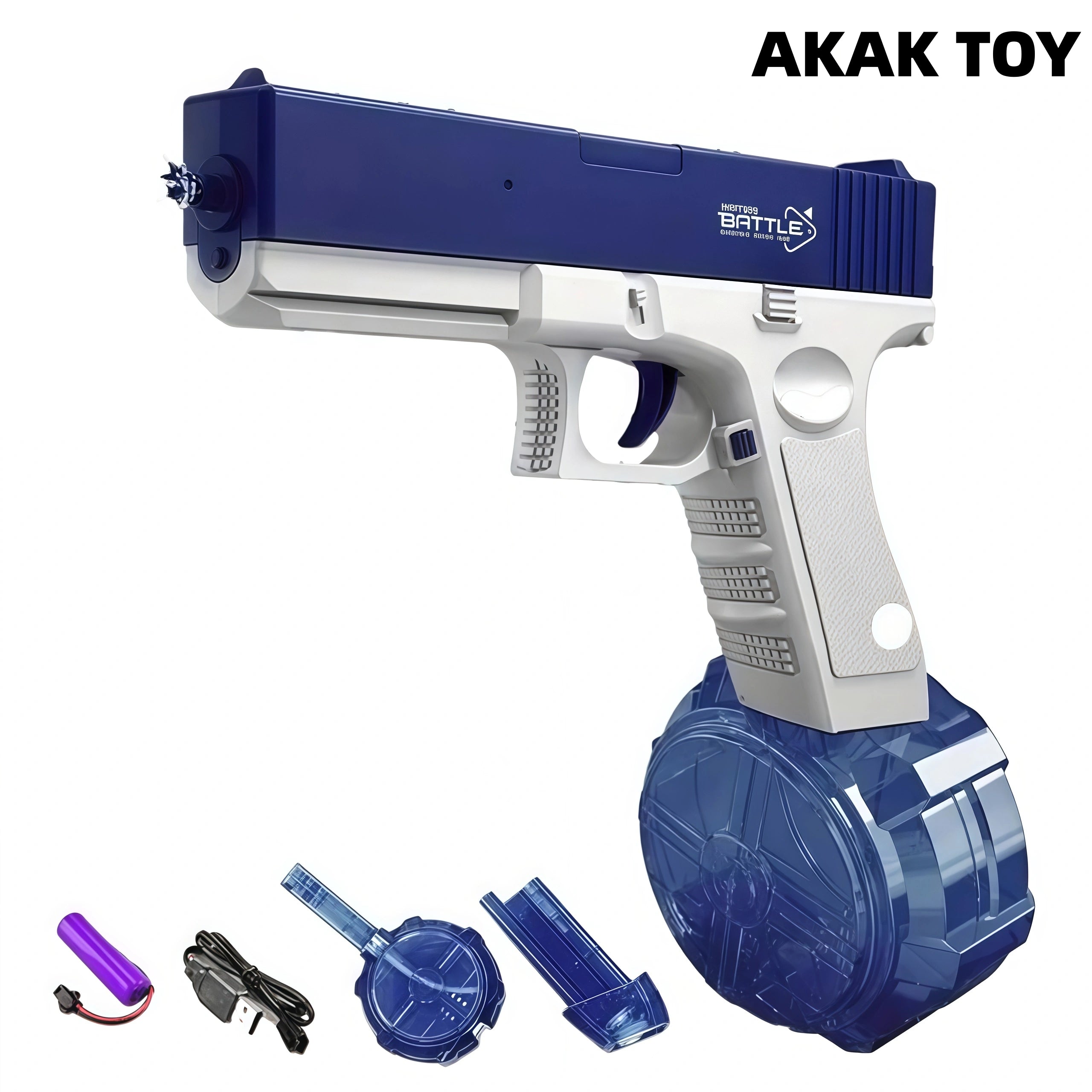 DescribeSummer is here! Come and use the powerful water gun to enjoy the excitement of summer fever with your friends. This electric water gun is small but has a large capacity. It is suitable for friends of all ages and is one of the indispensable toy water guns in summer! Features:1. Electric high-speed burst2. Large-capacity water storage tank3. Battery: Lithium battery 4. Material: ABS plastic5. Range: 10-15 meters6. Shooting mode: electric burst mode7. Ammunition type: water storage8. Size: 22.6*24.6*11.7 cm Packing list:2*Water storage box1*Rechargeable battery1*USB charging cable