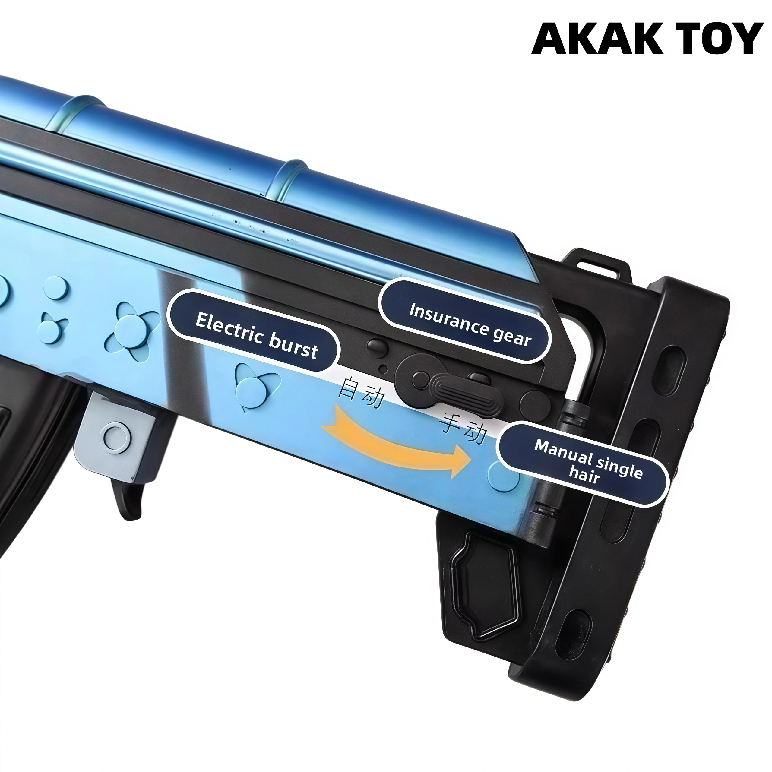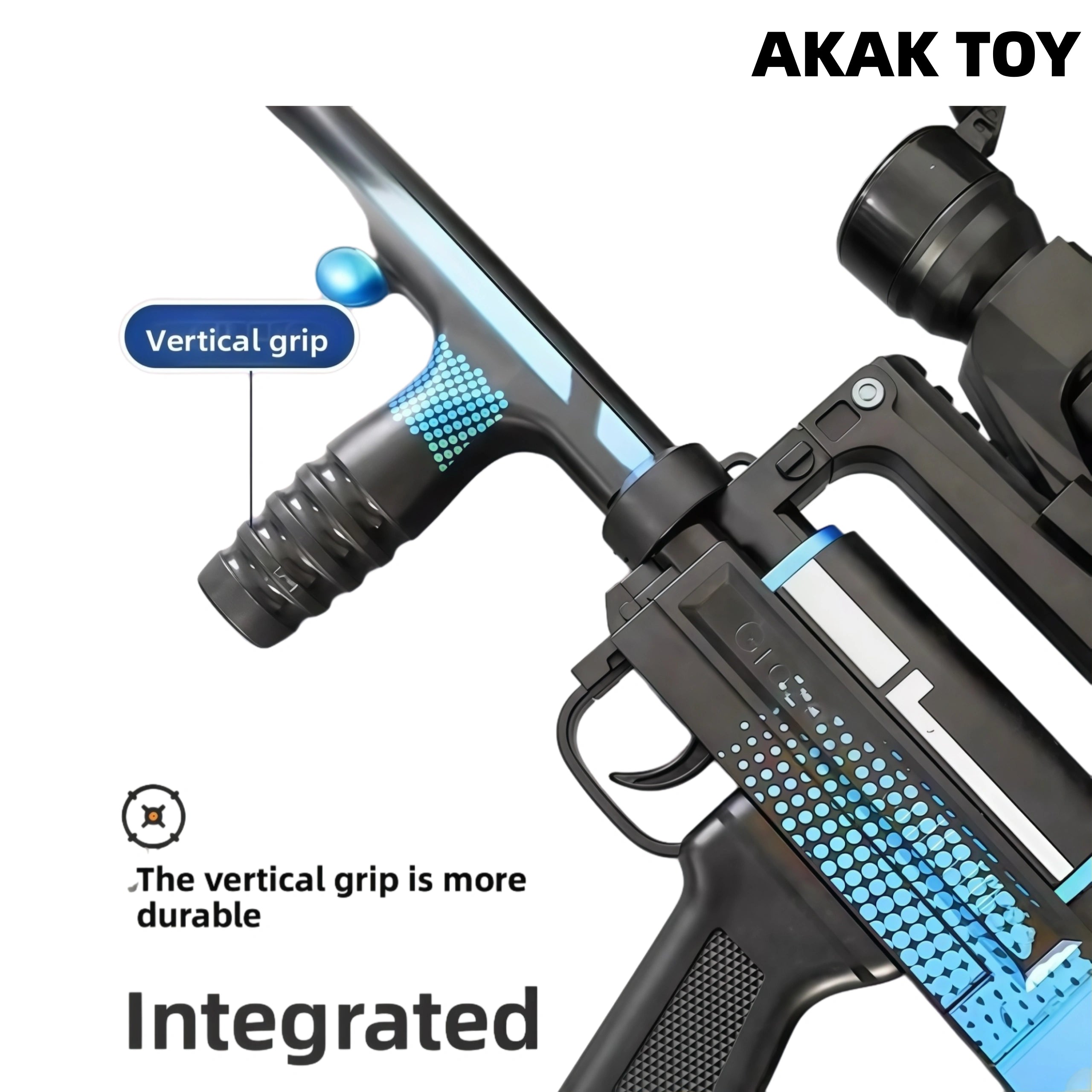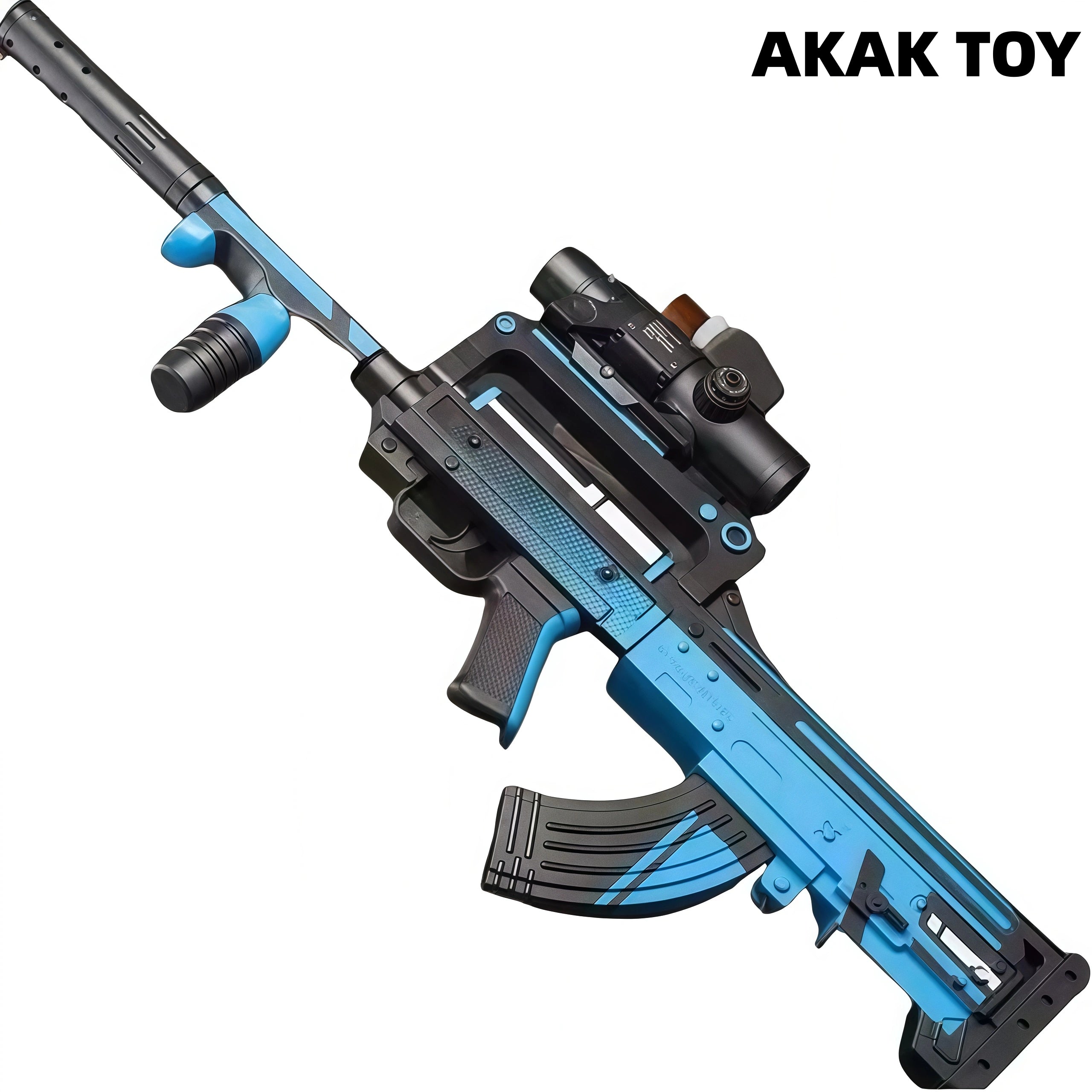 This Groza Gel Blaster supports manual and electric dual-mode shooting, and is equipped with a fire pig color silencer that can spray seven colors, which is full of firepower. The bullpup structure and magazine feeding design make it easy to operate, and the rich tactical accessories make the battle more intense. The powerful power system and comfortable vertical grip allow long-range shooting of more than 20 meters. Features:1. Removable accessories, lower feed clip2. Fire pig color silencer that can spray seven colors3. Material: metal4. Shooting mode: manual/electric5. Battery: 7.4V6. Range: 20-25 meters FPS:250+7. Ammunition type: 7-8mm gel ball8. Size: 80 cm Packing list:1*Groza gel gun1*Red dot mirror1*Infrared1*Flashlight1*Adjustable magnification mirror1*Grip1*Silencer1*Rechargeable battery1*USB charging cable1*Gel ball (10,000 pcs)