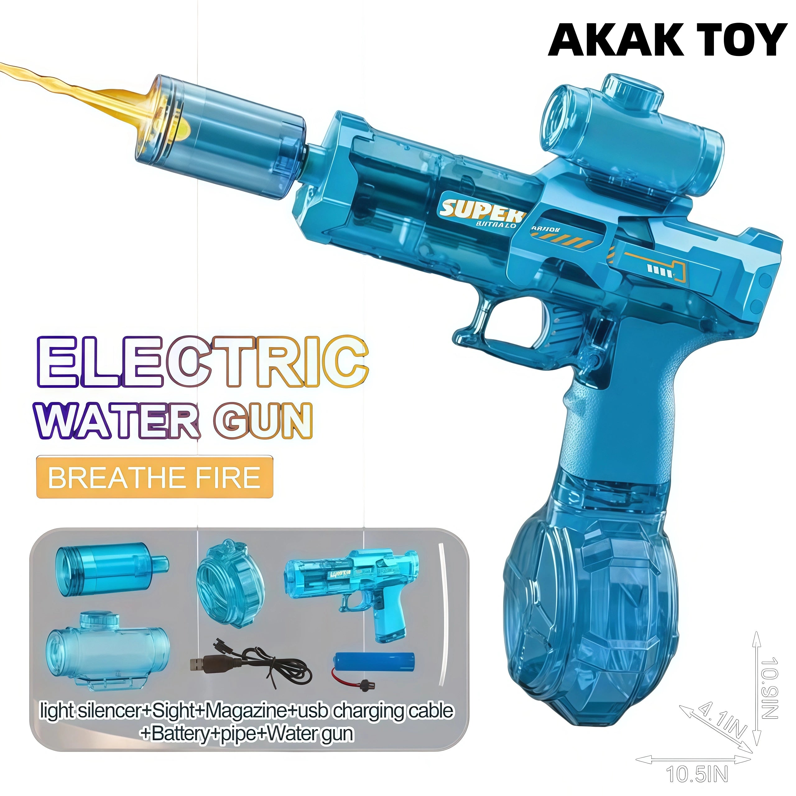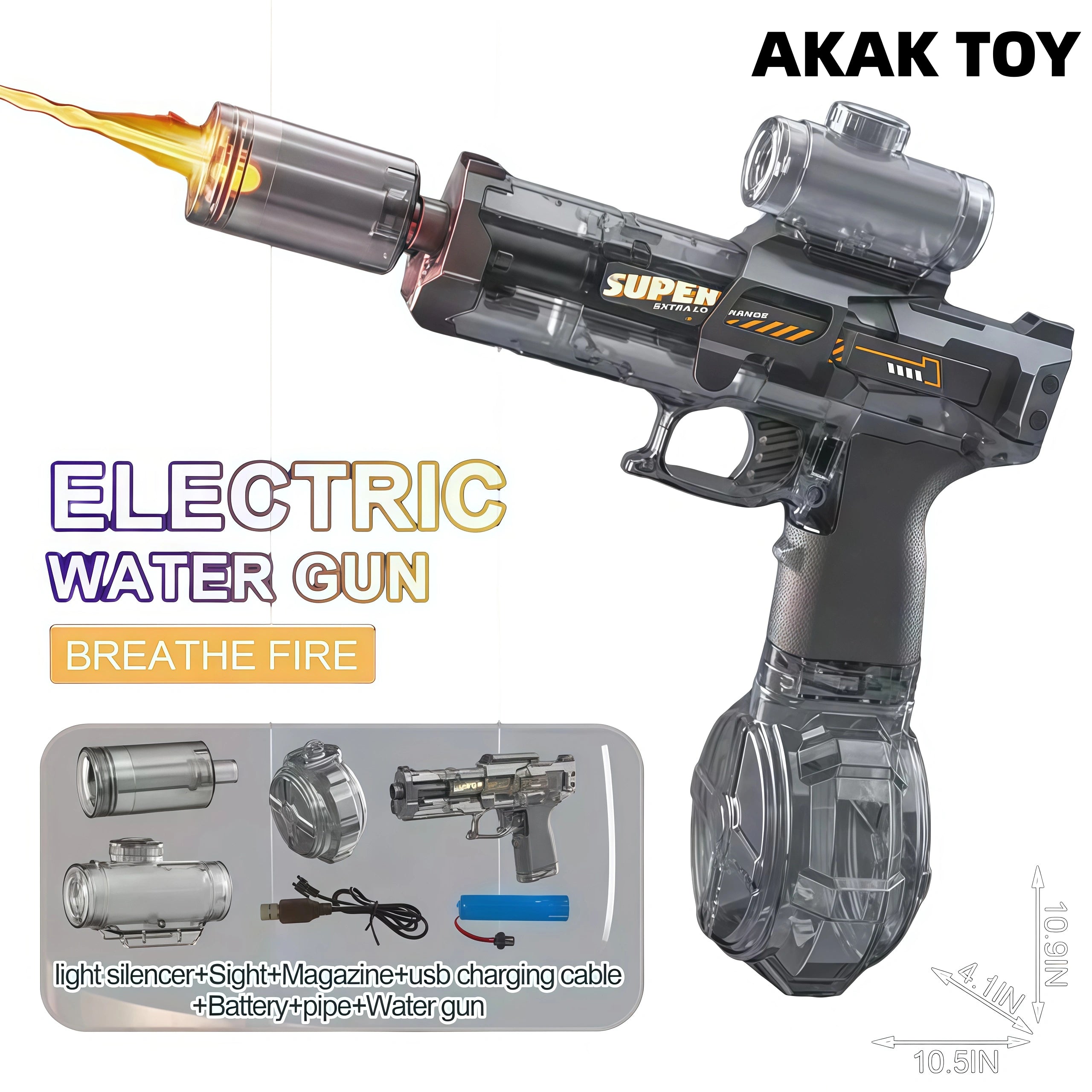 Experience the ultimate outdoor fun with the Fire Mouse Ice Blast Electric Water Gun Toy. Designed for thrilling water battles, this electric water gun has powerful performance and a refreshing spray that will make your playtime unforgettable. Features:1. Electric burst, long range, long battery life2. Battery: 1200 mA lithium battery3. Material: ABS plastic4. Shooting mode: electric mode5. Water tank capacity: 350 ml6. Size: 27*11*28 cm Packing list:1.1*Rechargeable battery2.1*USB charging cable3.1*Binoculars4.1*Magazine5.1*Luminous gun head