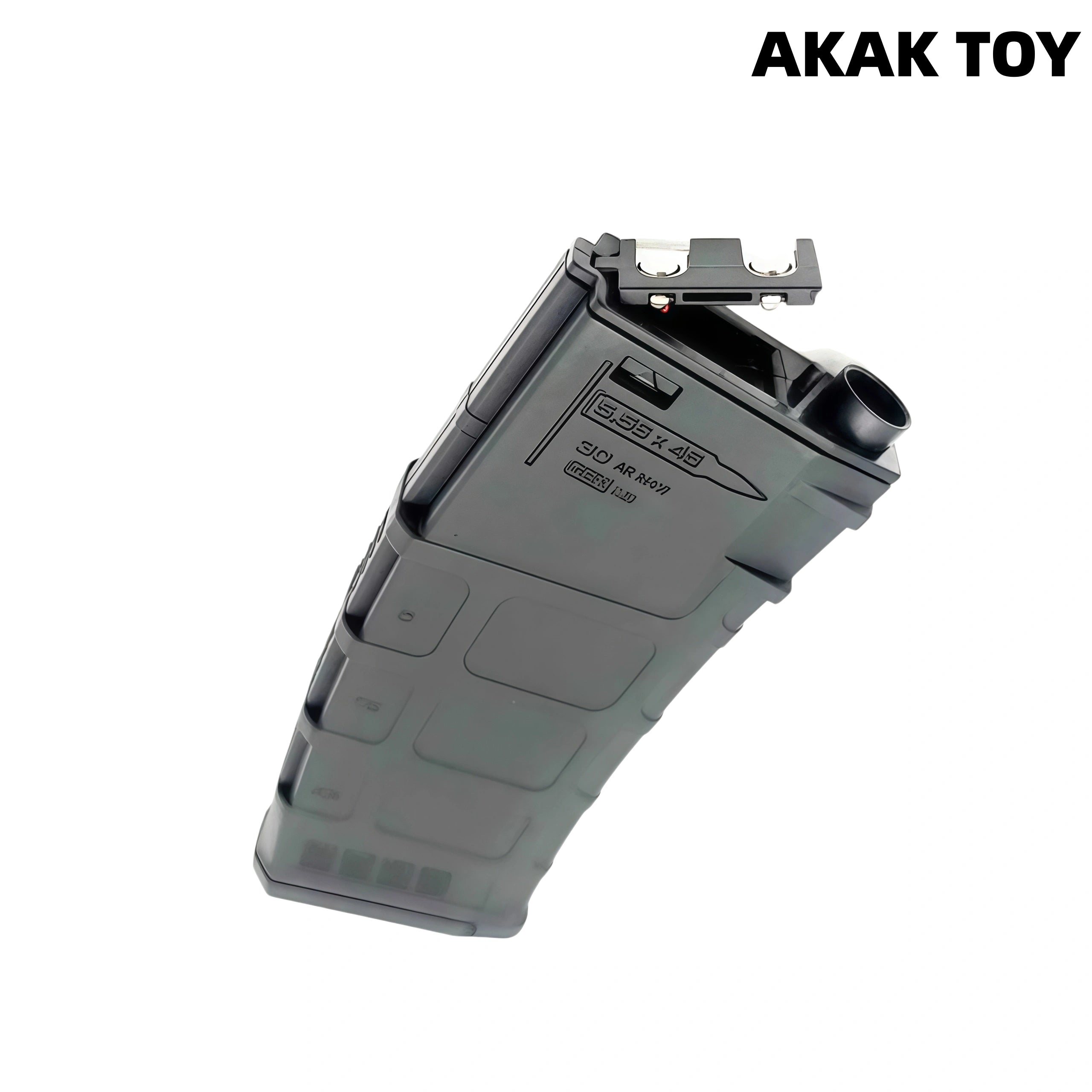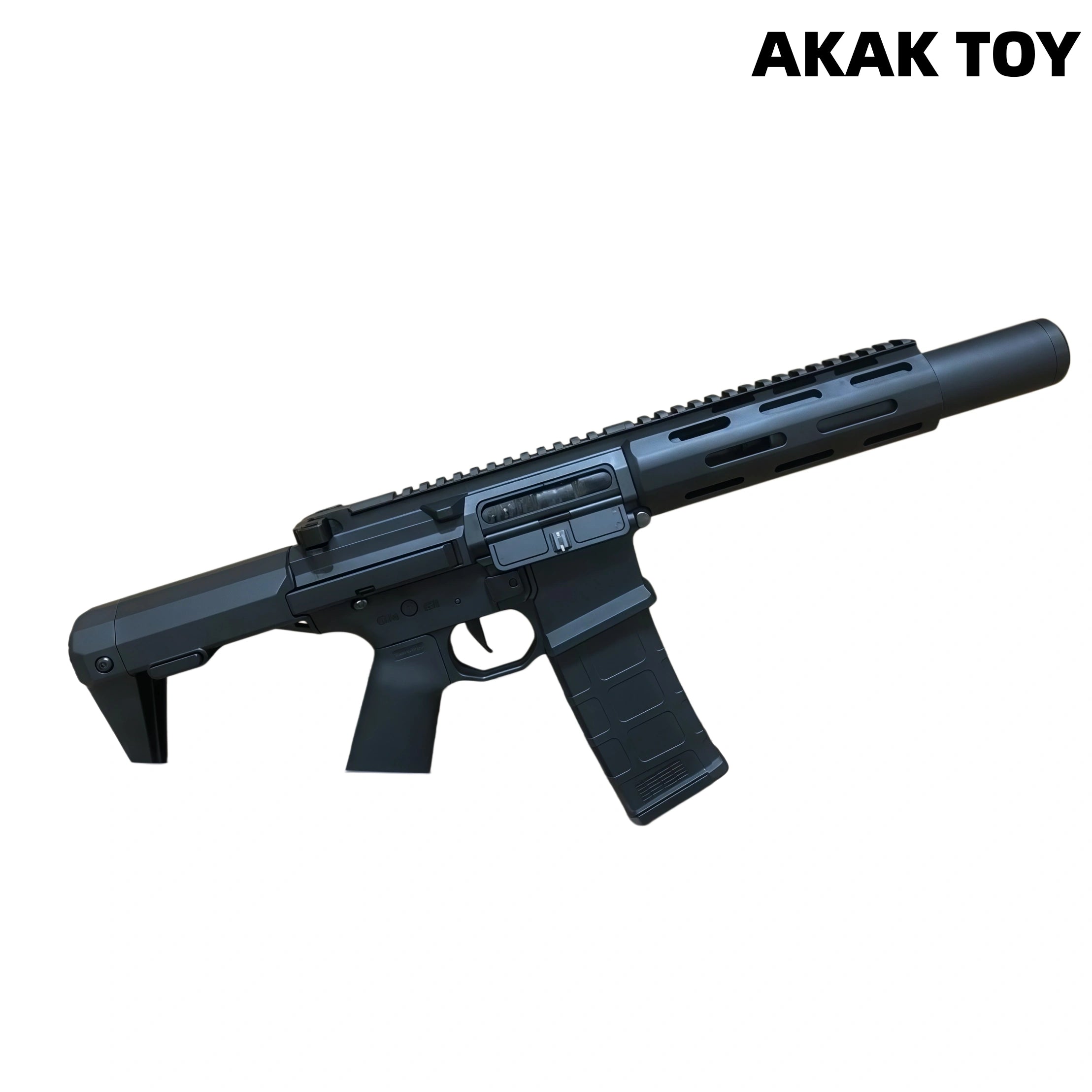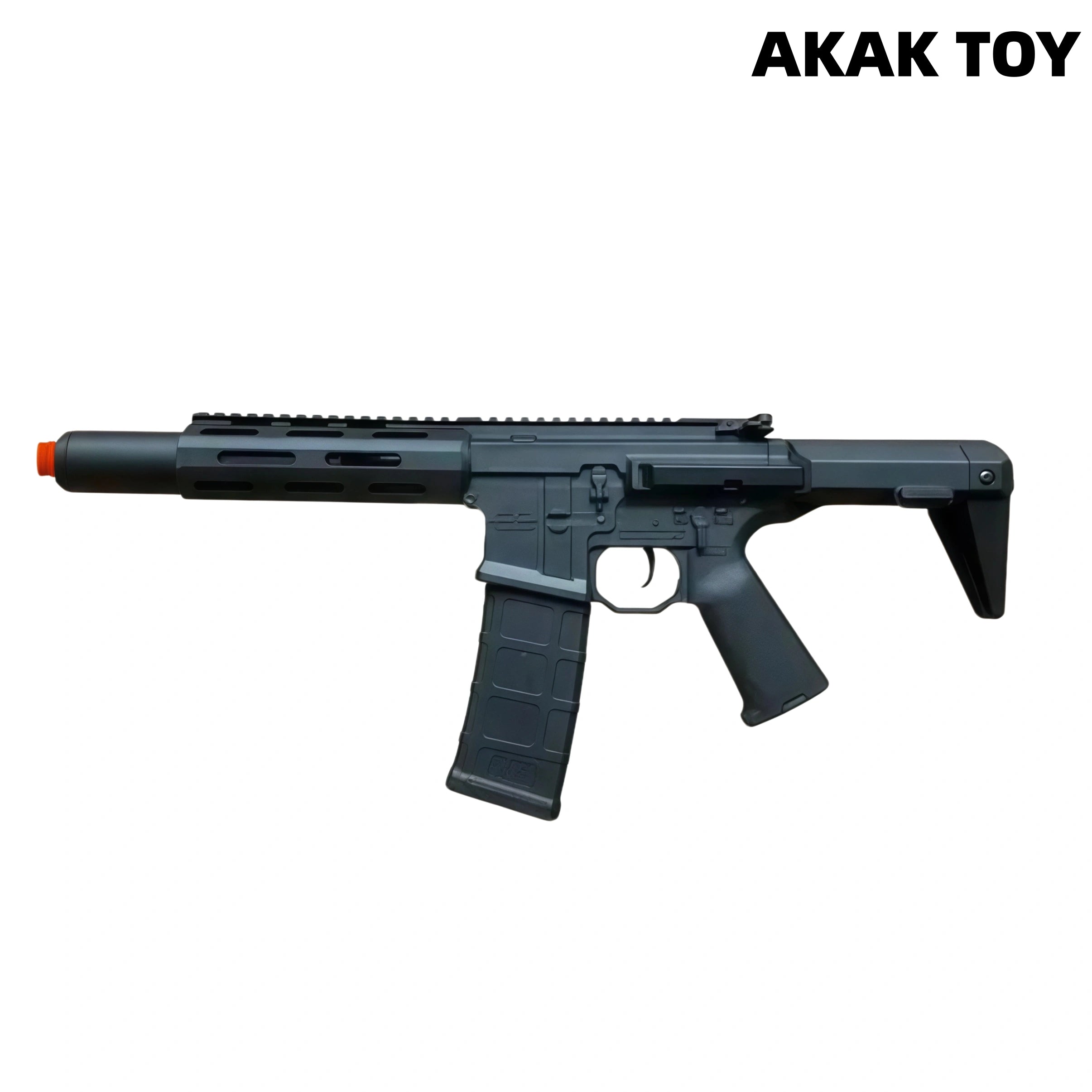 1. Metal components: Metal gears, metal ladder, metal inner and outer tubes, metal rotor plates, metal seesaw, metal dust cover, metal telescopic tailstock. 2. The outer tube body is made of high-strength imported DuPont nylon, and the inner gearbox is made of DuPont PA66 reinforced nylon. 3.Also equipped with a 480 dual-bearing motor and simulated recoil function. Features:1. Bottom-feed magazine, detachable accessories2. Linked chambering, pre-feeding3. Firing modes: Semi-automatic/Full-automatic4. Range: 20-25 meters5. Spring type: 1.2mm6. Firepower: 230-240 FPS7. Metal gear ratio: 18:18. Ammunition type: 7-8mm gel balls9. Material: Nylon + Metal10. Dimensions: 78*24 cm Packing List:1*AAC V2 Gel Blaster1*Magazine1*Goggles1*Water ammunition bottle1*7.4V lithium battery1*USB charging cable1*Gel balls (10,000 pieces)