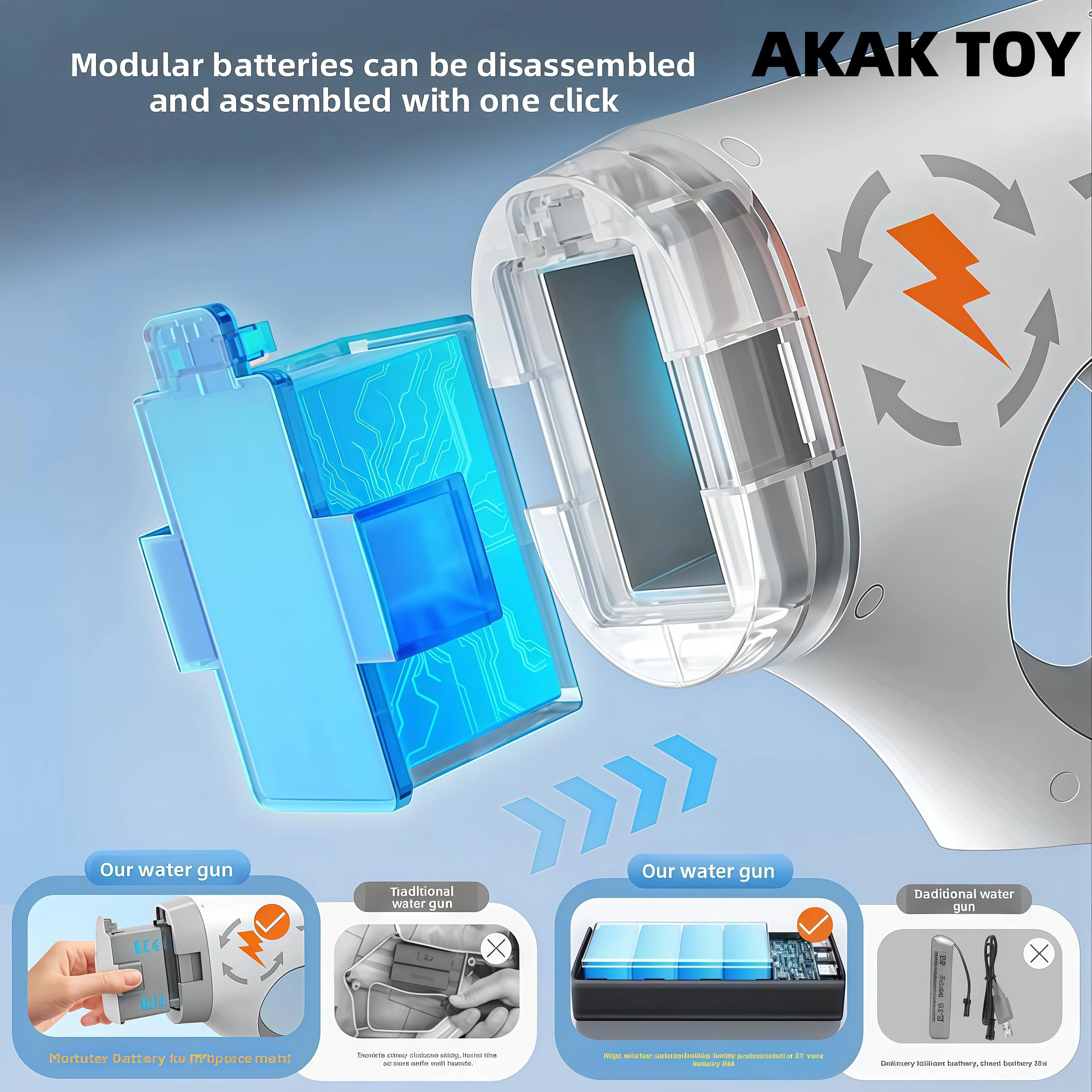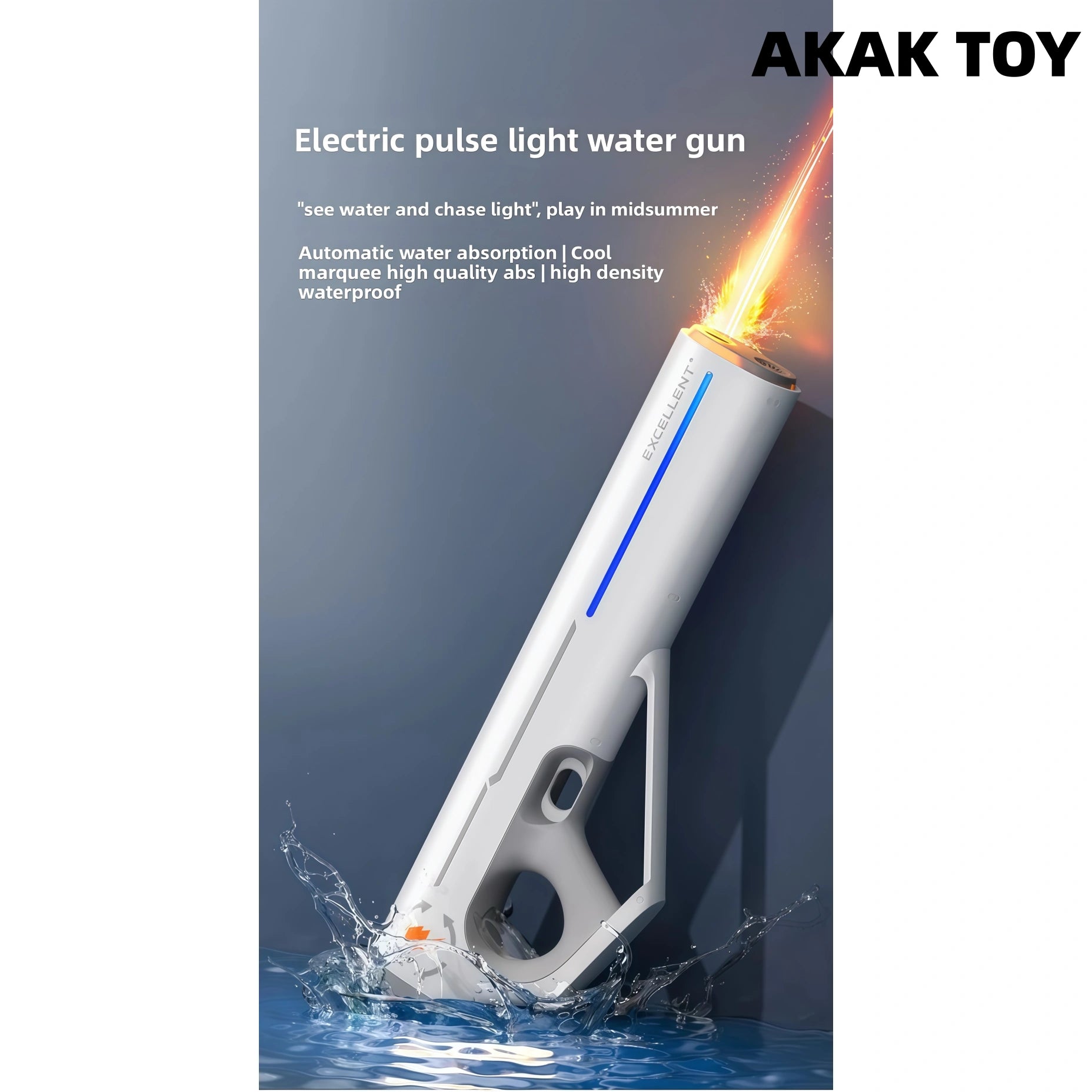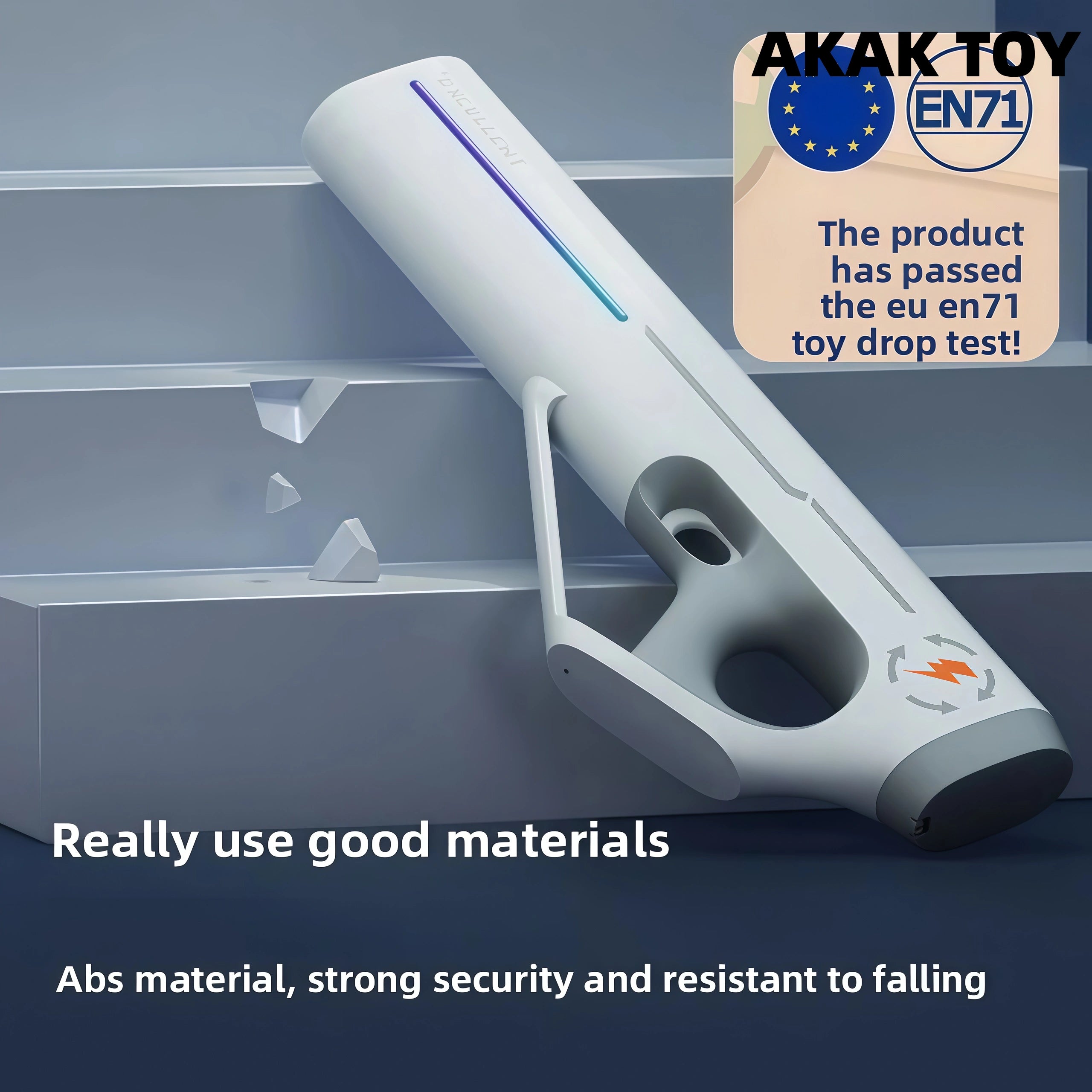 This new upgraded water gun integrates intelligent water absorption, ultra-long range, and cool lighting effects! The built-in automatic water absorption system and the marquee lighting effect make night battles cooler! High-density waterproof design + built-in filter, even if it is submerged in water for 4 hours, it can still operate stably, truly waterproof and durable. Made of high-quality ABS material, it is safe, firm and resistant to falling, suitable for various intense scenes. Strong power support for a battery life of up to 120 minutes, a single charging range of up to 15 meters, easily crushing ordinary water guns, and becoming your best choice for summer water battles! Features:1. Pulse electric dual mode fully automatic water absorption, full water absorption in 18 seconds2. Super strong recoil, electric rapid burst3. Ultra-long range, built-in filter4. Fully waterproof, iP7 waterproof level5. Muzzle light, you can fight happily at night6. Modular battery, one-button disassembly7. Material: ABS plastic, resistant to falling and collision.6. Range: 15 meters +7. Size: 50*17*5 cm Packing list:1*Automatic water gun1*Goggles1*Modular battery1*USB charging cable