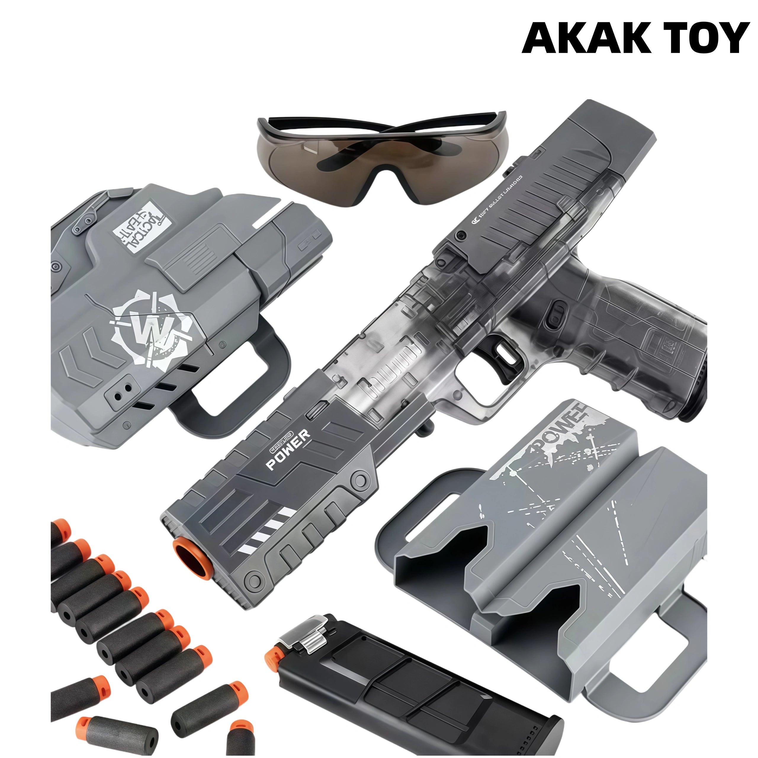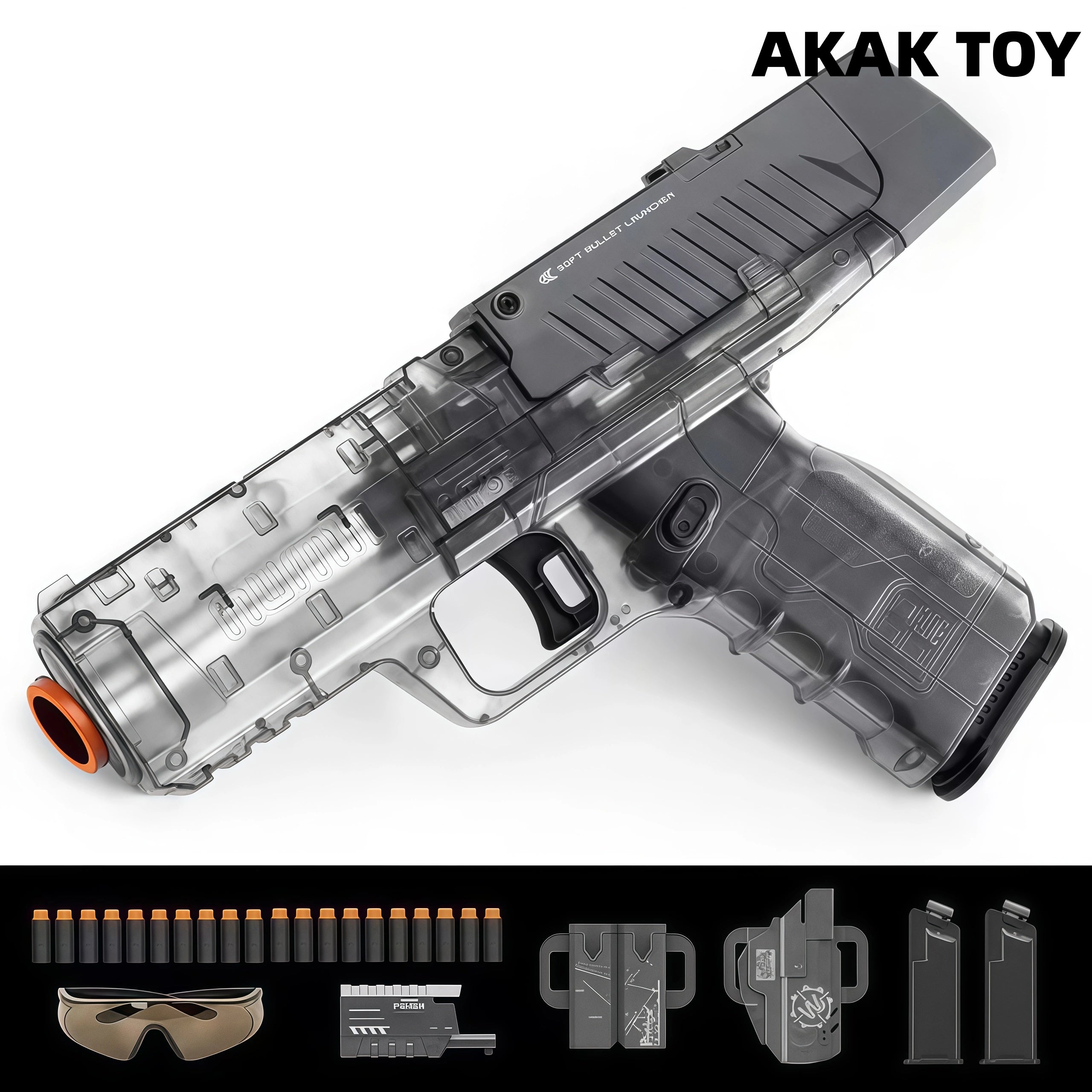 Empty Chamber Design: Pull the bolt to load the rifle for a realistic experience! When the ammunition is exhausted, the rifle automatically fires to an empty chamber, delivering a more immersive shooting experience. Powerful Firepower: Equipped with a front-extended silencer, it is easy to install and has a stylish appearance. Powerful shooting power with a range of up to 20 meters ensures accurate hits indoors or outdoors. Exclusive Configuration: Compatible with a dedicated holster and dual magazine pouch, the rifle is always ready for action. The dual magazine design ensures longer battery life and uninterrupted combat fun. Premium Materials: Crafted from high-quality materials for a smooth feel and upgraded appearance, it is durable and safe, providing a superior control experience. Features:1. Empty chamber, dual magazines2. Material: ABS plastic3. Shooting mode: Manual4. Range: 20 meters5. Fire rate: Up to 130 FPS6. Dimensions: 32 * 5 * 22 cm Packing List:1 * LP55 dart gun1 * safety goggles2 * magazines1 * magazine holster1 * barrel extension1 * dedicated clip20 * soft ammunition