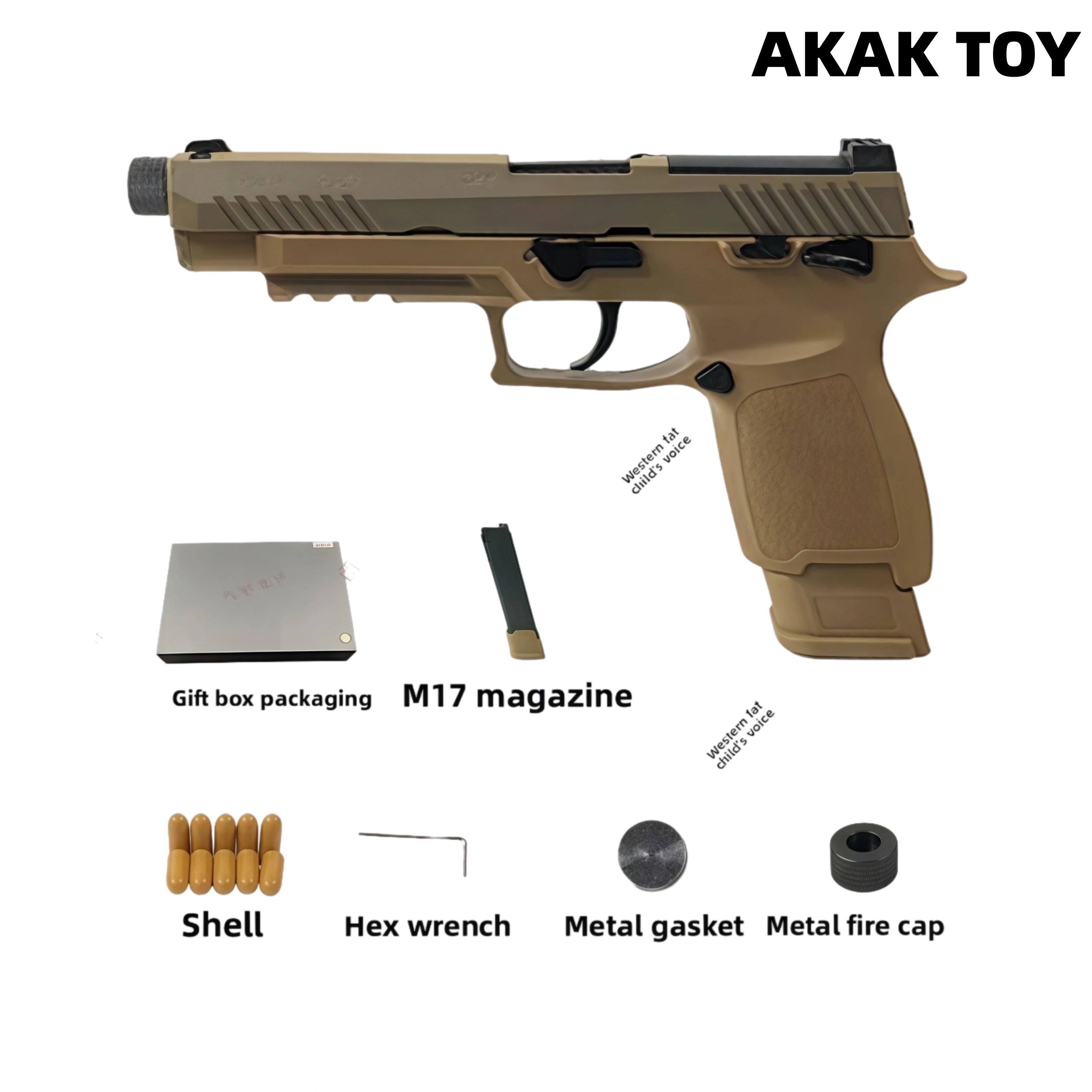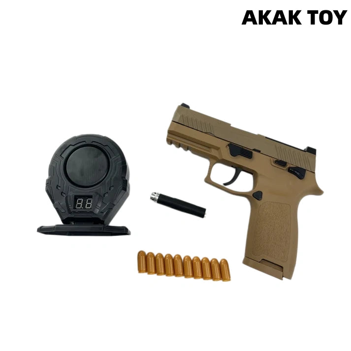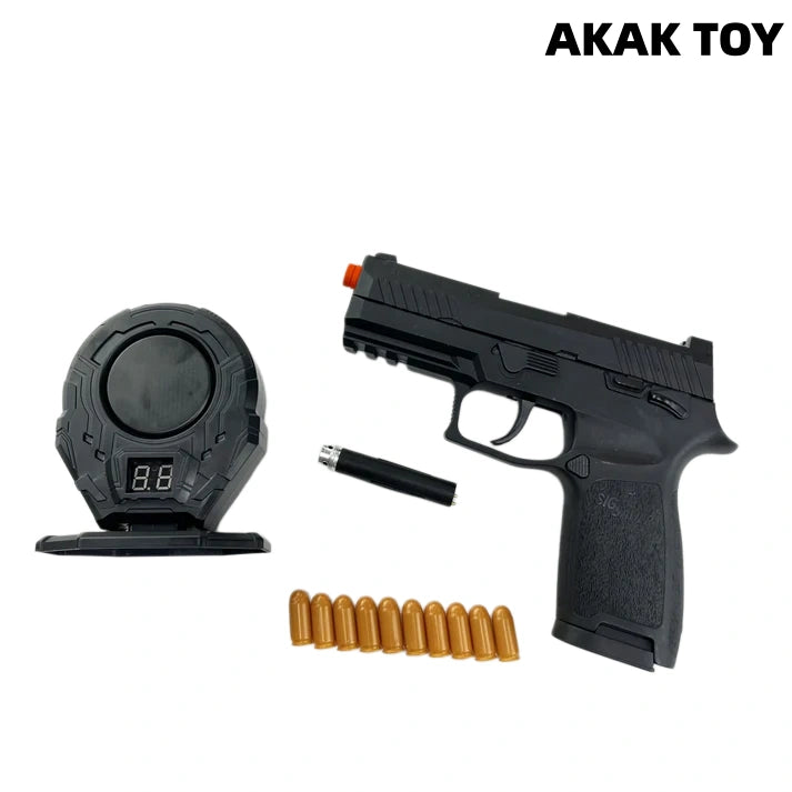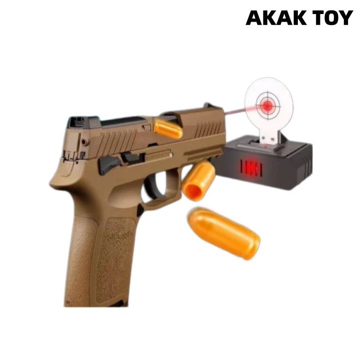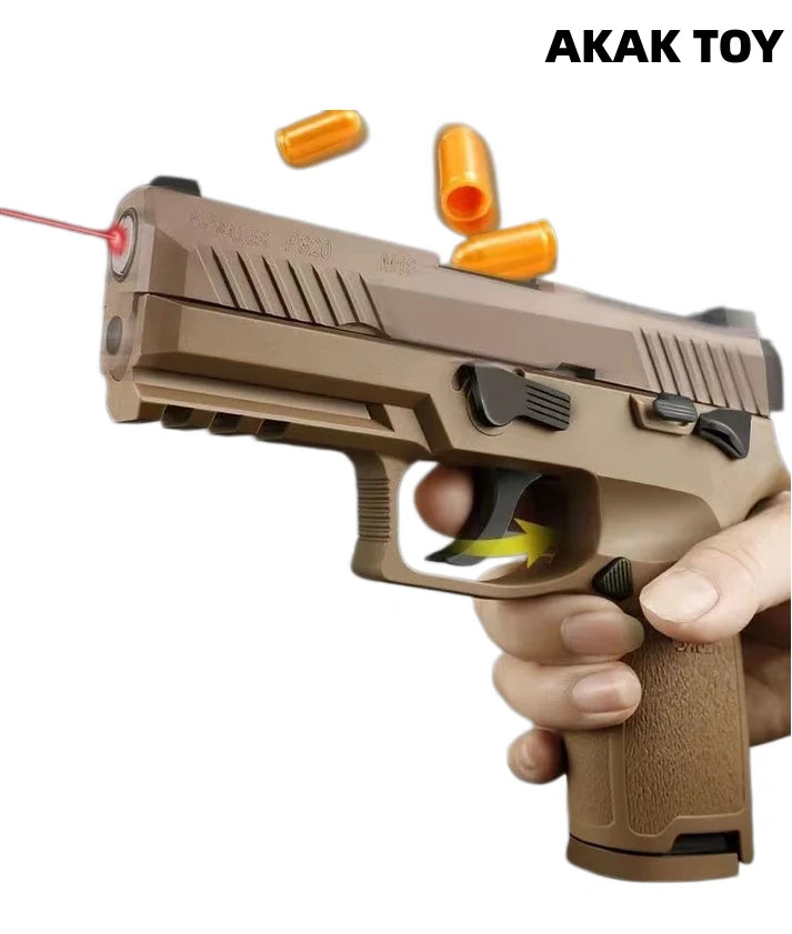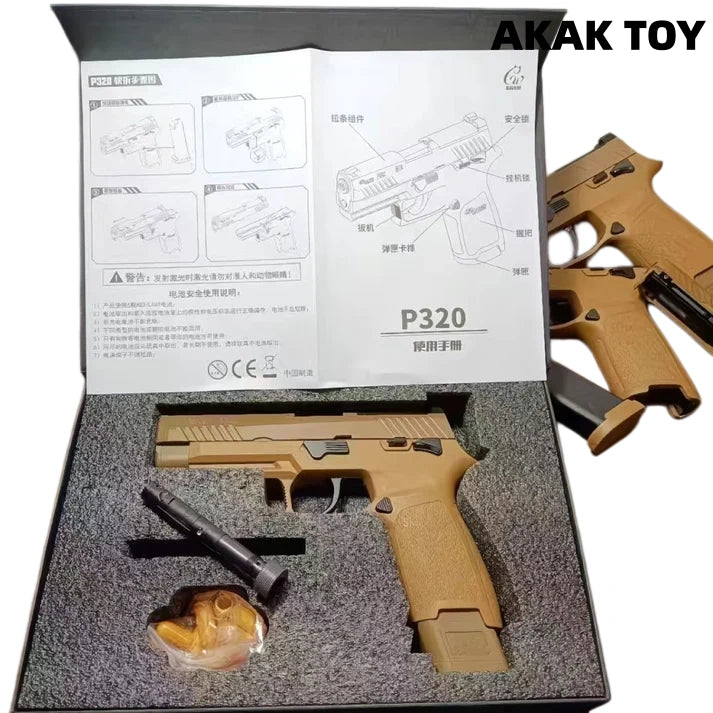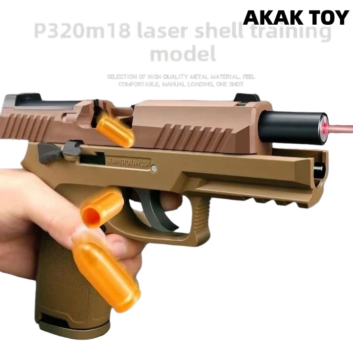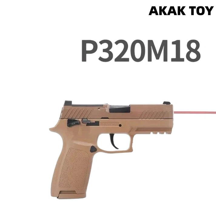 P320 M17 M18 laser toy gun metal barrel, trigger and magazine release device, full of hand feeling. Equipped with shell ejection function and end-shot hold-open mechanism, it restores the operating details of the real gun. Smooth shooting, immersive experience, enjoy tactical fun for hours! Features:1. The p320 m17 m18 laser tag toy gun is with ejecting shells. It has the last round bolt hold open function after firing the last bullet.2. Direct insert the laser device to play.3.With bottom 20mm rail for mounting laser and torch.4. Comes with metal barrel, metal trigger and metal mag release.5. Removable accessories6. Material: nylon+metal7. Shooting mode: manual8. Laser maximum range: 200 meters9. Size: 20*14cm Packing list:1* p320m18¡ꡧm17¡ê? laser gun1* magazine10* plastic shells1* spacer P320 magazines here¡êohttps://akagtoy.com/products/bluestar-320m18-m17-universal-new-anti-blow-spring-double-row-magazine The magazines for the M17 and M18 are interchangeable.