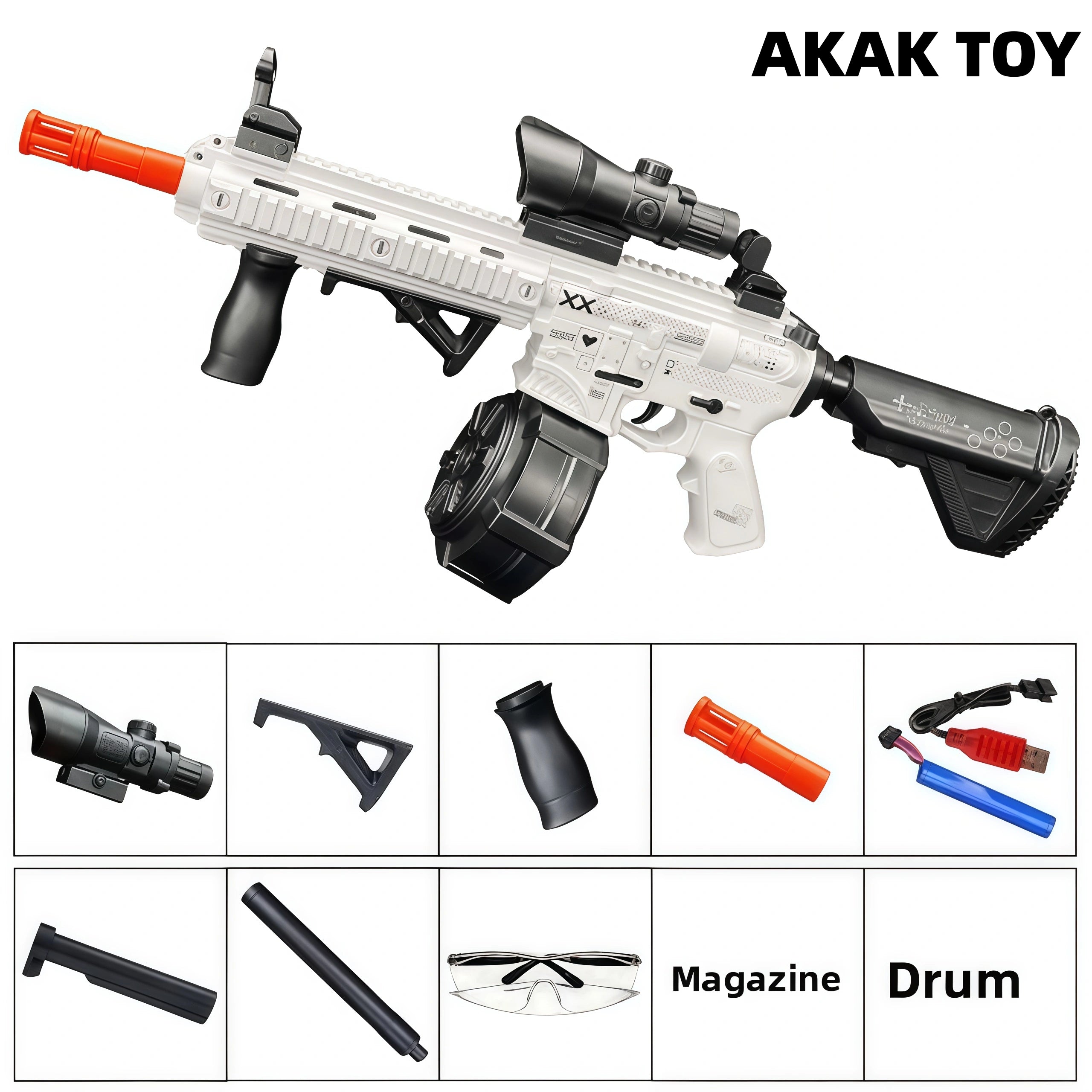 This is not only a toy gun, but also a personality attitude! The classic M416 gel blaster type is combined with trendy prints and paint to create an unprecedented visual impact. Cool appearance, full of tactical style, designed for you who like fighting and want to look handsome! Features:1. Shooting mode: electric/manual2. High accuracy3. Shooting range: 20-25 meters4. FPS: 180-2005. Ammunition type: gel ball6. Size: 88cm7. Rechargeable battery Packing list:1*M416 gel gun1*shoulder mount1*magazine1*drum magazine1*silencer1*muzzle compensation1*scope1*flashlight1*handle1*magnet1*gel ball (10,000 pcs)1*USB charging cable1*7.4V rechargeable battery