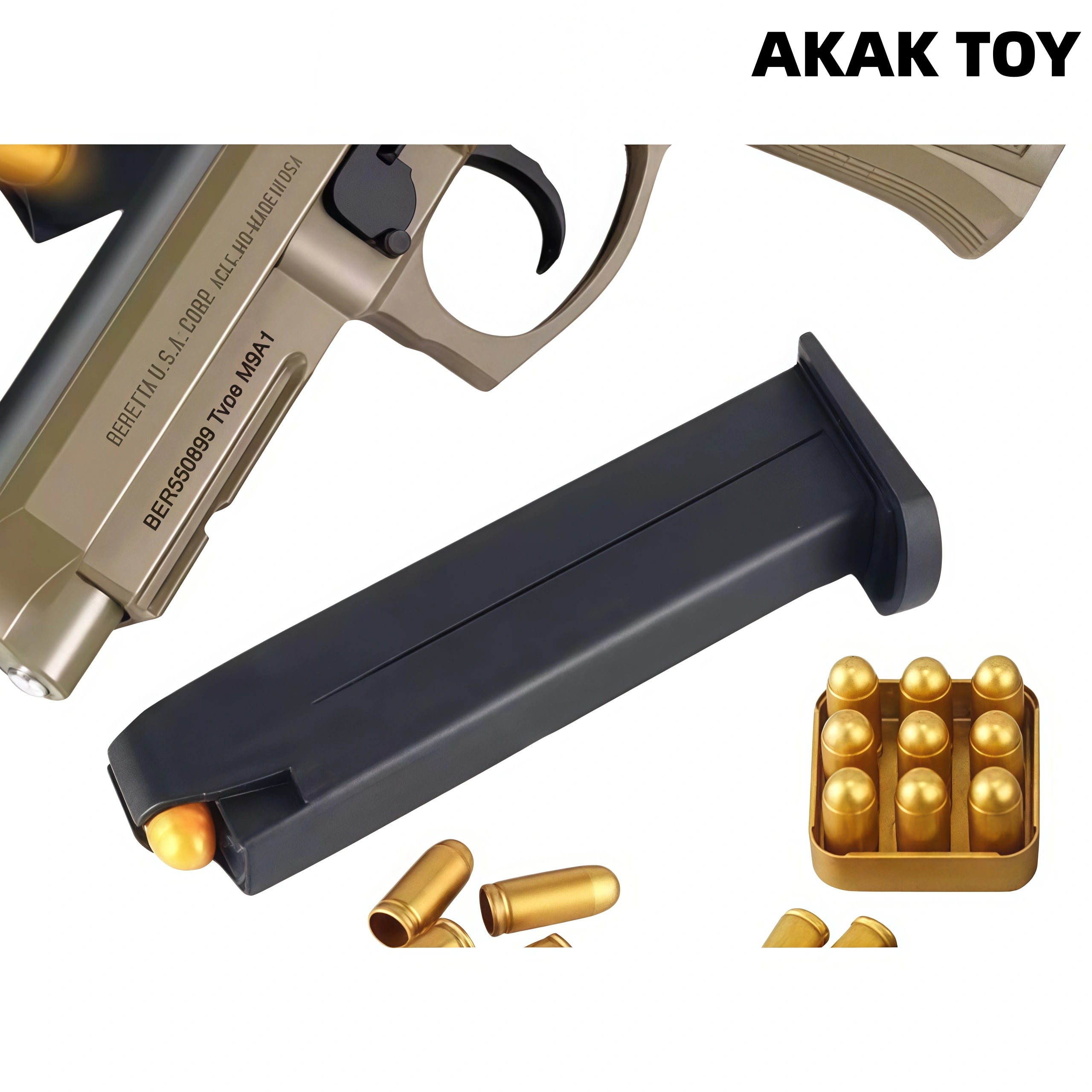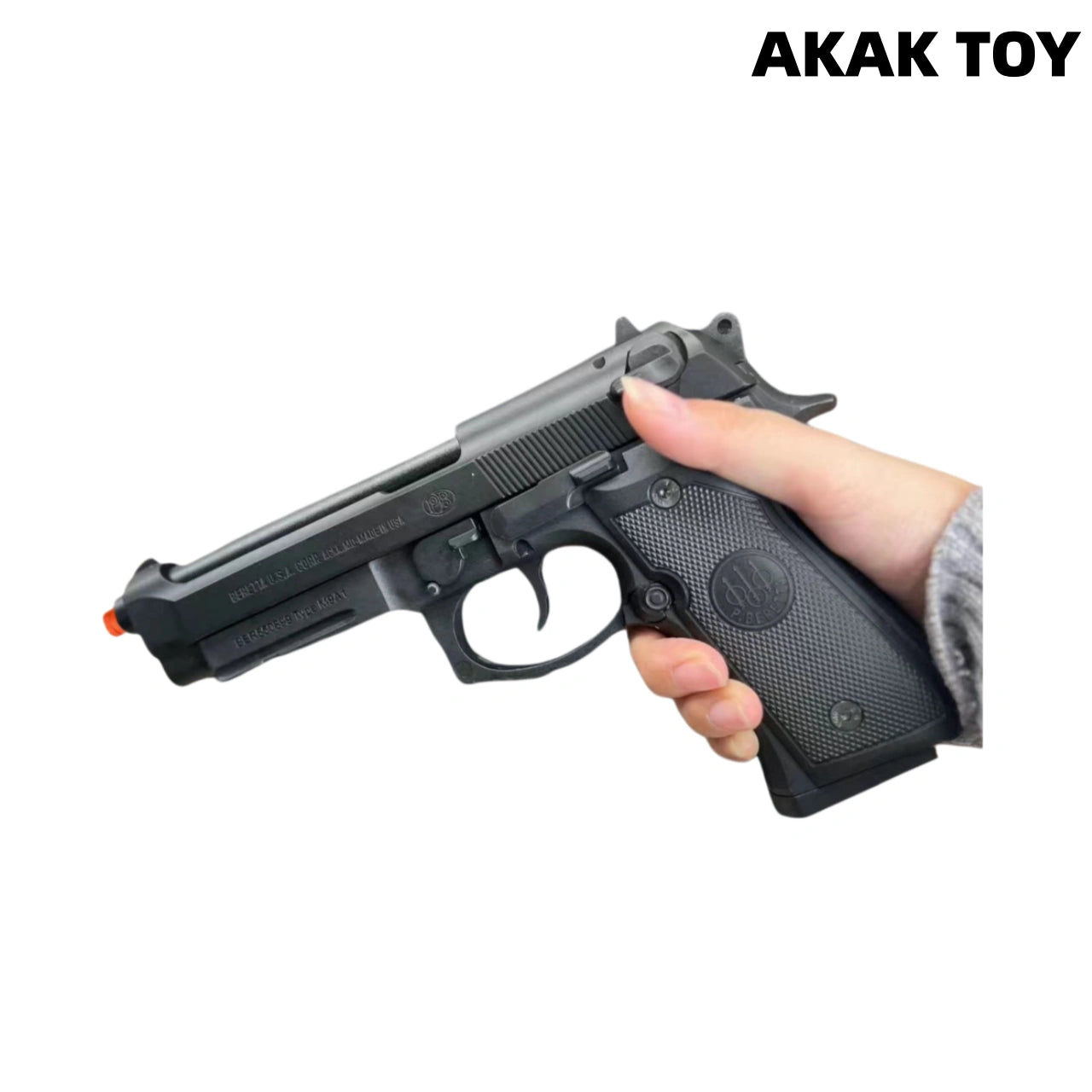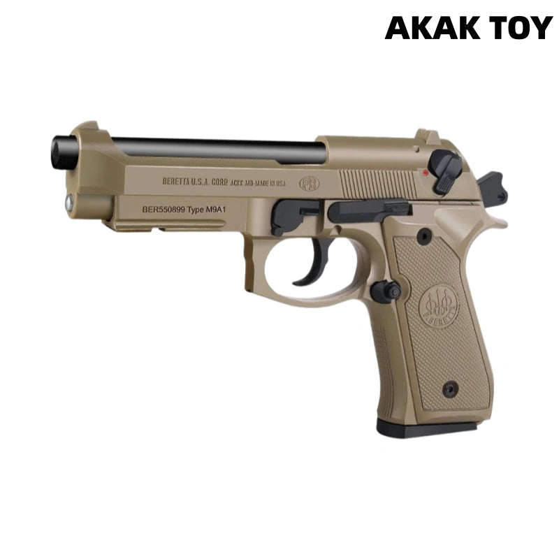 This M92 laser pistol has a real blowback recoil structure and automatic shell ejection system. Pull the trigger, the slide will recoil, the shell will be ejected synchronously, and the laser beam will be fired at the same time, bringing a shocking immersive experience.Supports continuous firing mode without loading, shooting without stopping. After the last shot is fired, the slide will automatically lock and enter the hang-up state, truly restoring the real gun mechanism. You can also take out the magazine to achieve unlimited shooting gameplay, without locking the machine and firing continuously. Features:1. Lower magazine, continuous ejection, empty chamber3. Material: metal + nylon, size: 24 cm4. The laser target can sense the laser beam of the pistol and provide shooting feedback, which can add a certain amount of fun5. It is not easy to shoot with light, its recoil structure will produce a slight recoil when shooting, causing the laser to deflect, so practice is required Packing list:1*M1911 pistol1*magazine1*ejection storage compartment10*shells