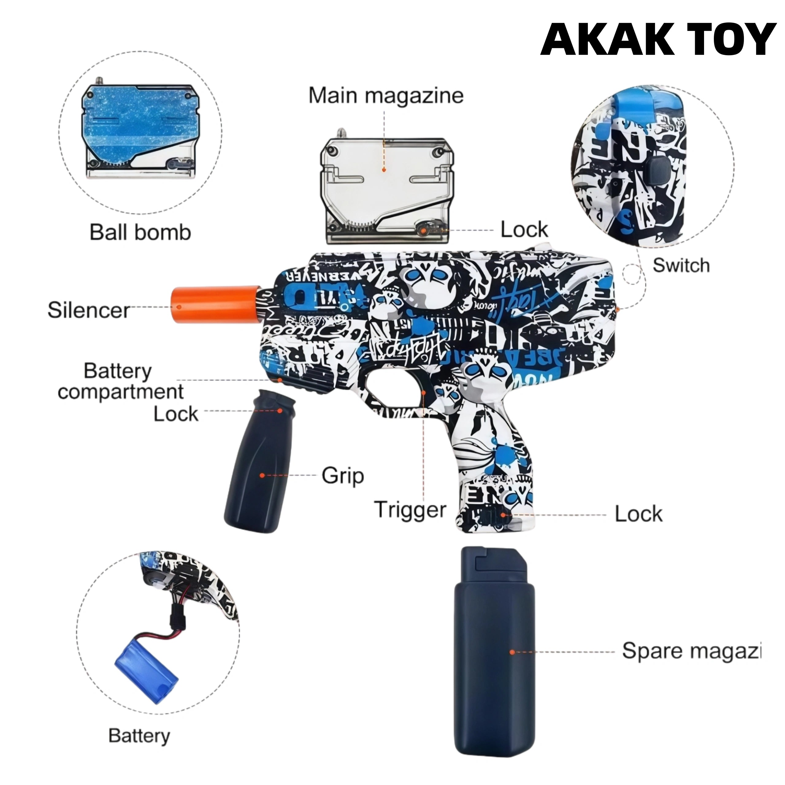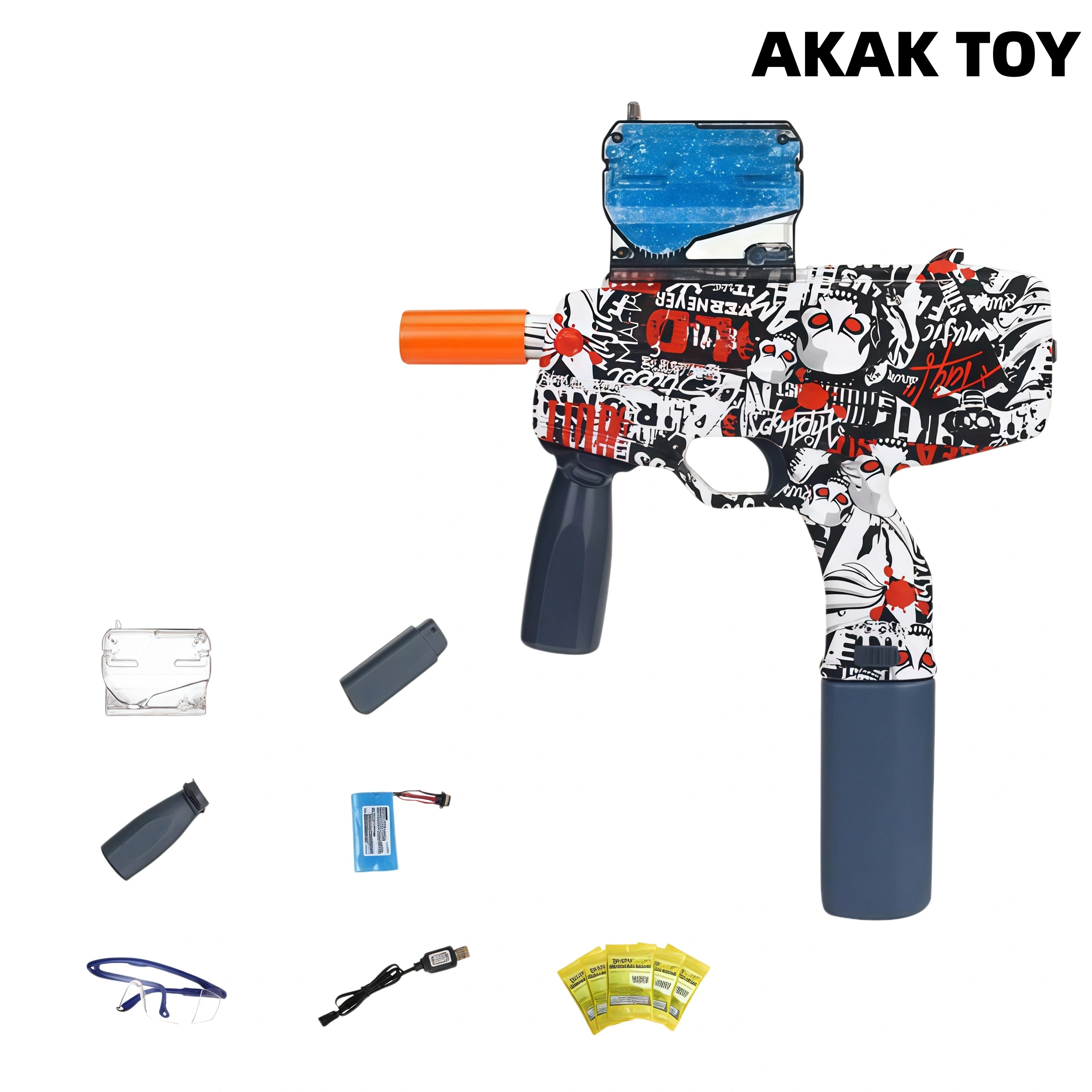 This MP9 gel blaster adopts a double magazine design, carrying more than twice as many water beads as other gel ball launchers, providing more lasting fun in battle. The newly upgraded motor has an automatic firing rate of 6 rounds/second, and the straight-line firing distance can reach 20m. Every pull of the trigger provides a fast and accurate shooting experience. The water beads are made of environmentally friendly biodegradable materials, which expand when soaked in water, break when impacted, and disappear and degrade after the water evaporates, leaving no traces, stains, pollution, or harm. Features:1. Improved stability and performance (1.5 times stronger than other models)2. Rechargeable design and plug-in battery, eliminating the trouble of wiring, one-click installation3. Material: ABS plastic4. Shooting mode: fully automatic5. Ammunition type: 7-8mm gel ball Packing list:1*MP-9 gel gun1*magazine1*front grip1*flash cap1*goggles1*rechargeable battery1*USB charging cable1*gel ball (10,000 pcs)