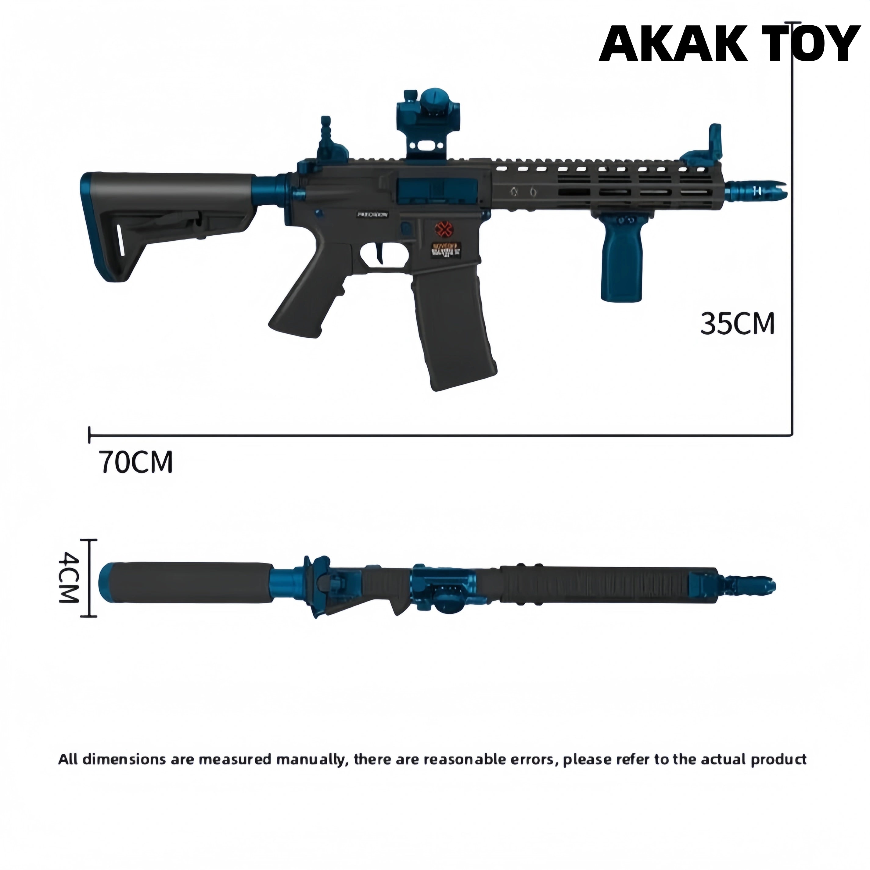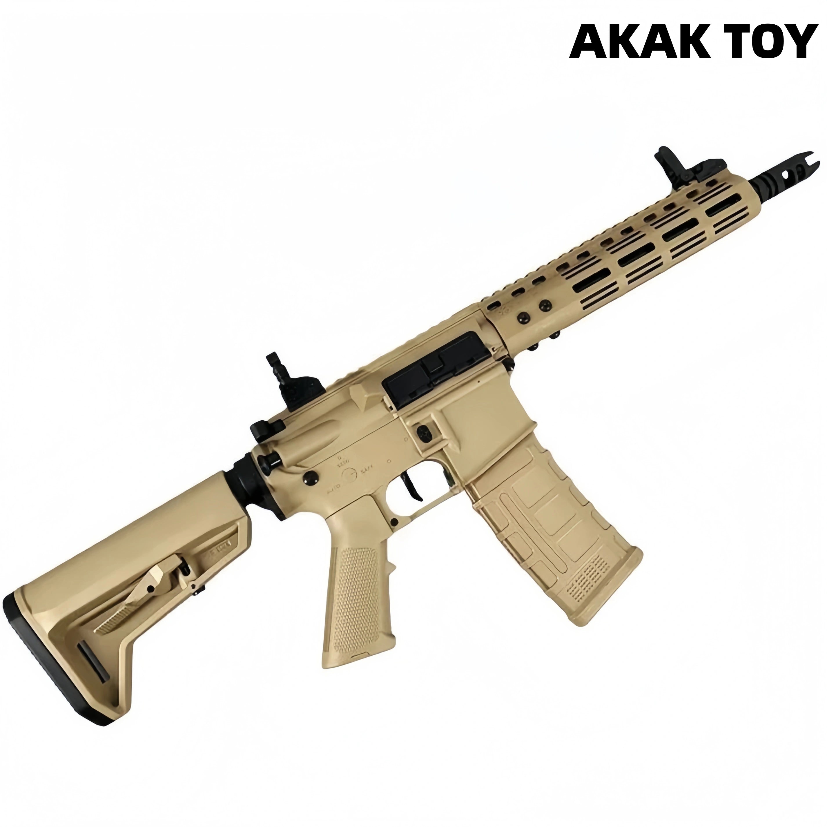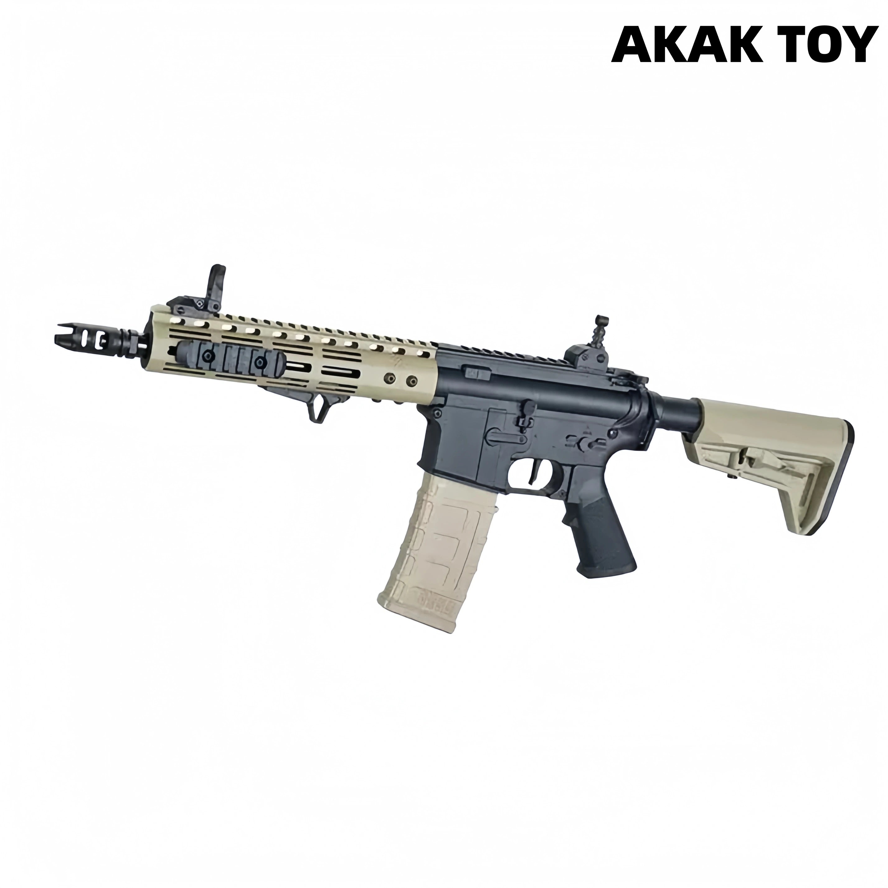 This Noveske N4-style electric gel ball blaster is made with metal gears, a metal ladder, inner and outer metal tubes, and high-strength fiberglass, making it durable and providing a realistic feel. It features realistic recoil and supports both single-shot and burst-fire modes, delivering an immersive gaming experience. The telescopic stock allows for flexible adjustment and is compatible with Jingji PMAG magazines for easier reloading. The dust cover opens with a pull of the bolt handle, creating detailed designs that emulate the real thing. The black-brown model features additional side rails and a foregrip for enhanced tactical flexibility and control stability. Features:1. Removable accessories, lower feed magazine2. Pre-feed and recoil, retractable stock3. Material: Nylon+Metal4. Shooting Mode: Electric single-shot/burst5. Fire Rate: Up to 250 FPS6. Range: 20-25 meters7. Ammunition Type: 7-8mm gel balls8. Dimensions: 70 * 4 * 35 cm Packing List:1*N4 gel gun1*Magazine1*Muzzle1*Stock2*Iron sights1*Goggles1*11.1v Rechargeable battery1*USB charging cable1 * Gel balls (10,000 pieces)