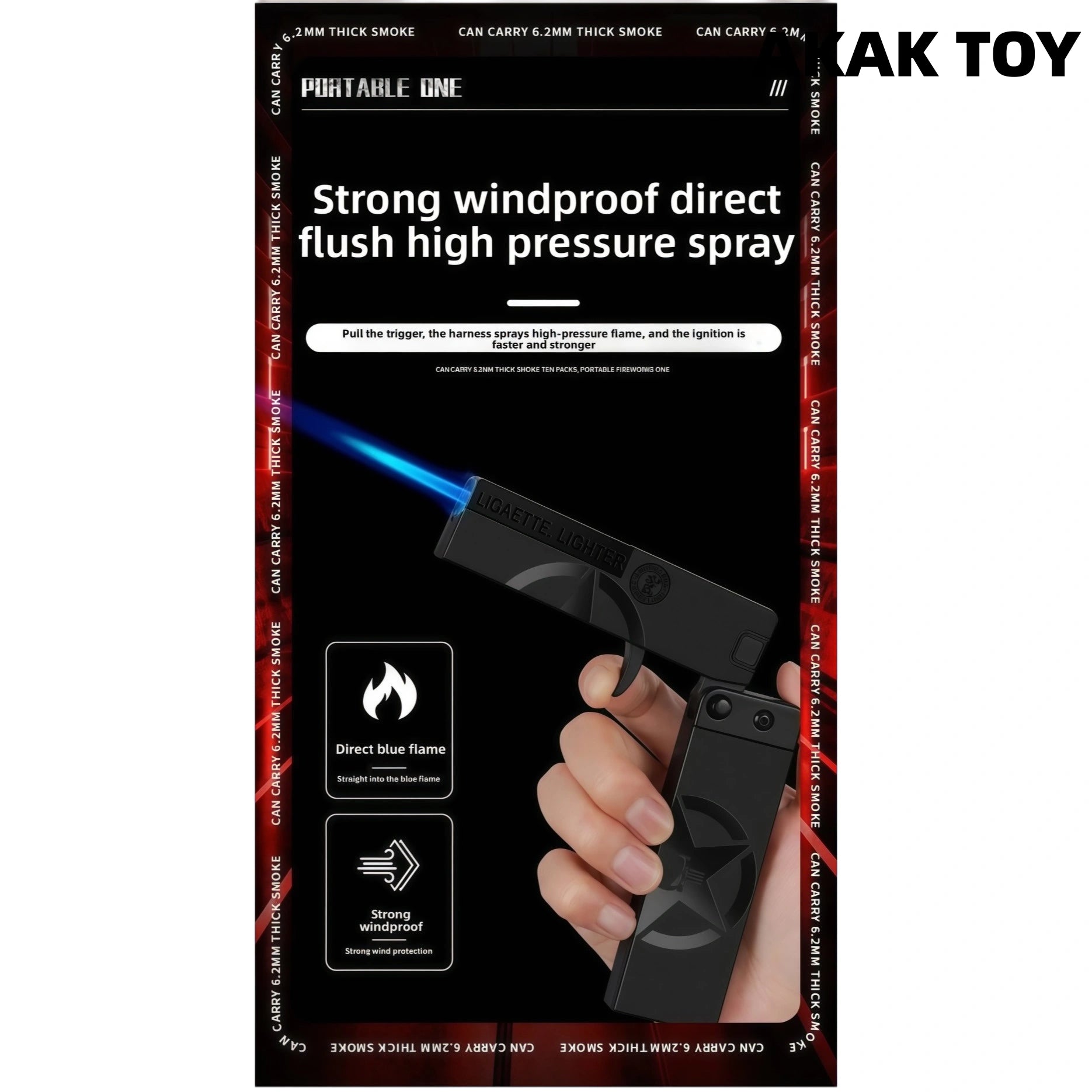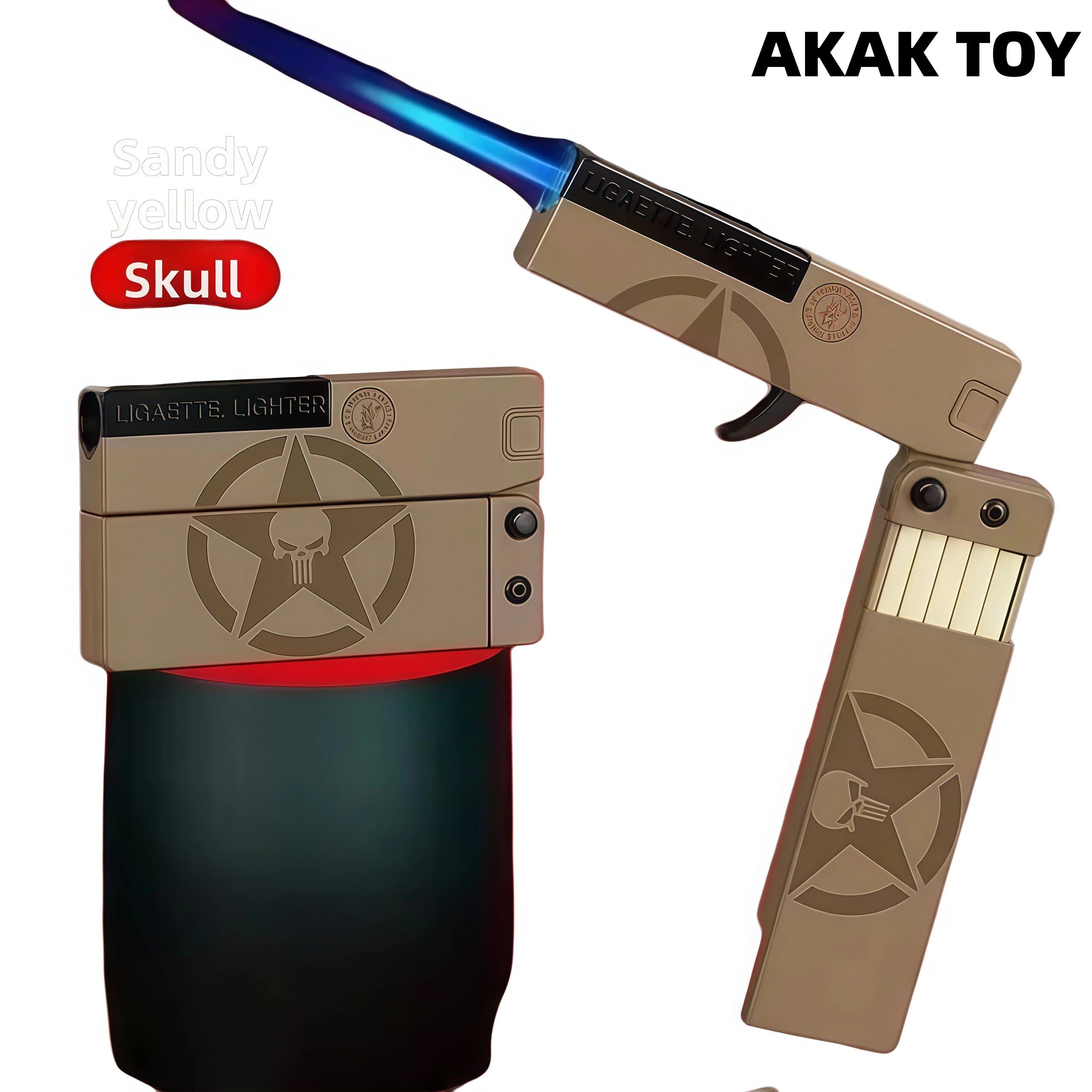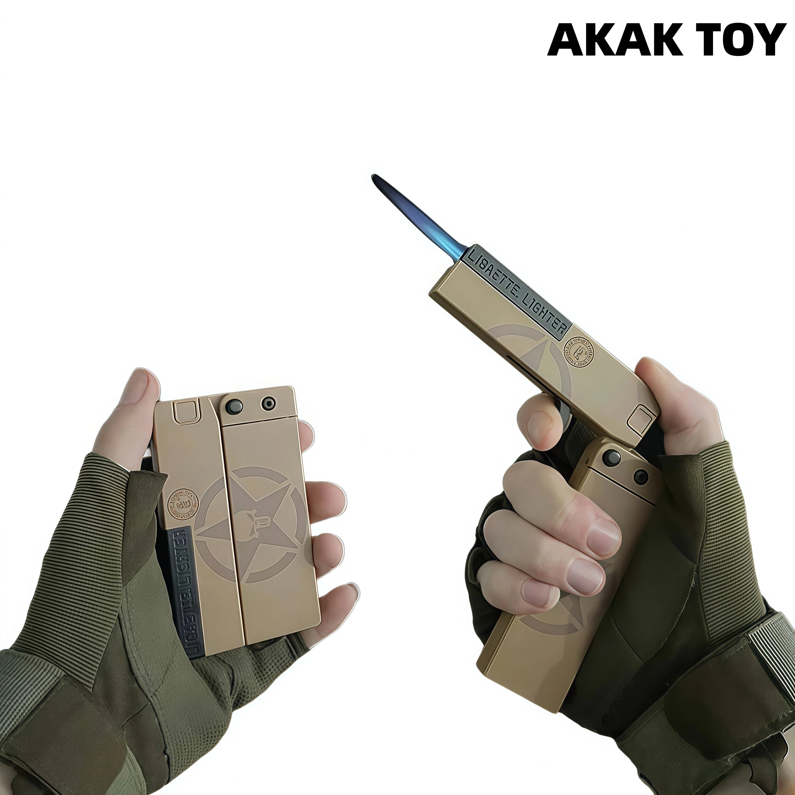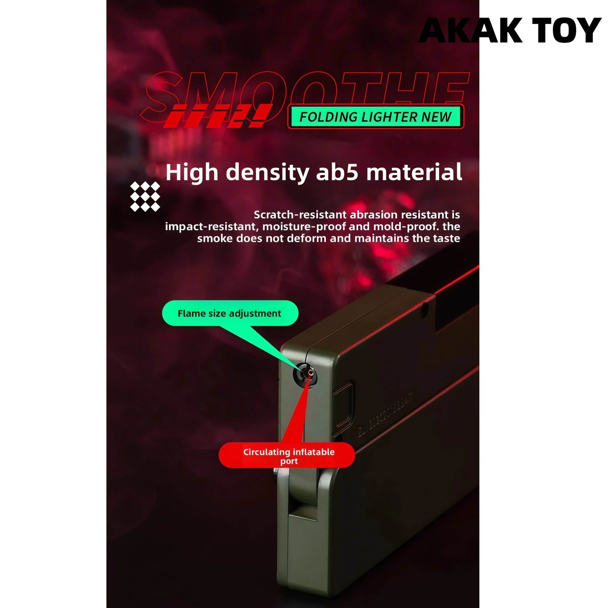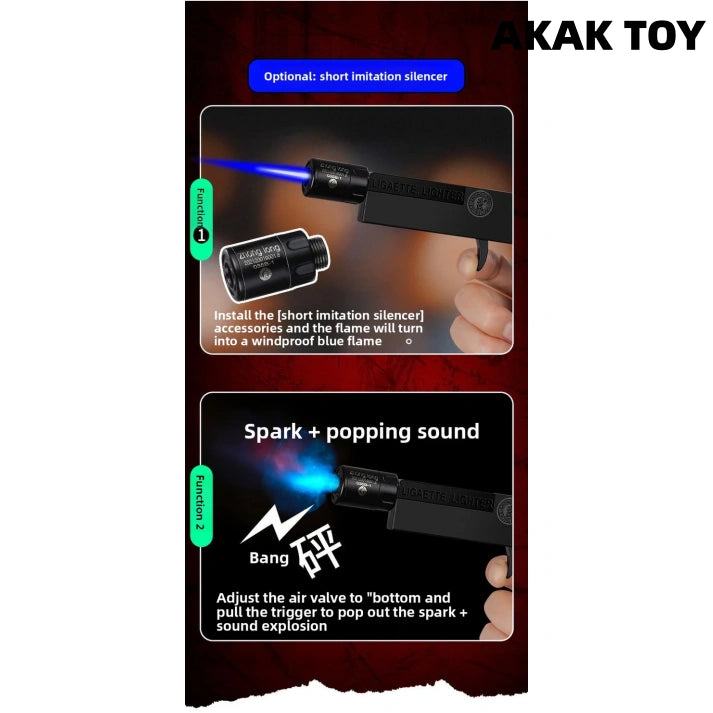 This lighter combines a cigarette case and a lighter in one. The hidden trigger pops up with one press and automatically expands. The electronic ignition is fast and efficient. High-pressure direct flame, windproof and anti-interference, blue flame when installed with a fire changer, and sparks + sonic boom special effects when the air valve is adjusted to the "-" bottom, which is cool! High-density ABS material is durable and drop-resistant. The body can be folded and stored, slim and portable, can hold 10 thin cigarettes, and supports replacement of accessories.