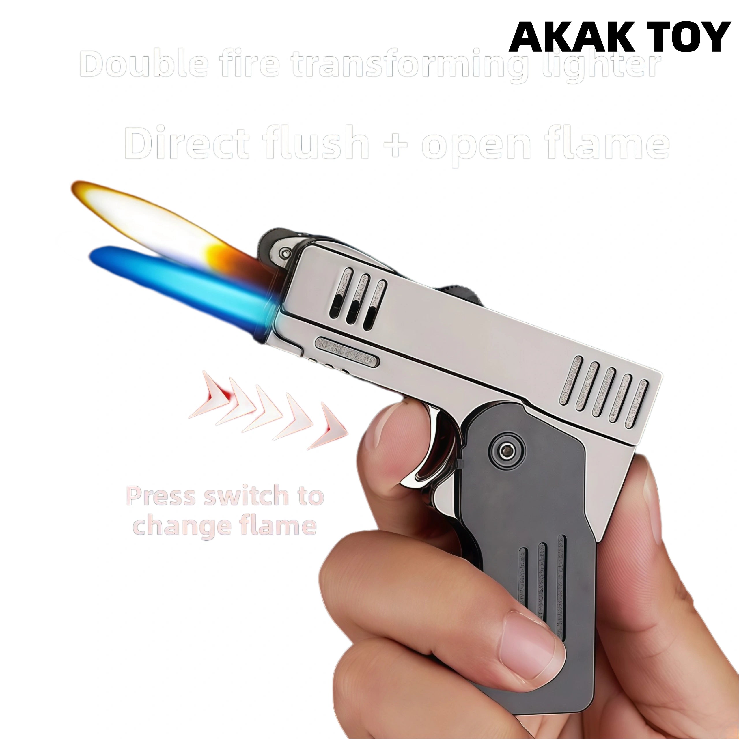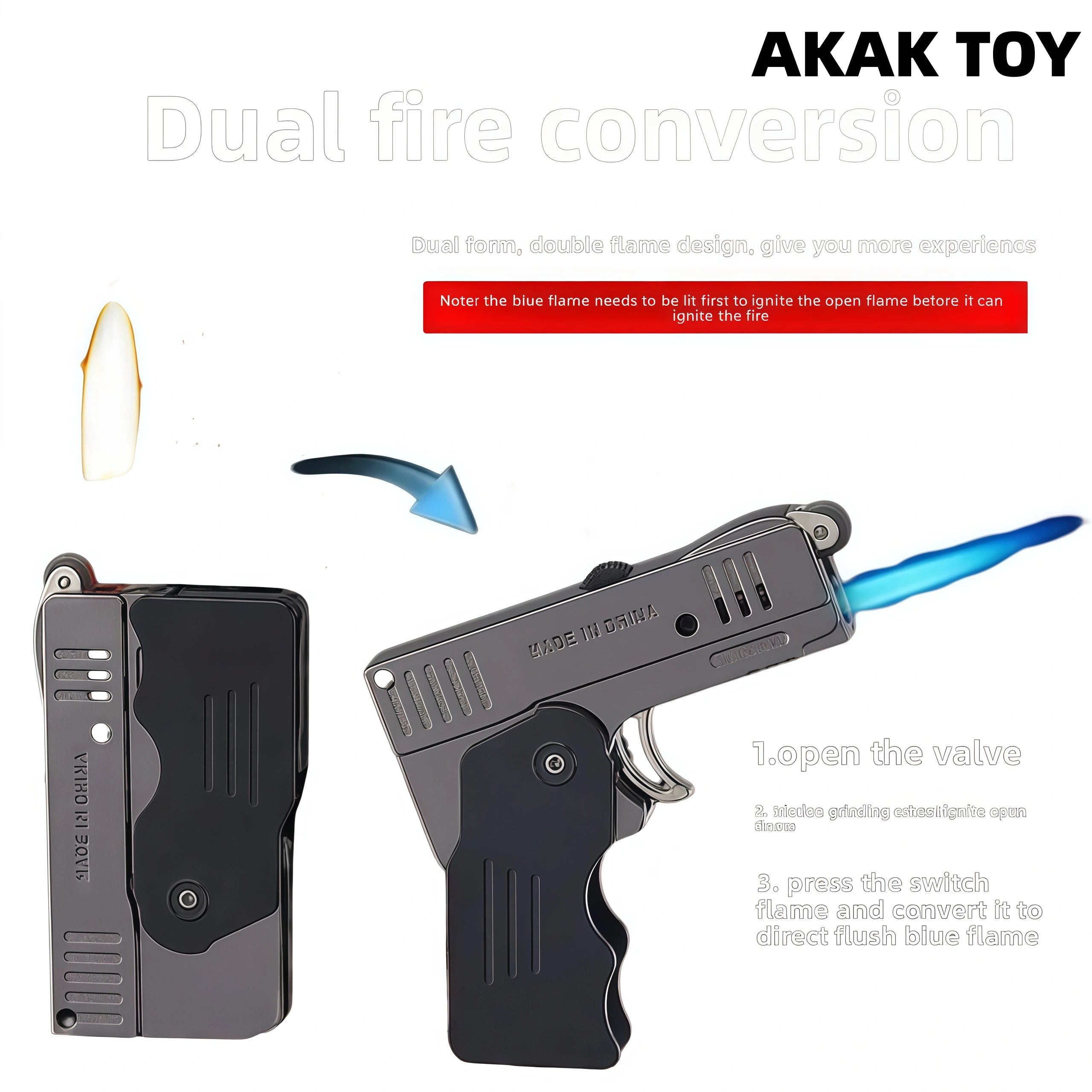 Dual fire conversion: dual form, dual flame design, giving you more experience. Open the valve, rub the grinding wheel to ignite the open flame, press the pistol to open the flame to convert the flame to a straight blue flame.