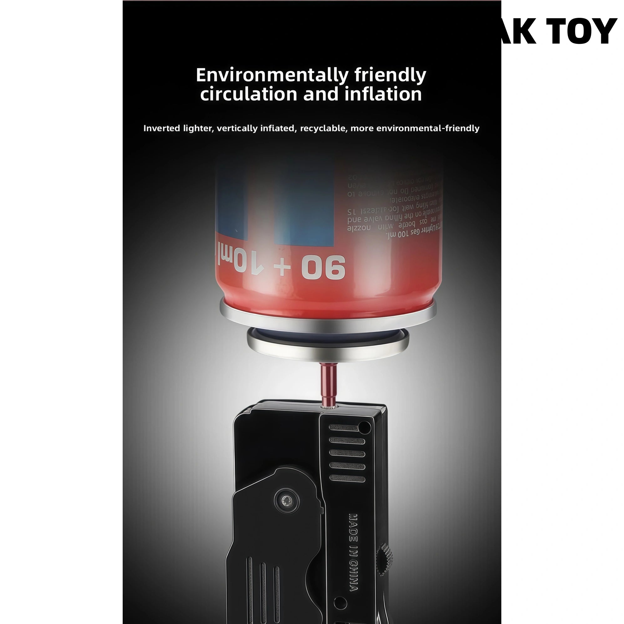 Environmentally friendly cycle gas filling: inverted lighter, vertical gas filling, recyclable, more environmentally friendly.