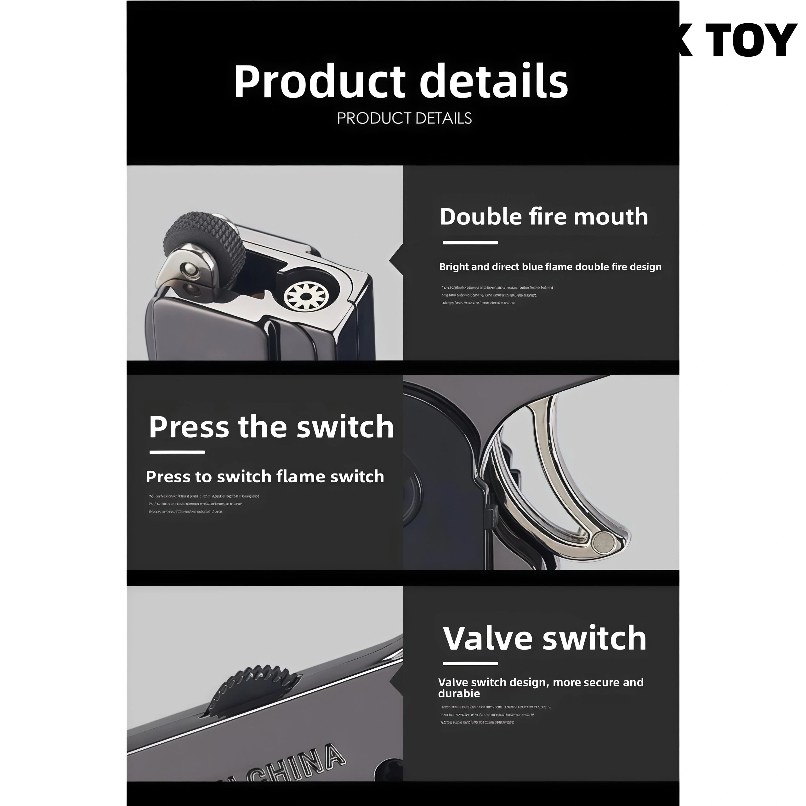Straight windproof blue flame: After igniting the open flame, break off the deformed pistol handle, and press the pistol switch to change the flame from open flame to straight blue flame.