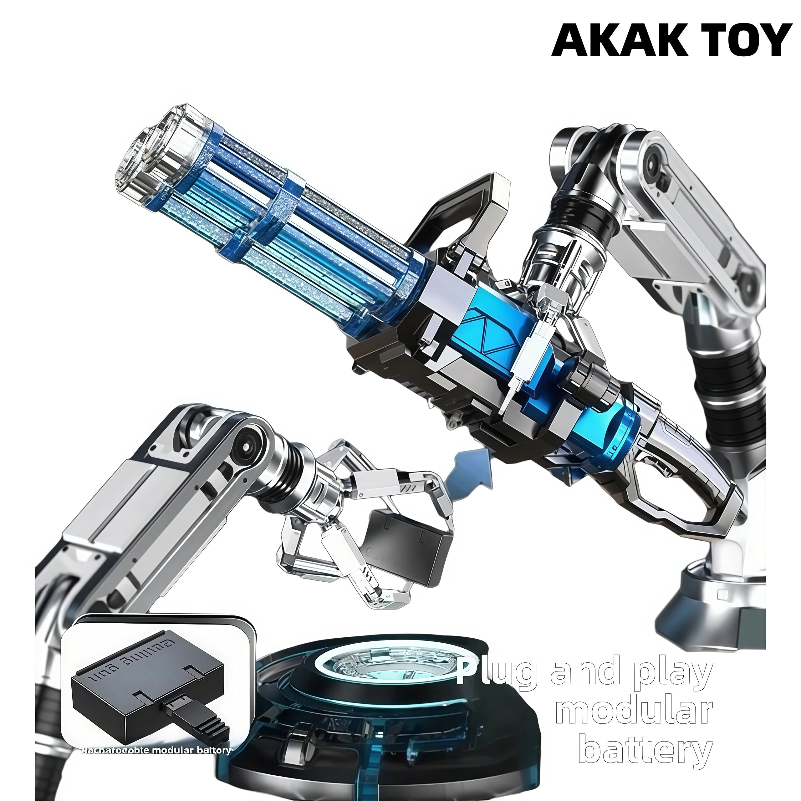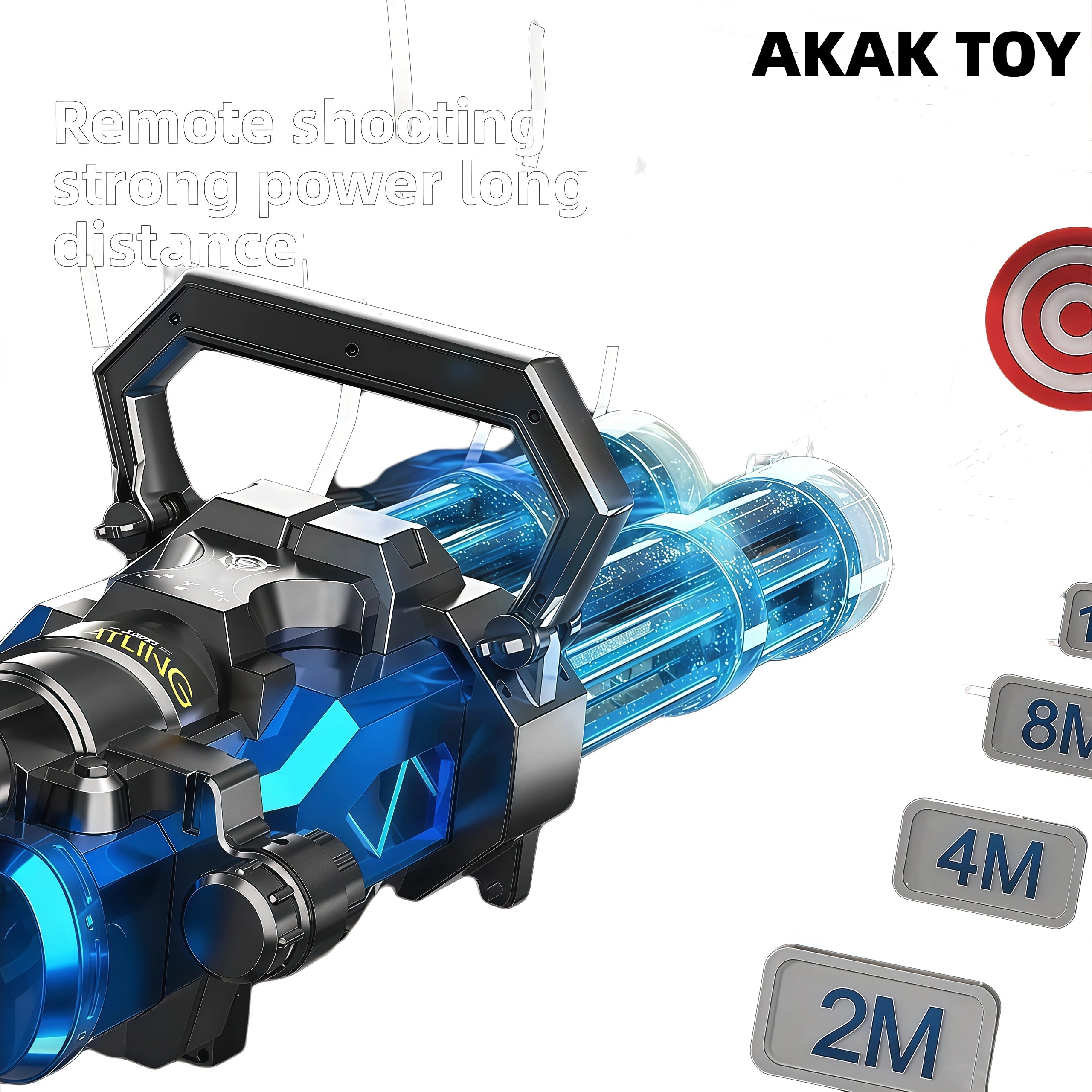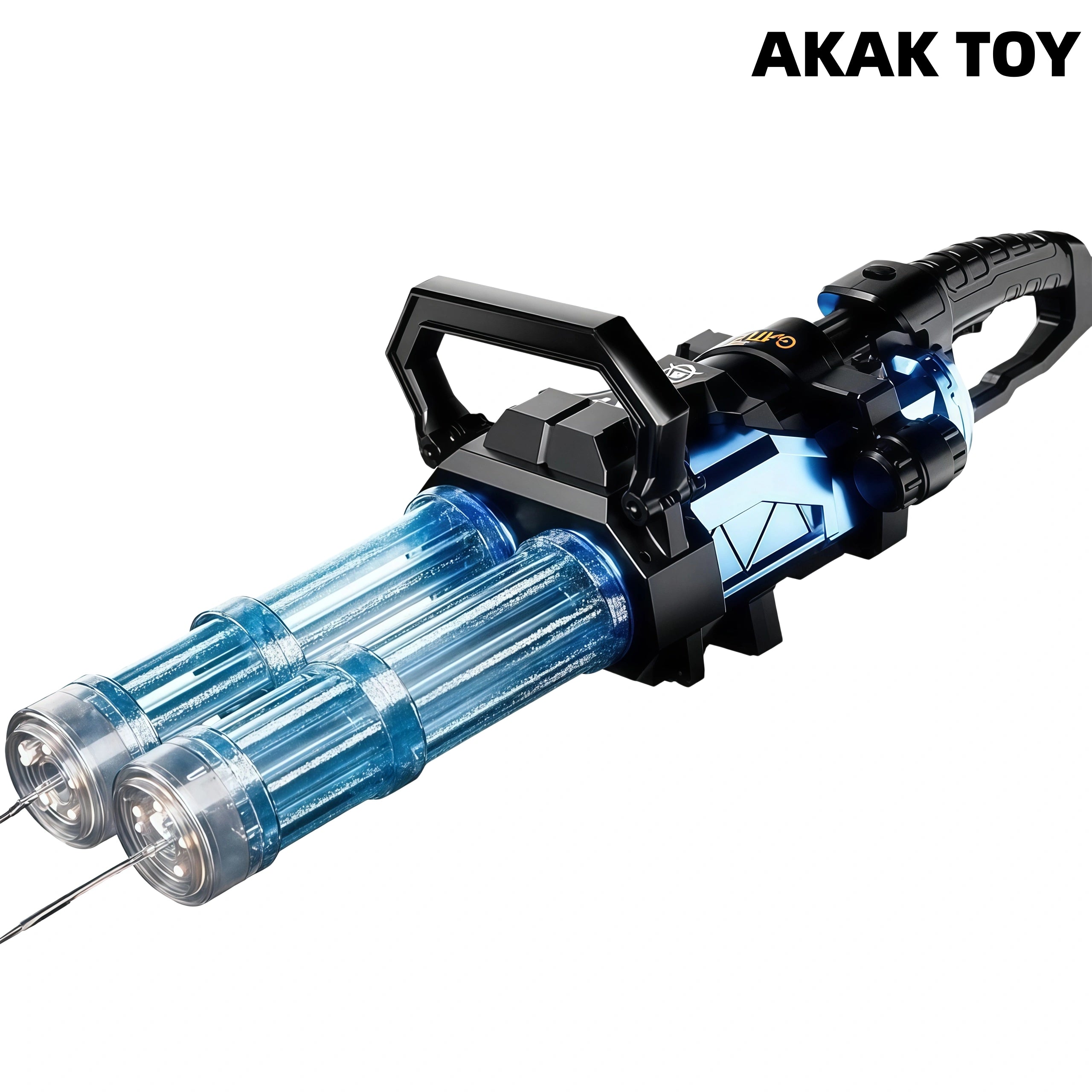 The new double-tube Gatling electric water gun, with automatic rotating spray and cool lighting effects, is full of fighting feeling. Built-in large-capacity water tank + USB rechargeable battery, strong endurance and continuous combat. Just one click, burst out, summer water battle weapon, enjoy non-stop fun! Features:1. Long-lasting endurance/Water flows through, induction lighting, rechargeable lithium battery, super long battery life.2. Large-capacity backpack3. Flashing gun barrel4. Sealed and leak-proof5. Material: ABS plastic6. Shooting mode: electric7. Range:15 meters+8. Size: 80*24*19CM Packing list:1*Gatling water gun1*Backpack water pipe1*Modular battery1*Charging cable1*Strap1*2.25L water storage backpack