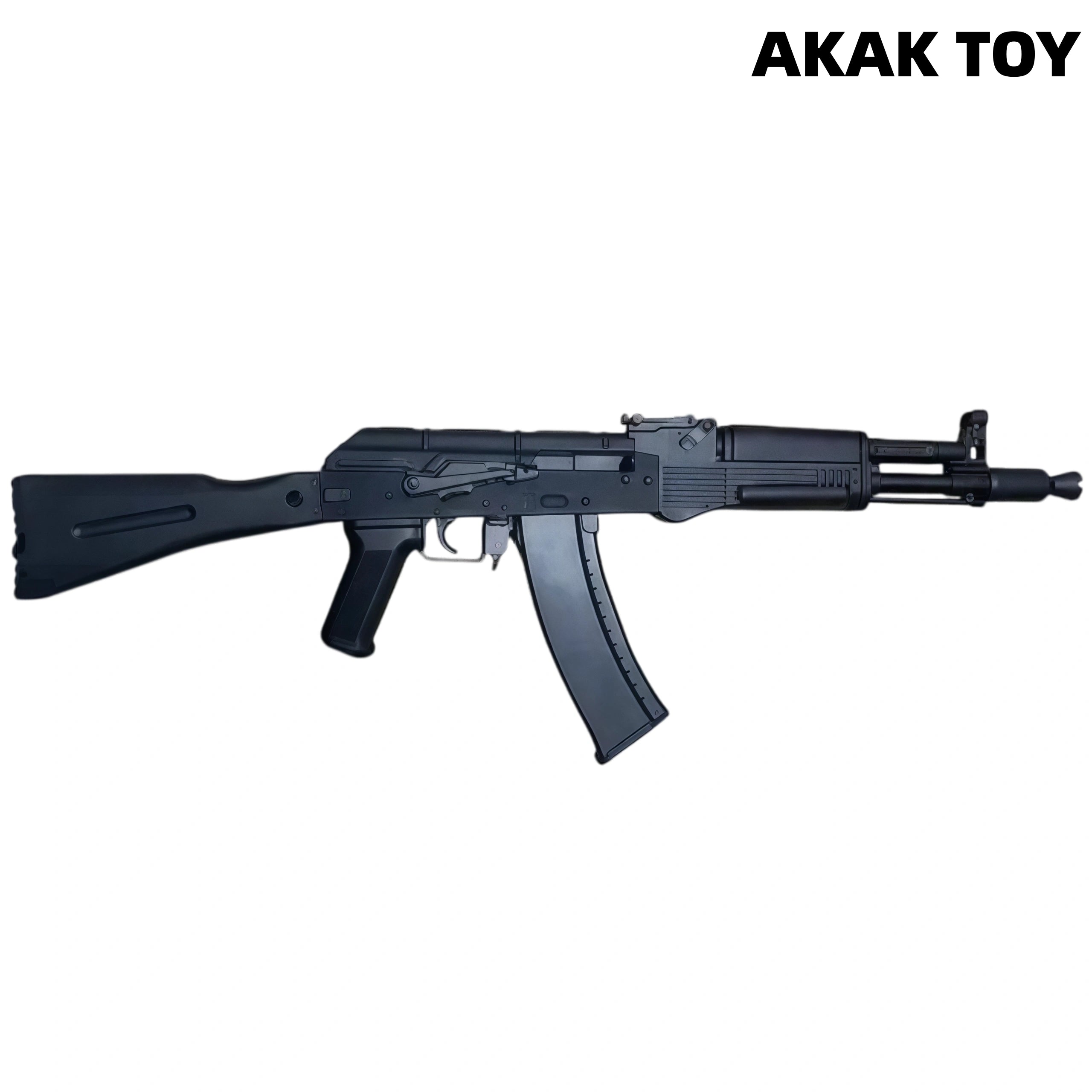This Rattlesnake AK-105 electric gel blaster is based on the classic AK105 design, featuring a realistic appearance, solid construction, and balanced feel. It supports semi-automatic and fully automatic firing modes, and the 7.4V lithium battery provides noticeable electric recoil feedback for a more immersive operating experience. The magnetic trigger and electric feeding magazine ensure stable and durable performance. The foldable stock design caters to both practical use and storage needs, making it an electric gel blaster that combines realistic appearance, powerful performance, and high cost-effectiveness. Metal parts: Metal gears, metal inner barrel, metal trigger, metal fire selector. Features:1. Bottom-fed magazine, full travel, pre-feeding, linked bolt return2. Shooting modes: Semi-automatic/Full-automatic3. Range: 25-30 meters4. Material: Nylon + Metal5. Battery type: Tamiya connector6. Muzzle velocity: 250-260 FPS7. Ammunition type: 7-8mm gel balls8. Size: 85 cm Packing List:1* Sidewinder AK-105 Toy Gun1* Muzzle1* Magazine1* Buttstock1* 7.4V Rechargeable Battery1* USB Charging Cable1* Gel Balls (10000 pieces)