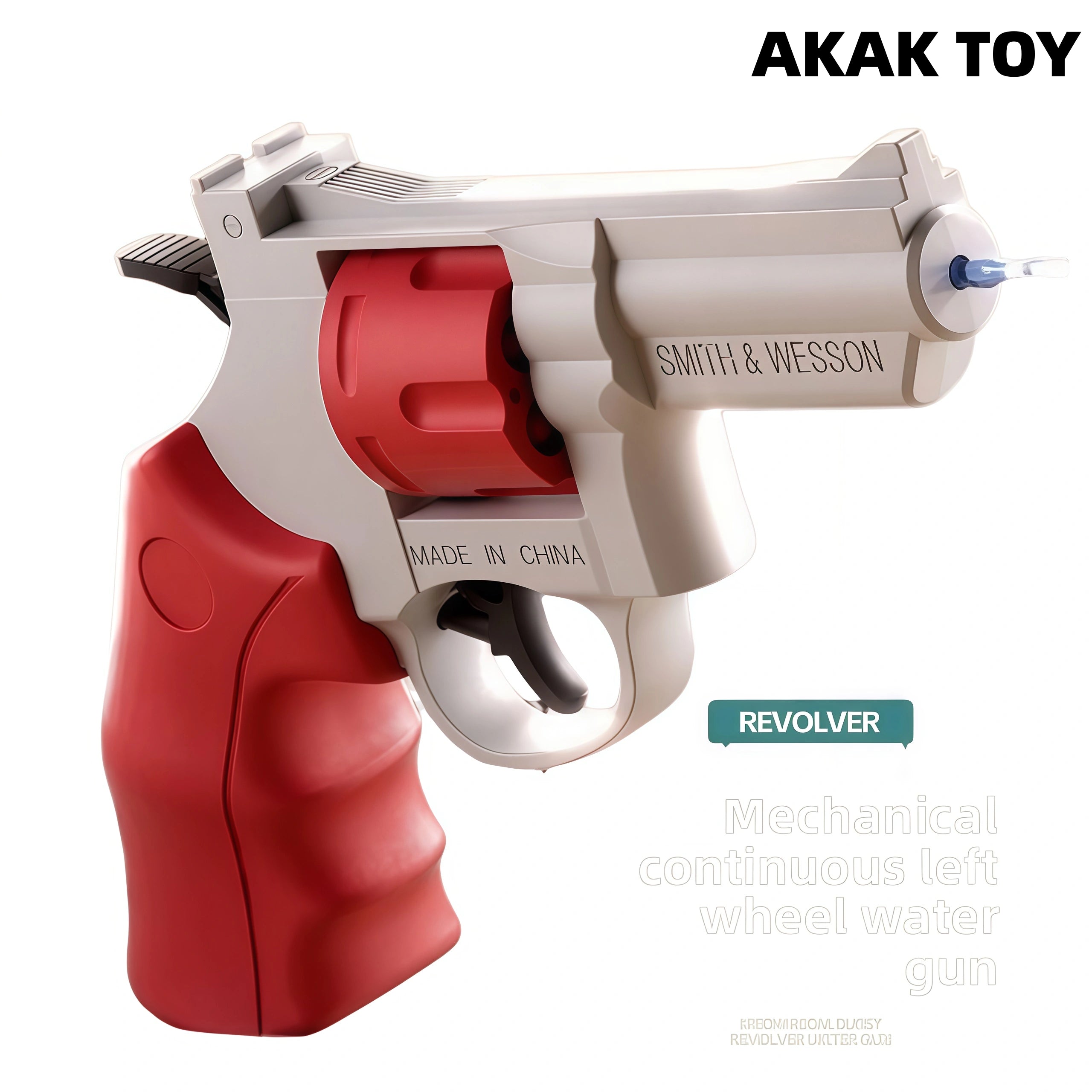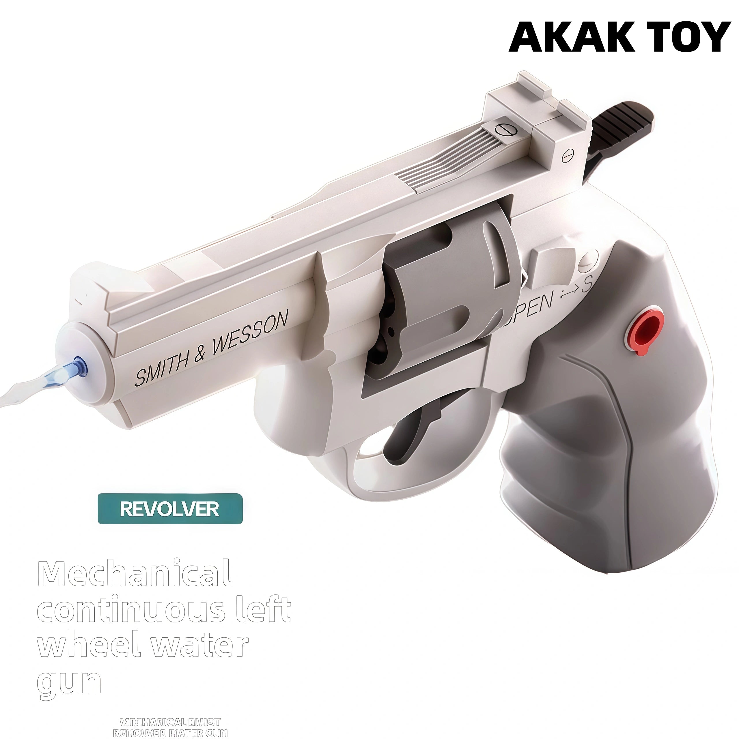 This water gun is easy to operate and does not require batteries. Pull open to add water and lightly pull the trigger to start summer fun! Made of high-quality ABS material, it is safe and durable, suitable for children and pets to interact with. Shoot 100+ times, and small hands can hold it easily without effort. Features:Mechanical burst, no need to load1. Material: ABS plastic2. Shooting mode: manual3. Range: 10-15 meters4. Size: 17CM Packing list:1*Revolver water gun