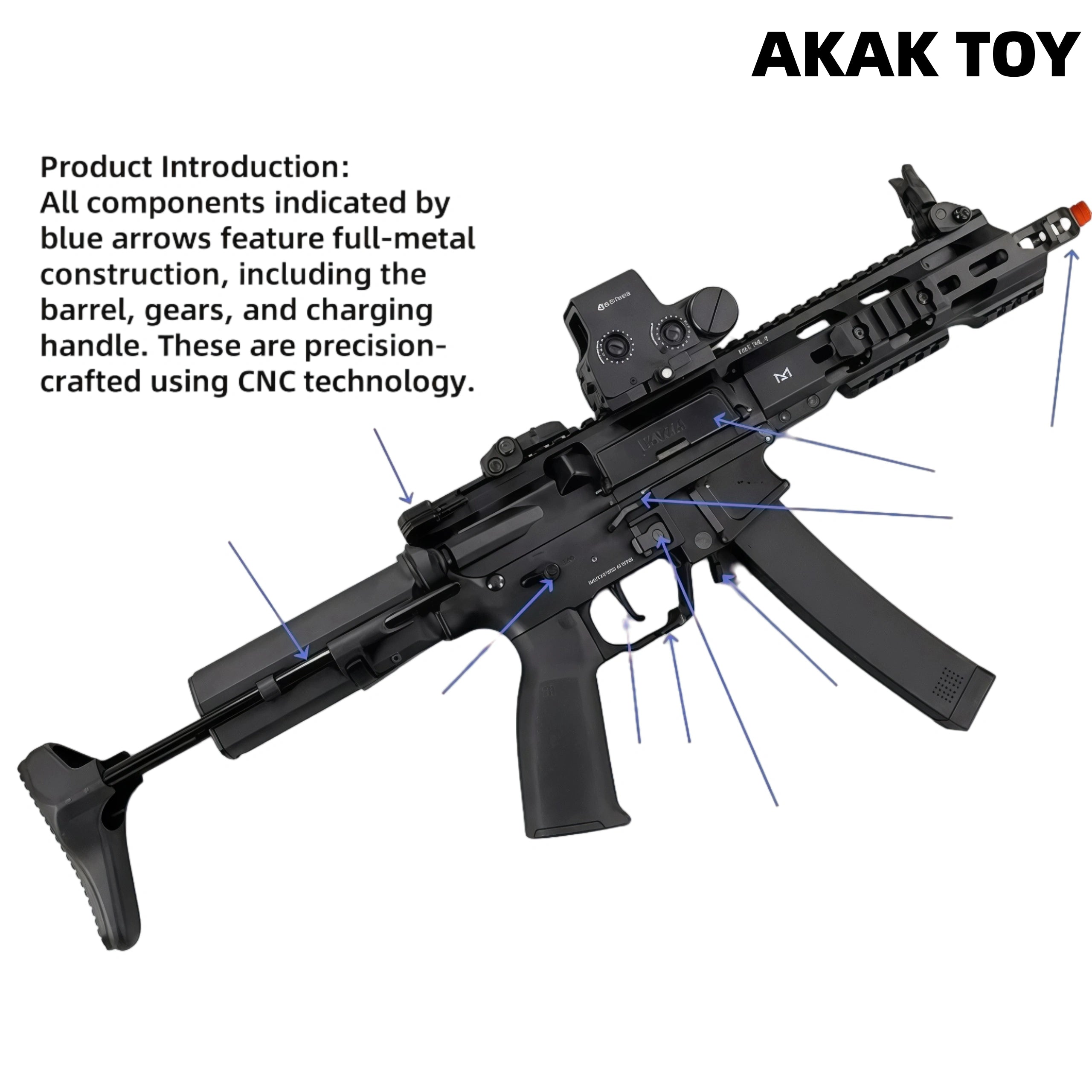 1. This Gel Blaster combines durability and customizability, automatically loading a magazine and delivering an immersive shooting experience with its powerful recoil. 2. Constructed from durable metal components, it supports semi-automatic and fully automatic firing modes and can be programmed via MOSFETs. 3. Composed of numerous metal parts: gears, inner and outer barrels, muzzle, charging handle, dust cover, safety switch, magazine release button, trigger, and bolt release button. Programming Guide:1. In safe mode, press and hold the trigger for 3 seconds, then press it three times short after hearing the beep. This switches to semi-automatic mode; pulling or releasing the trigger will now fire. 2. In safe mode, press and hold the trigger for 3 seconds, then press it four times short after hearing the beep. This switches to fully automatic mode, which fires in three-round burst mode. 3. In safe mode, press and hold the trigger for 8 seconds to set the MOSFETs to their default values. Features:1. Automatic pre-feed, four-mode fire control programming2. Extra-long travel metal mechanism, detachable accessories3. Firing modes: Semi-automatic/Full-automatic4. Range: 30-35 meters5. Material: Nylon6. Firepower: 230 FPS7. Ammunition type: 7-8mm gel balls8. Dimensions: 68*32*8 cm Packing List:1* Subilon QRF Mod 1 Gel Blaster3* M-LOK side rails2* Iron sights1* Magazine1* Hop-up adjuster1* Muzzle1* 11.1V XT30 lithium battery1* USB charging cable1* Goggles1* Gel balls (10,000 piec...