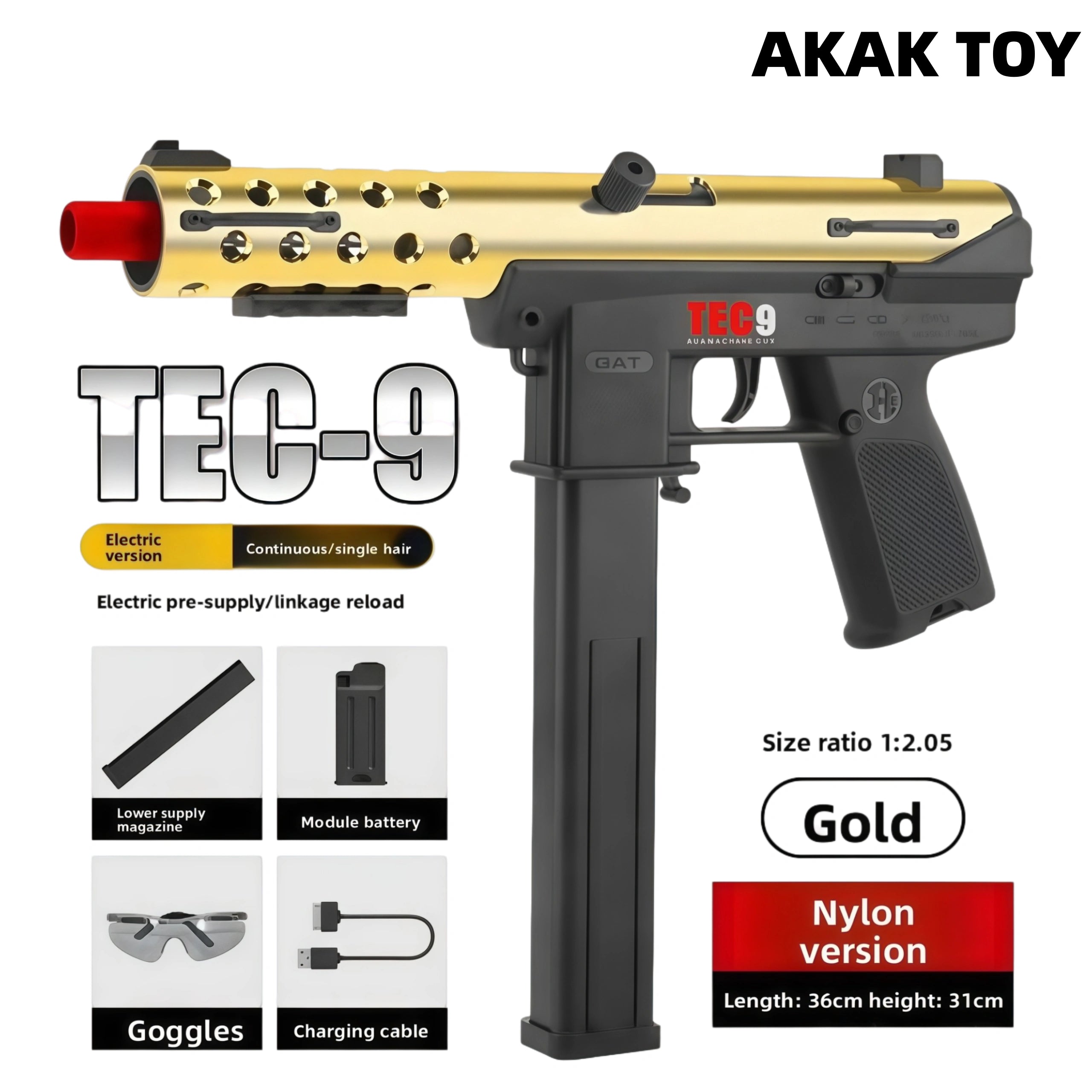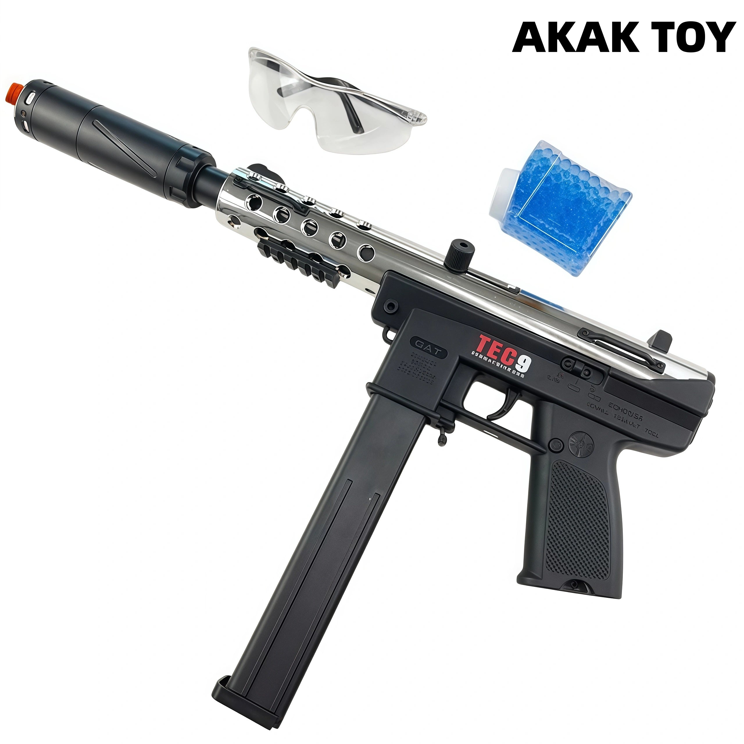 Our TEC-9 gel blaster adopts the classic pistol shape, which is suitable for quick response and one-handed operation. Equipped with an efficient electric drive system, it has a high rate of fire, strong accuracy, and a super cool combat experience! Whether you are a novice or a veteran player, TEC-9 can bring the ultimate shooting pleasure! Features:1. SIME/Fully Automatic2. Fast firing rate, high accuracy, large capacity magazine3. Removable accessories4. Material: Nylon + Metal5. Shooting range: 20-30 meters6. FPS: 200+7. Ammunition type: Gel bullet9. Size: 48 cm Package Contents:1* TEC-9 Gel Launcher1* Goggles1* Magazine1* Luminous Silencer in Seven Colors1* Gel Ball (10000pcs)1* USB Charging Cable1* Rechargeable Battery
