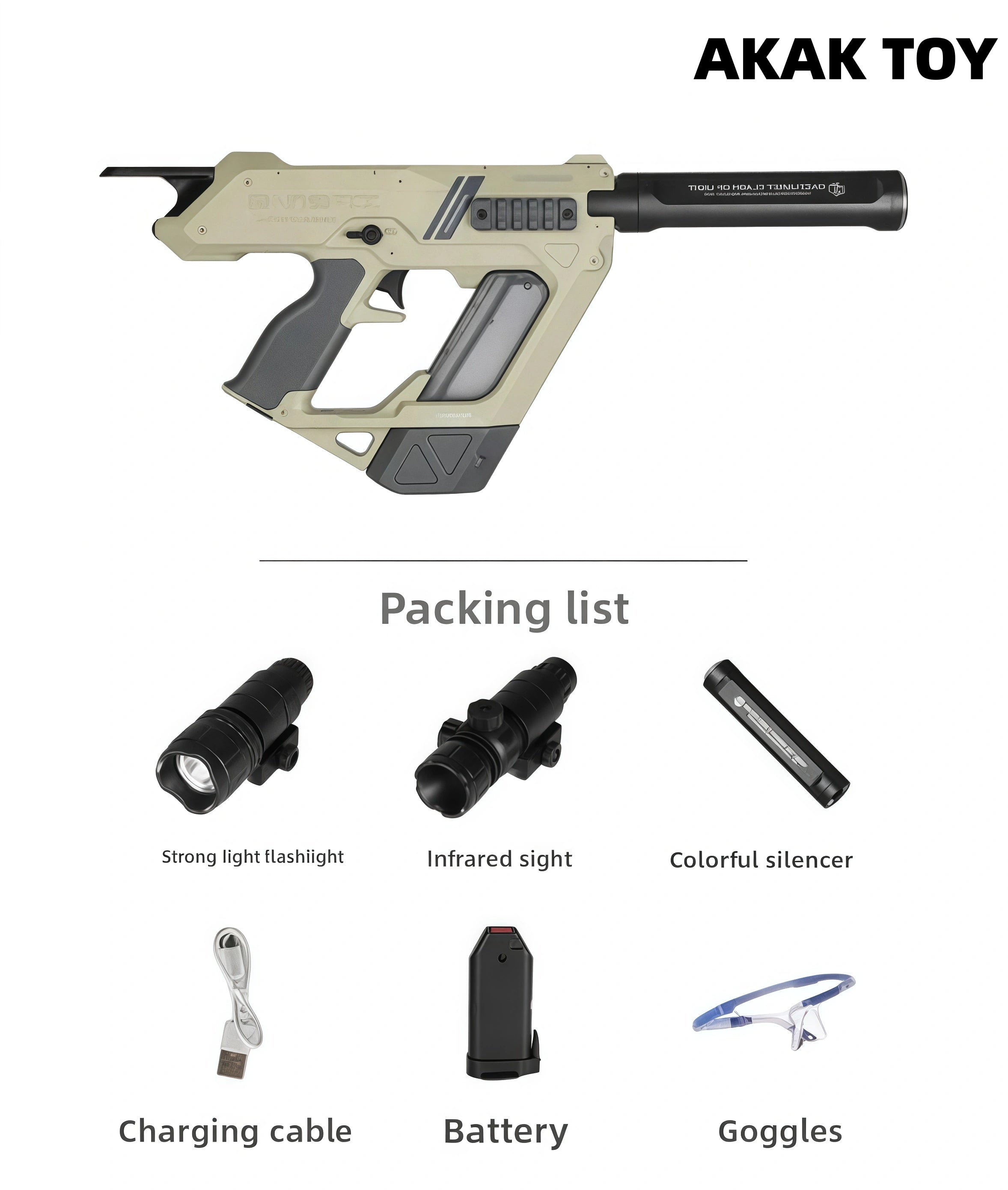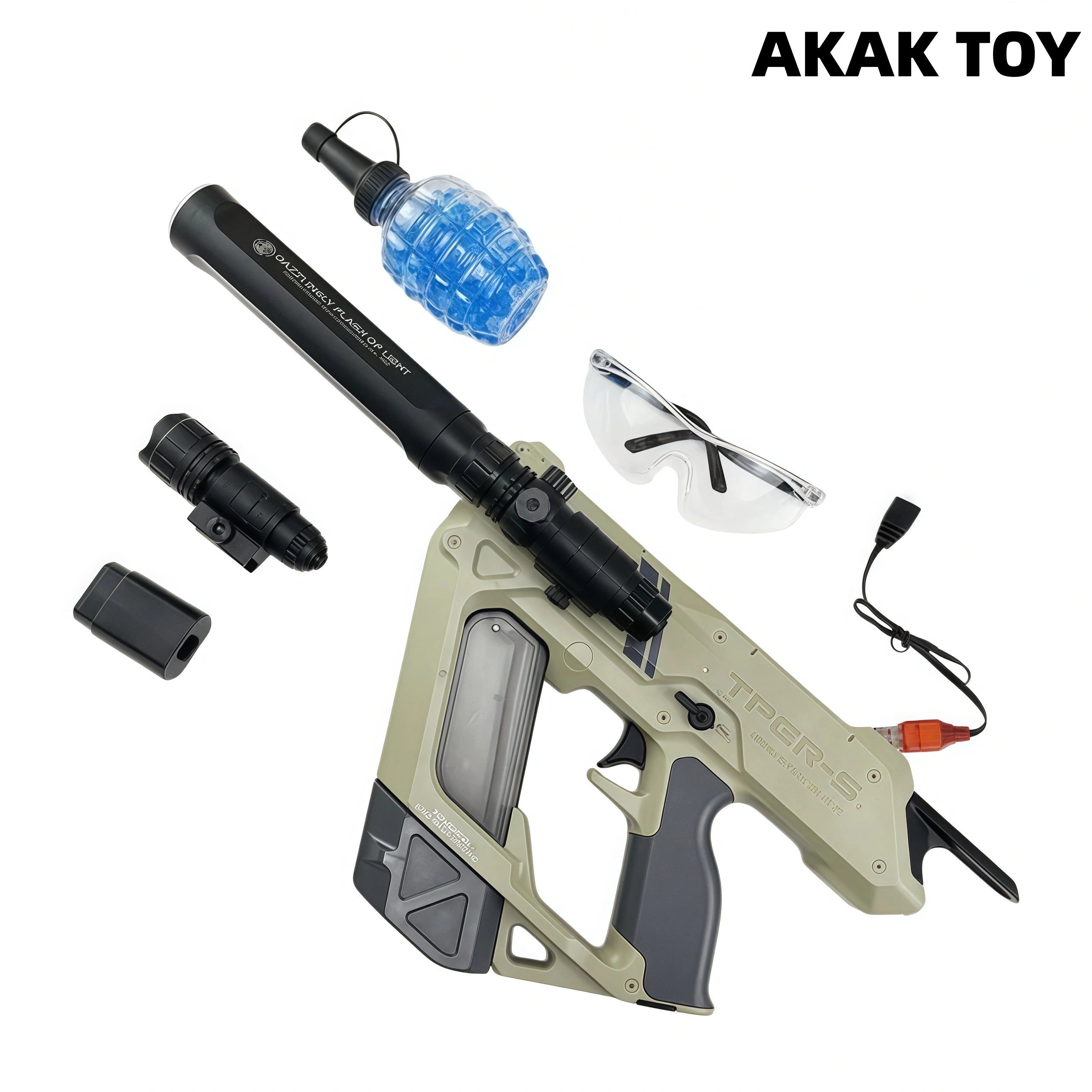 Get ready to conquer your opponents with the all-new TPERS PUNISH Gel Blaster! This game-changing blaster is the ultimate weapon for Gel Blaster Warriors, with its cutting-edge features and user-friendly design. Feature¡êo1. Shooting mode:Manual/Fully Automatic 2. Battery: 7.4v3. Material: nylon + metal4. Range: 20-25 meters5. Ammunition type: gel ball6. Size: 53*22*6 cm7. Magazine feeding Packing list:1*High light flashlight1*Magazine1*Infrared sight1*Silencer1*Gel ball (10000pcs)1*Rechargeable battery1*USB charging cable1*Goggles