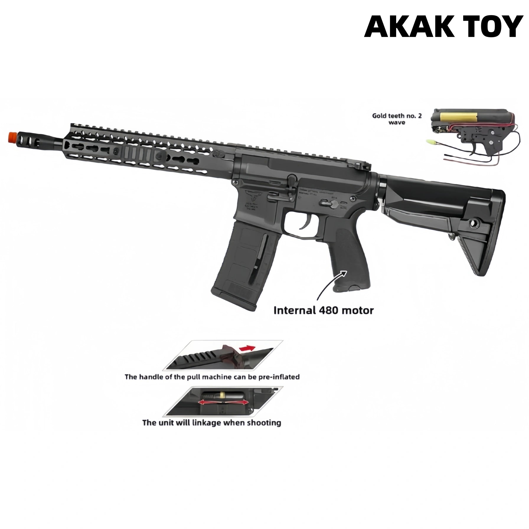 This TR1 gel blaster features an electric continuous-fire system, delivering powerful firepower and a smooth combat experience. Equipped with a linked recoil design, the triggers synchronize with each other during firing, enhancing the sense of realism. Upgraded core structure: Equipped with metal gears, a nylon gearbox, and a Gold Tooth II gearbox, durability and stability are significantly improved. A built-in 480 high-speed motor ensures efficient and smooth feeding and firing. As for the operational experience, pulling the bolt handle allows for pre-feeding, effectively reducing dry fire. The specially designed visible magazine window allows players to visually observe the ammunition level, adding to the fun of actual combat. Features:1. Visible magazine window, pre-loaded2. Metal gears, nylon gearbox3. Material: Nylon4. Shooting mode: Electric5. Range: 20-25 meters FPS:250+6. Ammunition type: 7-8mm gel balls7. Dimensions: 71 * 25 cm Packing List:1 * TTI TR1 gel ball gun1 * flash hider1 * magazine1 * eye protection1 * stock2 * rails1 * USB charging cable1 * 11.1V rechargeable battery1* gel balls (10,000 pieces)