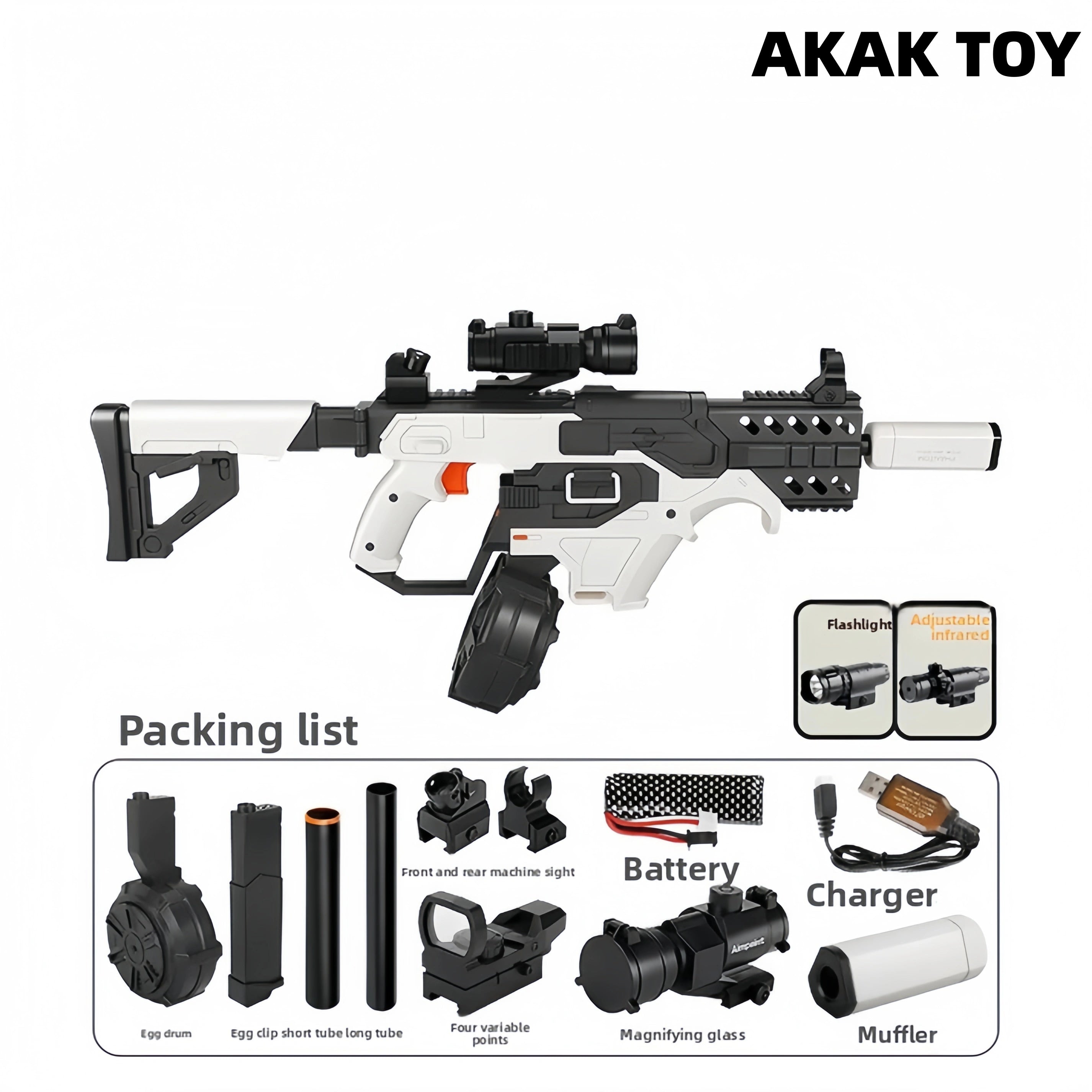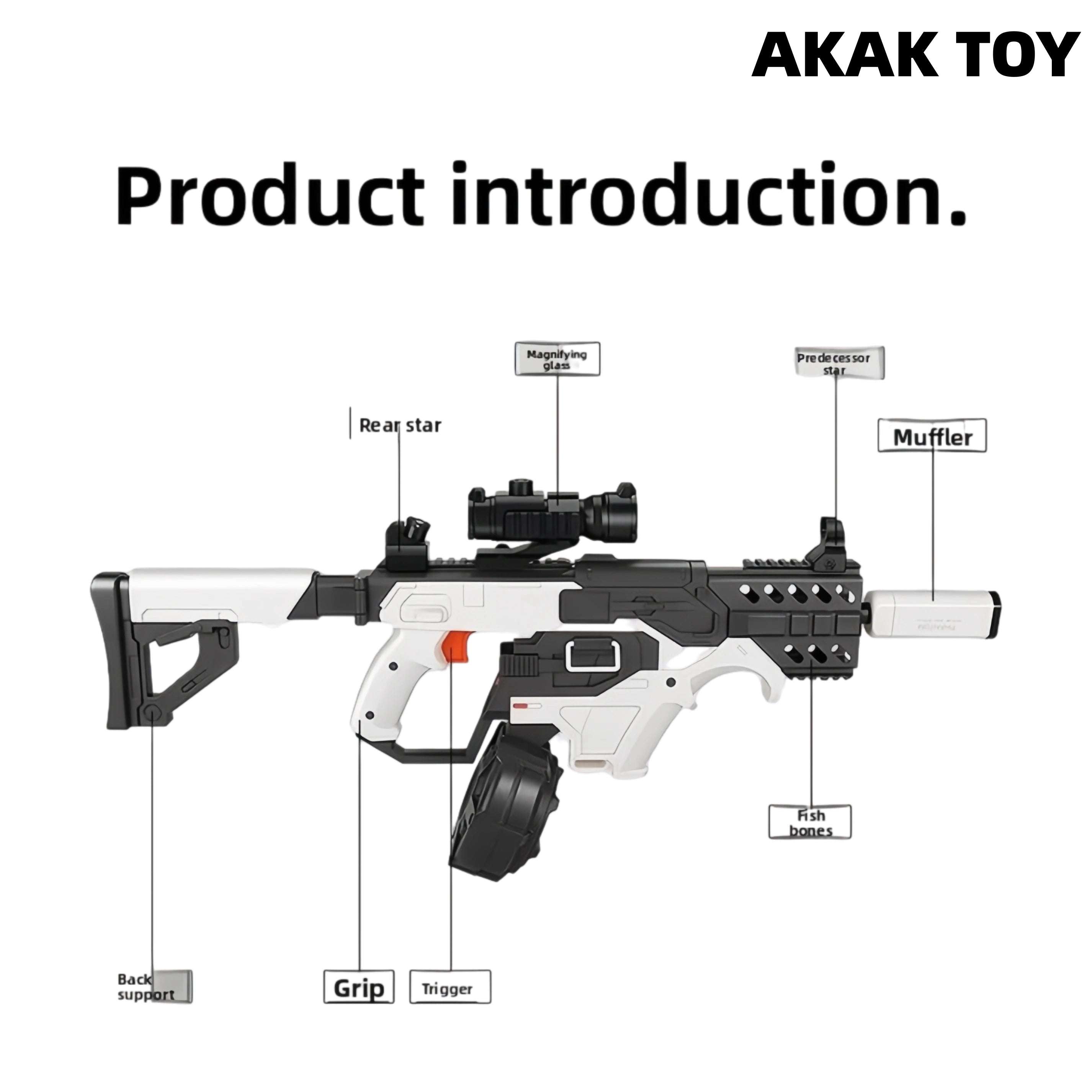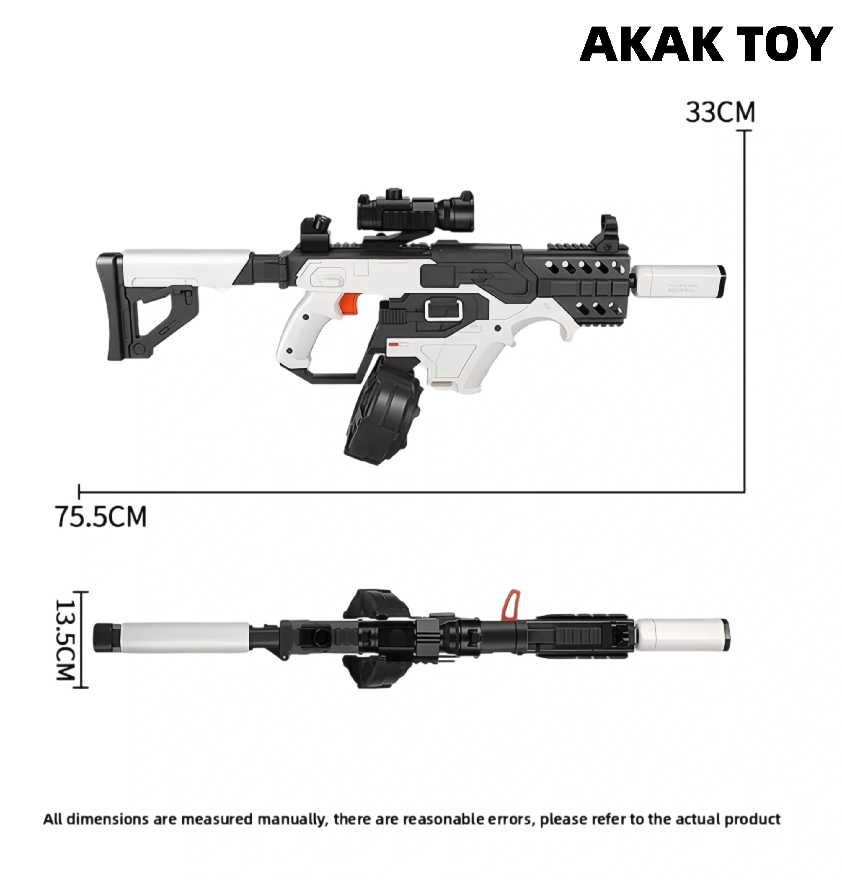 This Vector gel gun supports both electric burst and manual single-shot modes, allowing players to choose between different shooting styles. The pre-loaded magazine and foldable stock design increase flexibility and convenience. The nylon body ensures durability and lightweight. The bottom-feed magazine design allows for smooth reloading without jamming. Its powerful power enables long-range shooting up to 20 meters. A wide range of tactical accessories further enhances customization, making it suitable for a variety of tactical applications. Features:1. Removable accessories, lower feed clip2. Pre-loadable, foldable stock3. Material: Nylon4. Shooting Mode: Manual/Electric5. Range: 15-20 meters6. FPS:160+7. Ammunition Type: 7-8mm gel pellets8. Dimensions: 76 x 33 x 14 cm Packing List:1 * Vector Gel Gun1 * Flashlight1 * Adjustable Infrared1 * Drum Magazine1 * Magazine1 * Short Barrel1 * Long Barrel1 * Four-Dot Target2 * Iron Sights1 * Magnification Scope1 * Silencer1 * Goggles1 * Rechargeable Battery1 * USB Charging Cable1 * Gel Pellets (10,000 pieces)