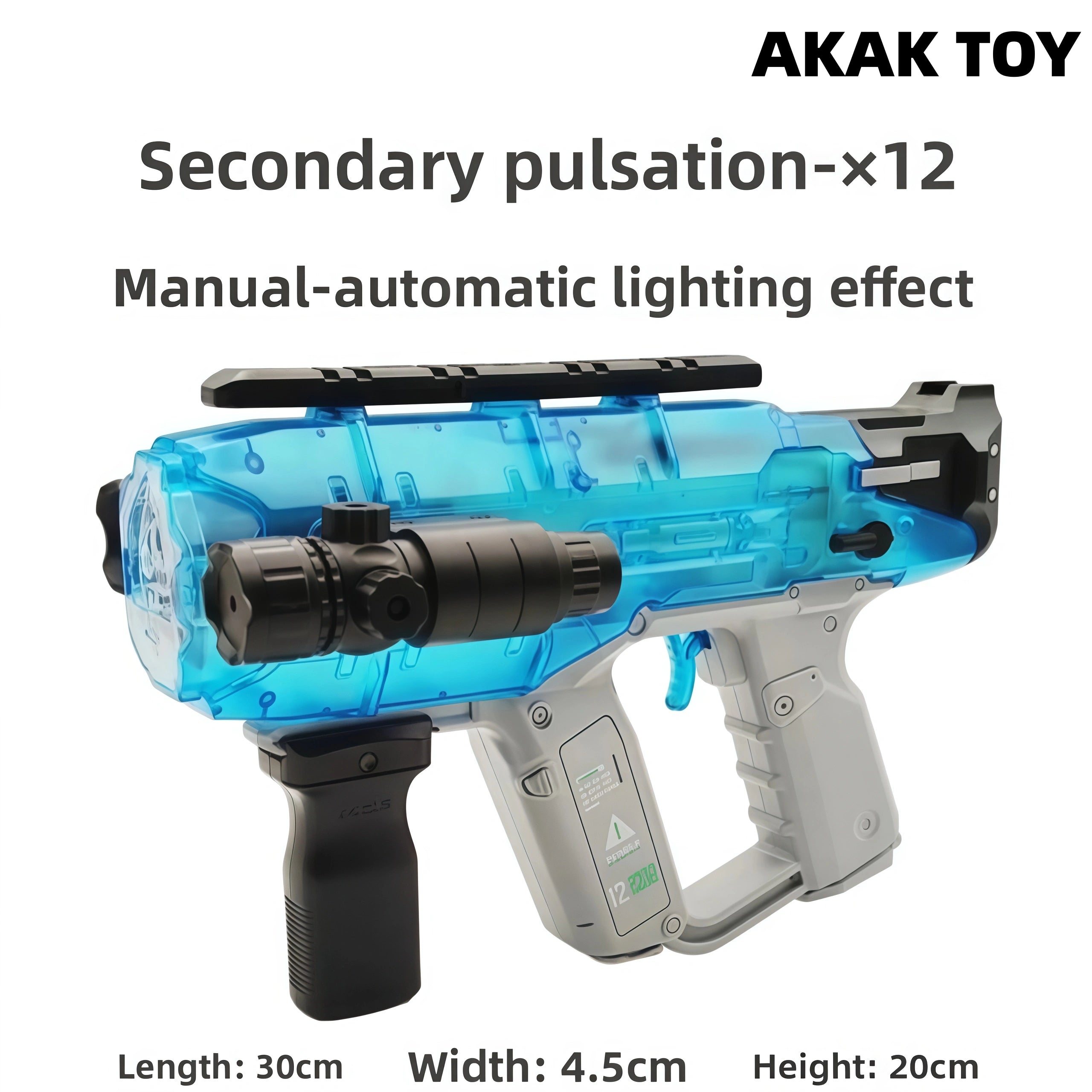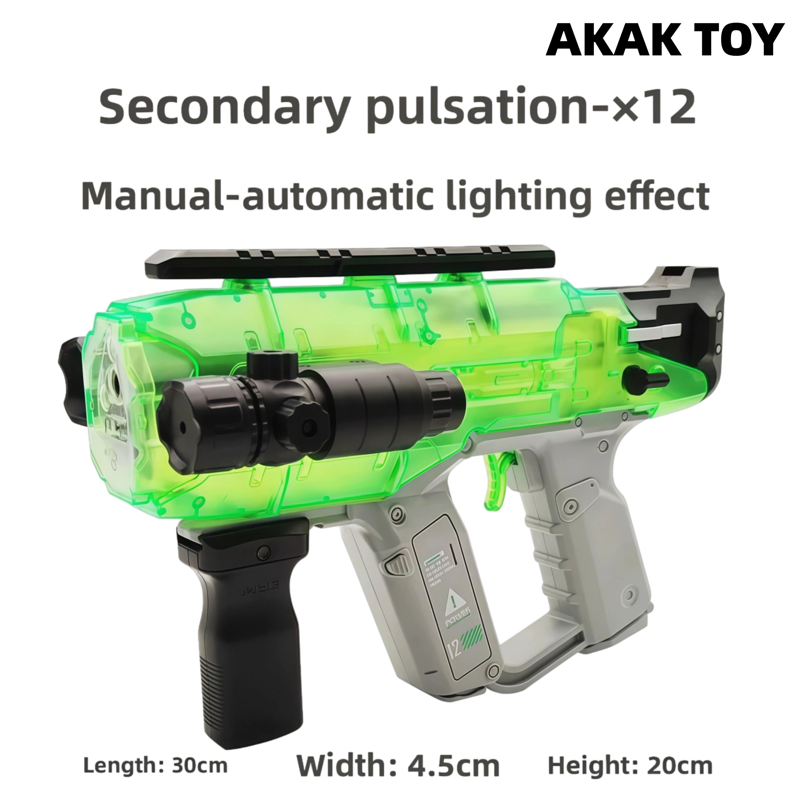 -Creative vibration recoil: the recoil will vibrate when the electric gear is fired continuously. -Manual and automatic, play without hindrance. When there is no power, it can be switched to manual bolt. -When firing, colorful lights will be driven. You can also freely match tactical accessories. -Use 7.4V lithium battery module. Features:1. With colorful lights when firing2. Material: ABS plastic3. Shooting mode: manual/electric4. Range: 15-20m5. Shooting power: 150 FPS6. Ammunition type: 7-8mm gel ball7. Size: 30*5*20cm Packing list:1*X12 gel gun1*front grip1*infrared1*goggles1*gel ball bottle1*conversion port1*7.4v lithium battery1*USB charging cable1*gel ball (10000 pcs)