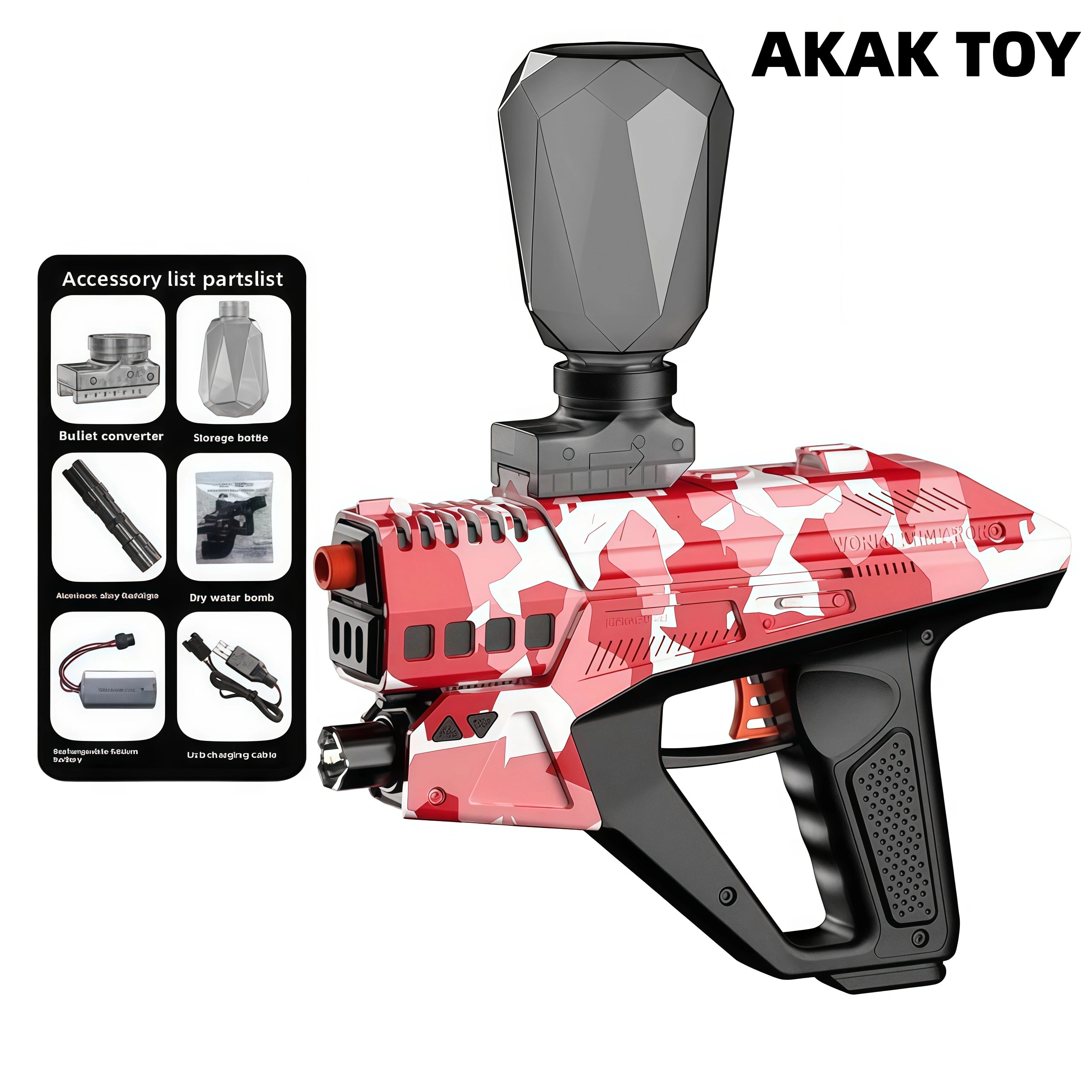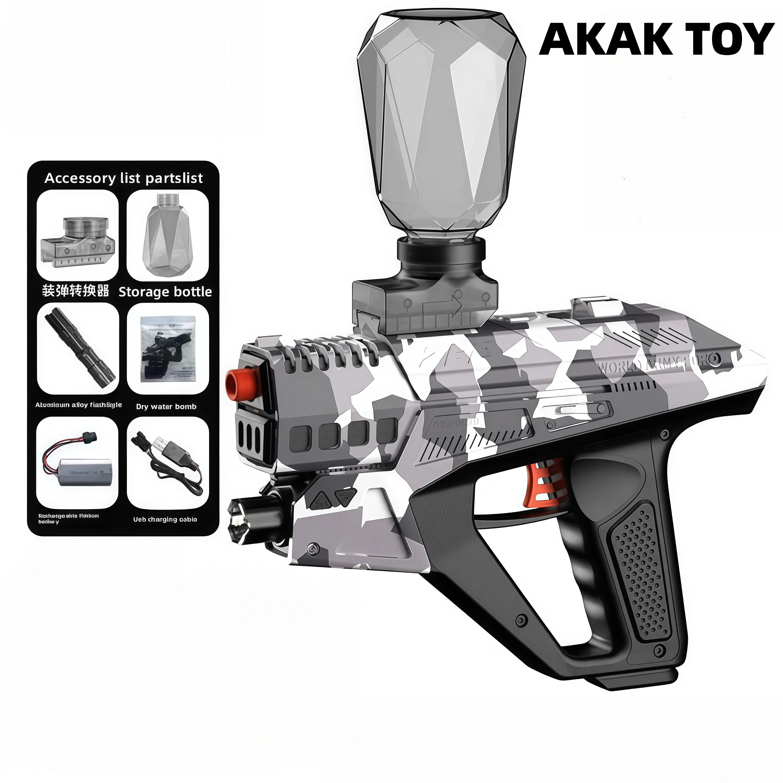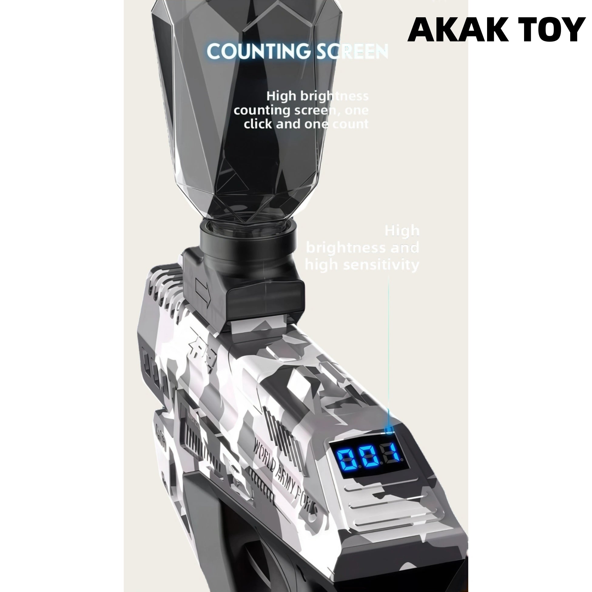 -It is equipped with a LED digital screen with high brightness and high sensitivity, and it counts one shot at a time to track the number of shots. -Equipped with a large-capacity loader and a detachable flashlight, giving you an advantage in battle. -Newly designed large-capacity lithium battery compartment, allowing you to have fun. Features:1. Removable accessories2. With LED screen, high brightness, high sensitivity3. Shooting mode: semi-automatic/fully automatic4. Material: Nylon5. Firepower: 120-130 frames/second6. Shooting range: 20-25 meters7. Ammunition type: 7-8mm gel ball8. Size: 24*5*4 cm Packing list:1* XYL ZP2 gel gun1*converter1*magnet storage bottle1*aluminum alloy flashlight1*7.4v rechargeable lithium battery1*USB charging cable1*gel ball (10000 pcs)1*gift box